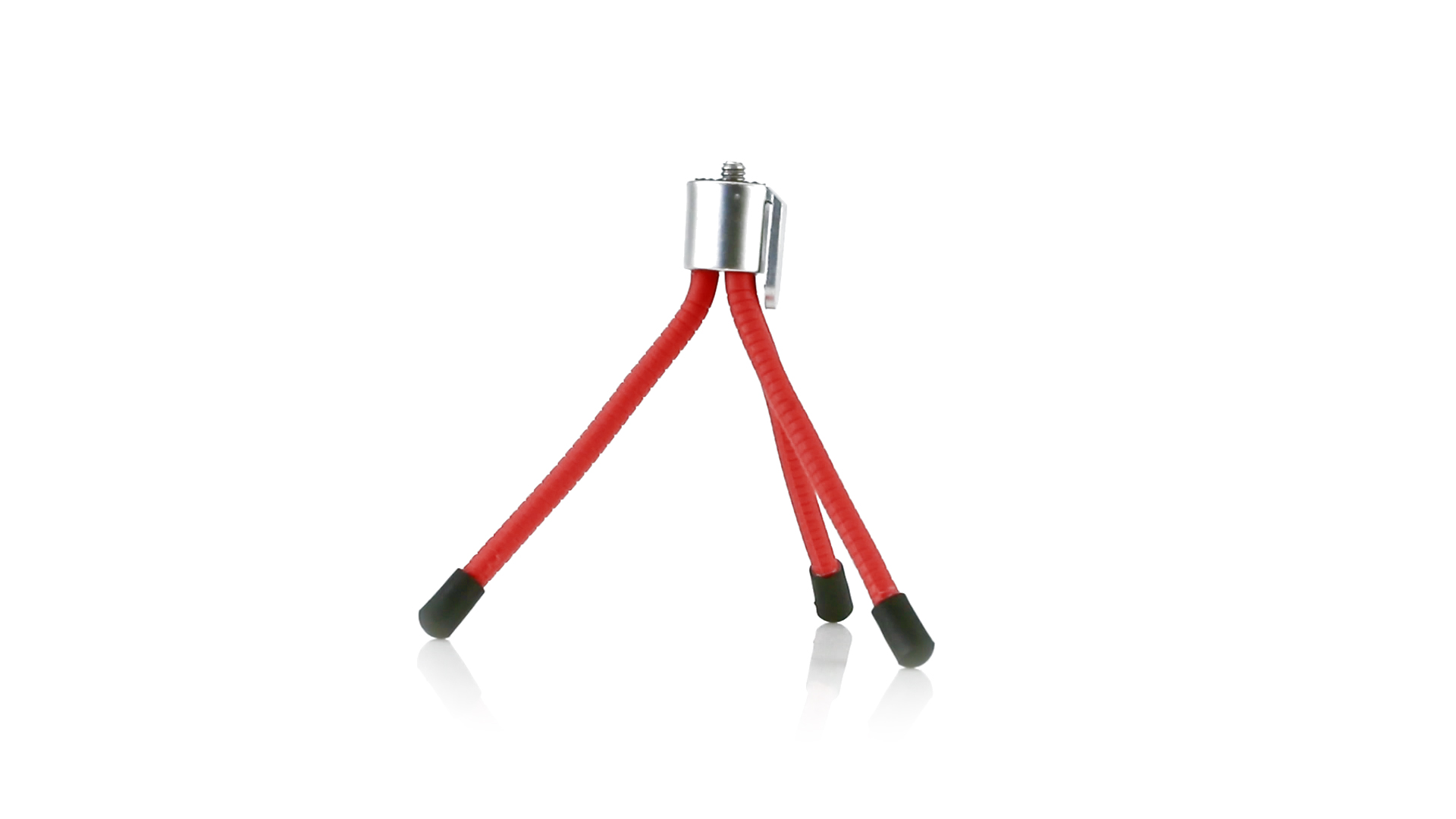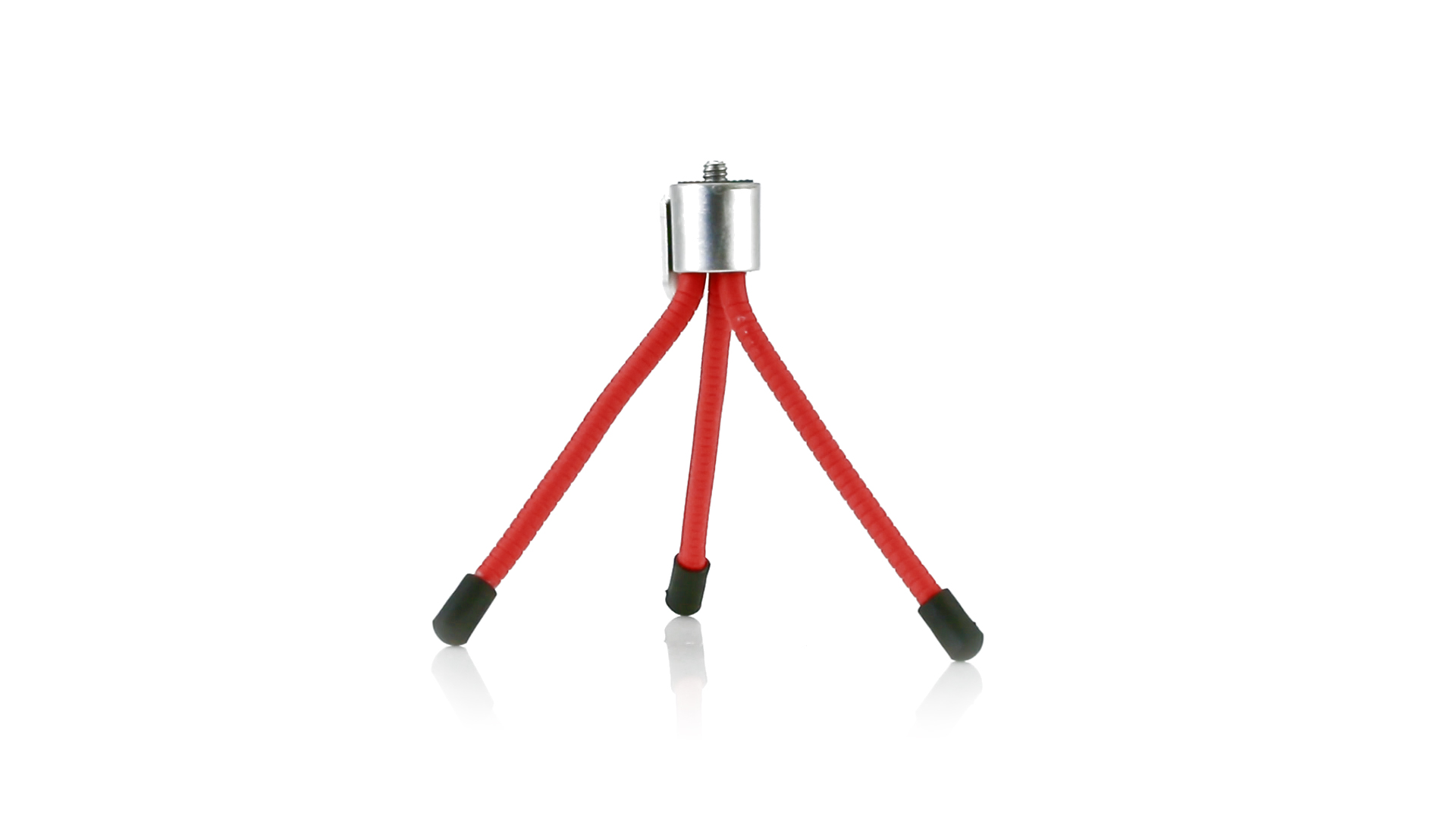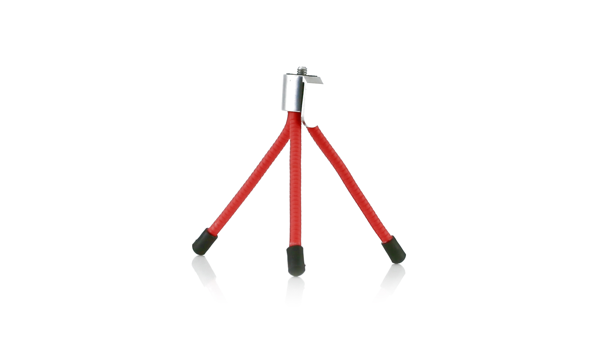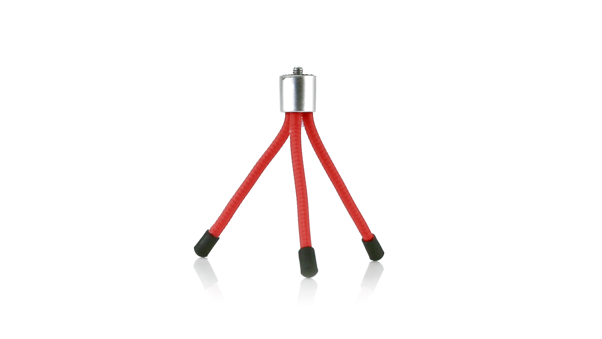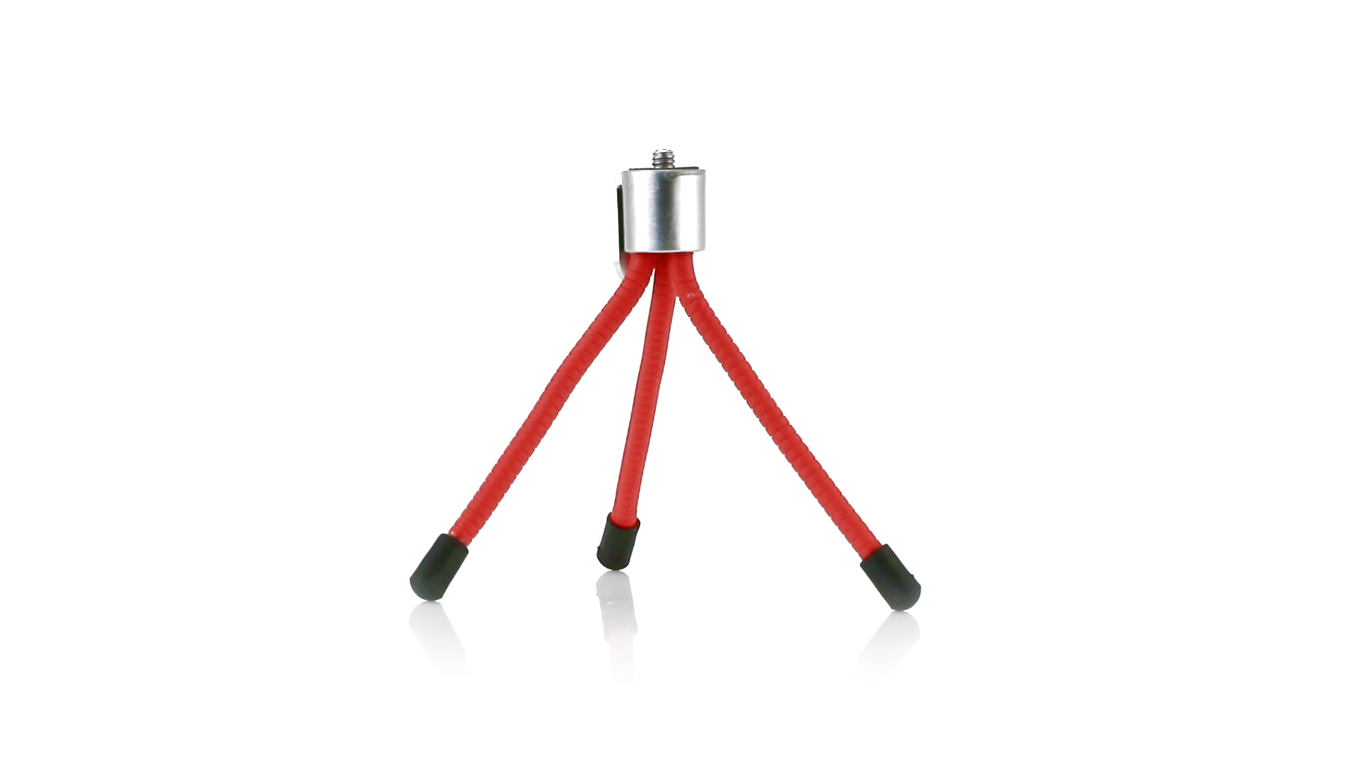 Stativ für Kameras mit universeller Einstellschraube und flexiblen Standfüssen mit rutschfester Gummierung für die Befestigung auf allen Arten von Oberflächen. Präsentiert in einer individuellen Box.