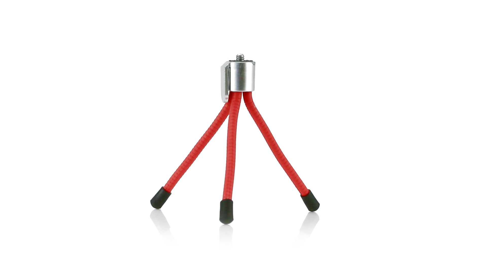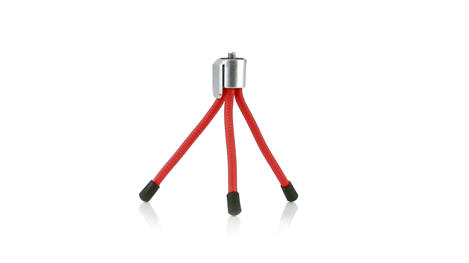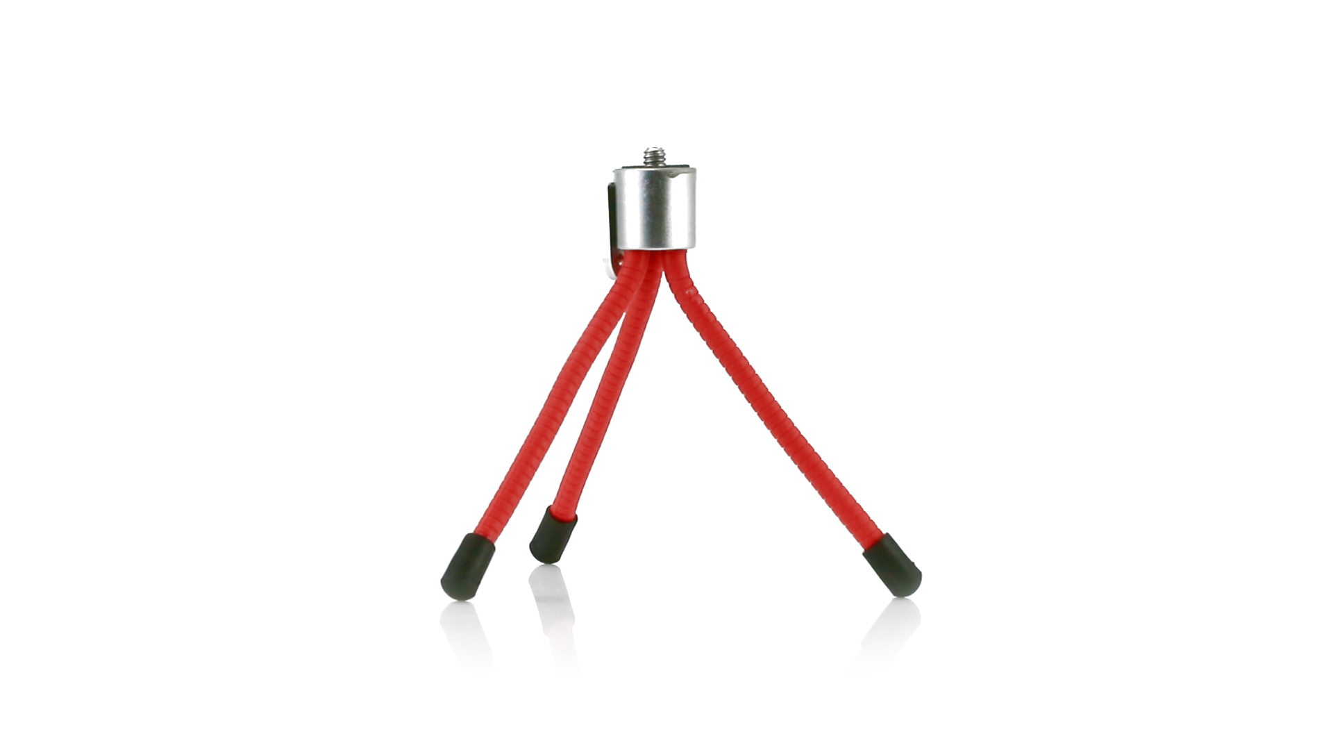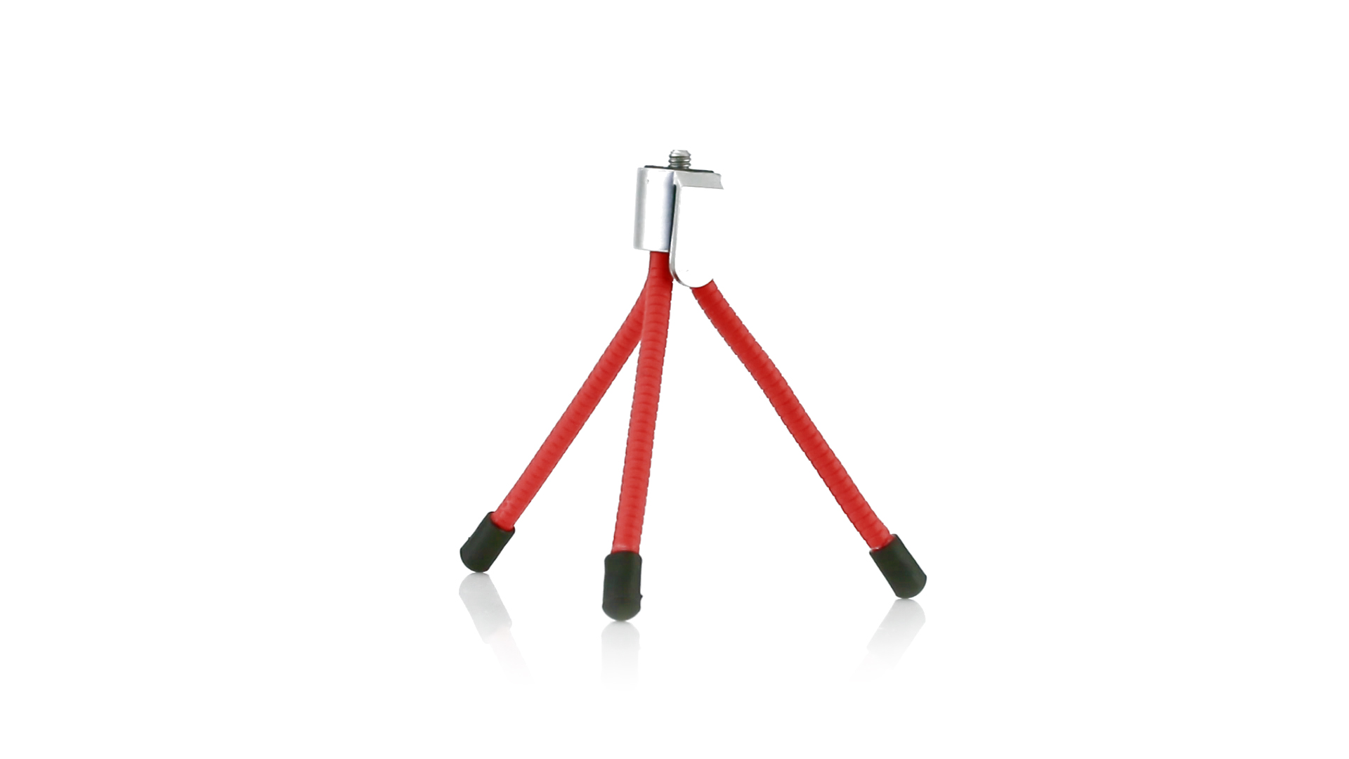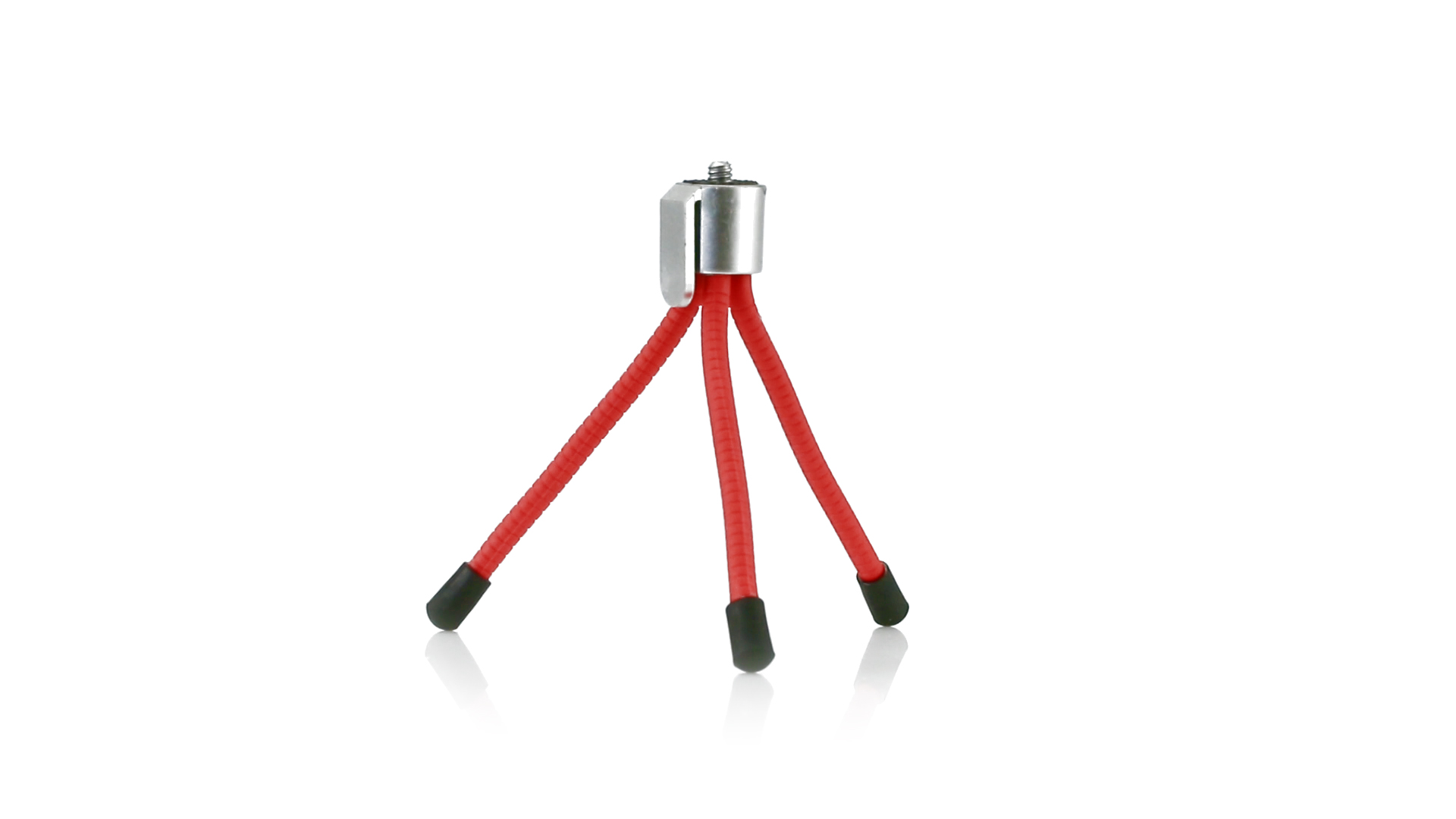 Stativ für Kameras mit universeller Einstellschraube und flexiblen Standfüssen mit rutschfester Gummierung für die Befestigung auf allen Arten von Oberflächen. Präsentiert in einer individuellen Box.