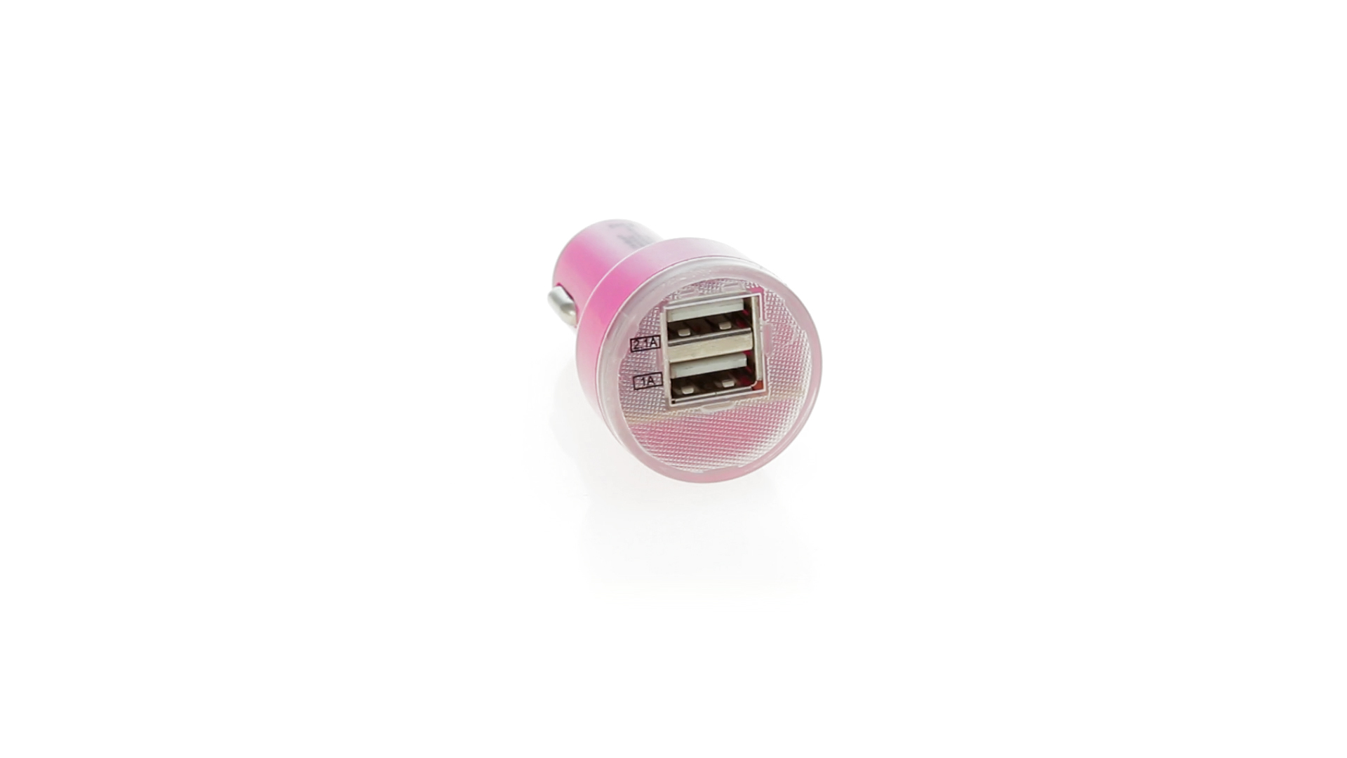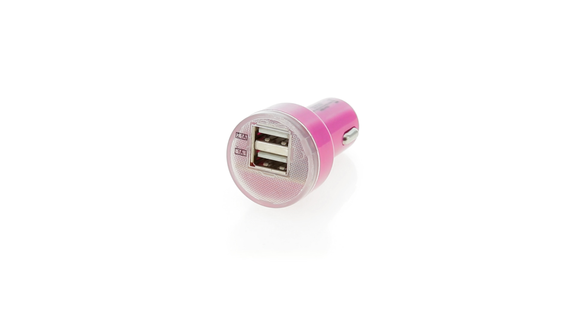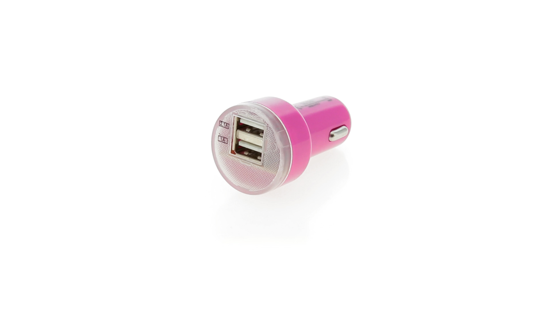 USB-Ladegerät für KFZ-Zigarettenanzünder mit Ladekapazität von 2.100 mAh in coolen Farben. Mit Dual-USB-Ausgang für das gleichzeitige Laden von zwei Mobilgeräten und LED-Ladeanzeige. Präsentiert in einer individuellen Box.