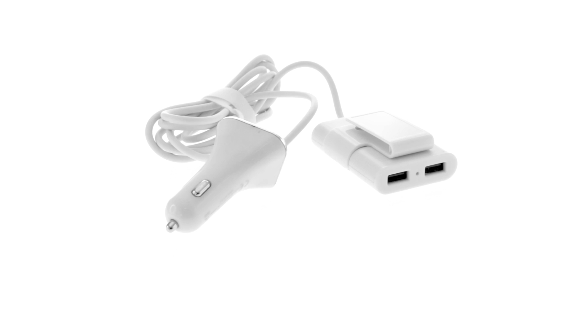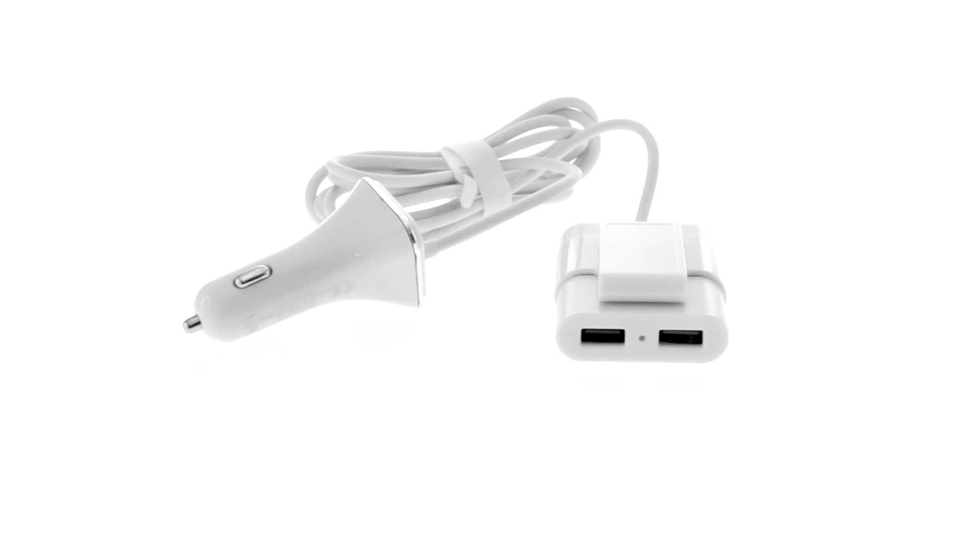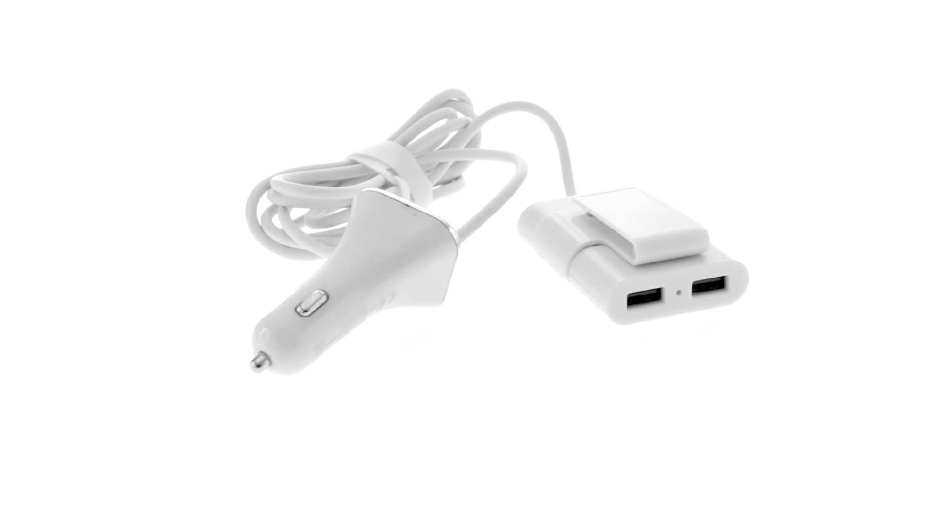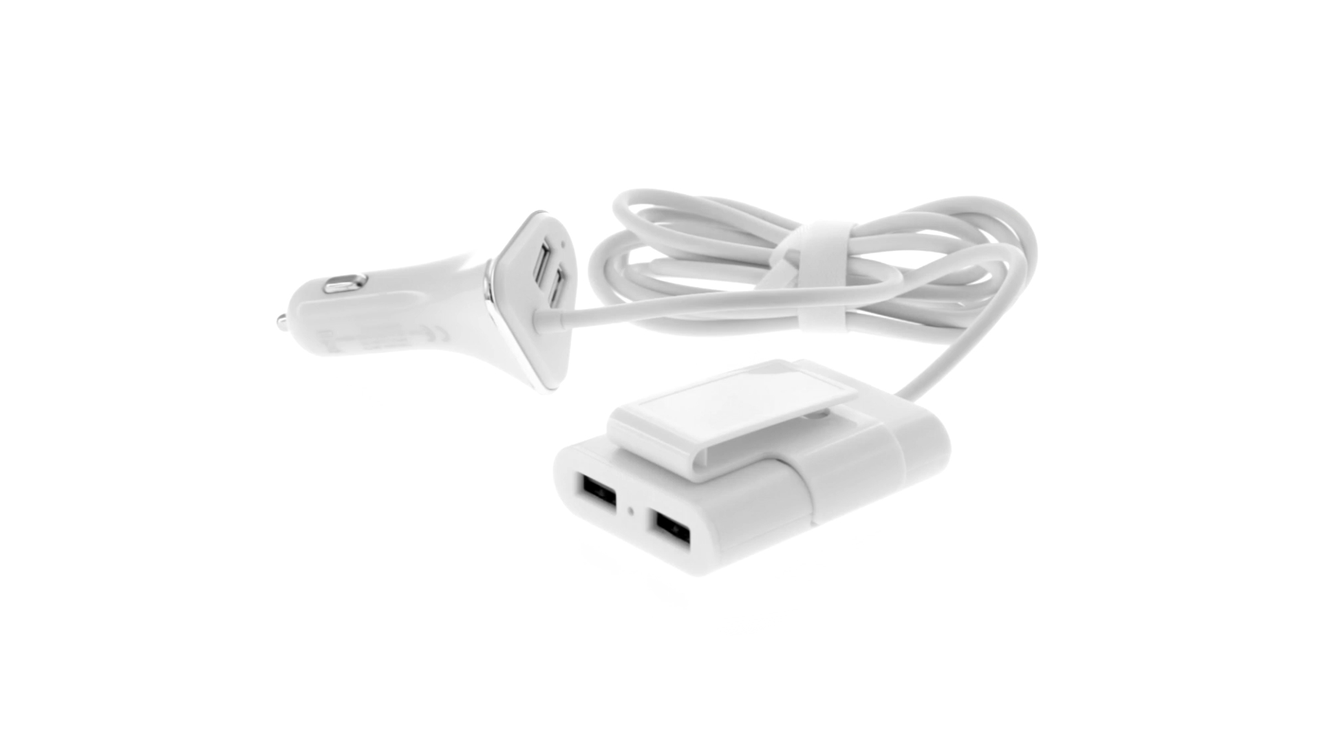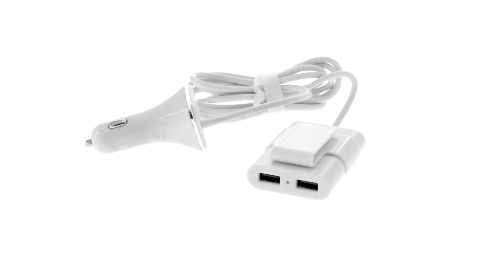 USB-Ladegerät für KFZ-Zigarettenanzünder mit Ladekapazität von 3.100 mAh. Mit Dual-USB-Ausgang für das gleichzeitige Laden von zwei Mobilgeräten, sowie einem Zusatzladeteil mit zwei weiteren USB-Anschlüssen für die Passagiere auf dem Rücksitz. Mit LED-Ladeanzeige. Präsentiert in einer individuellen Box.