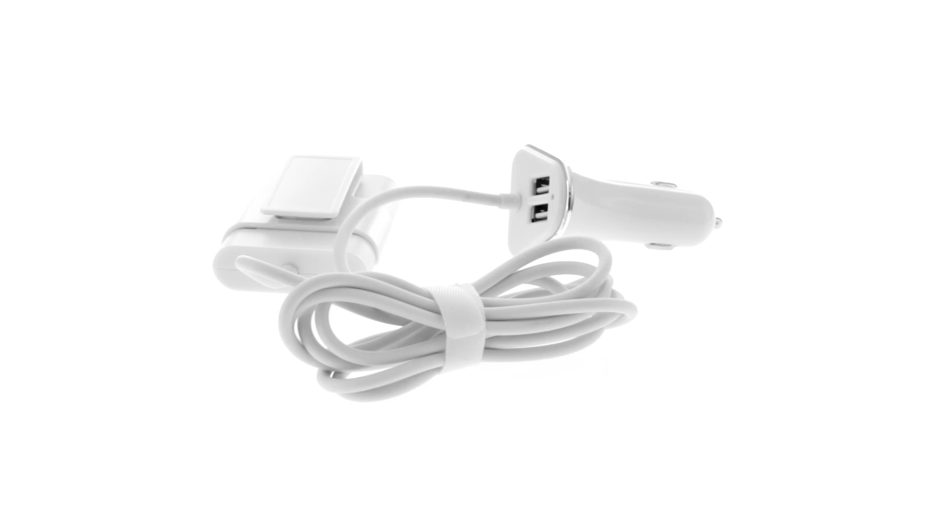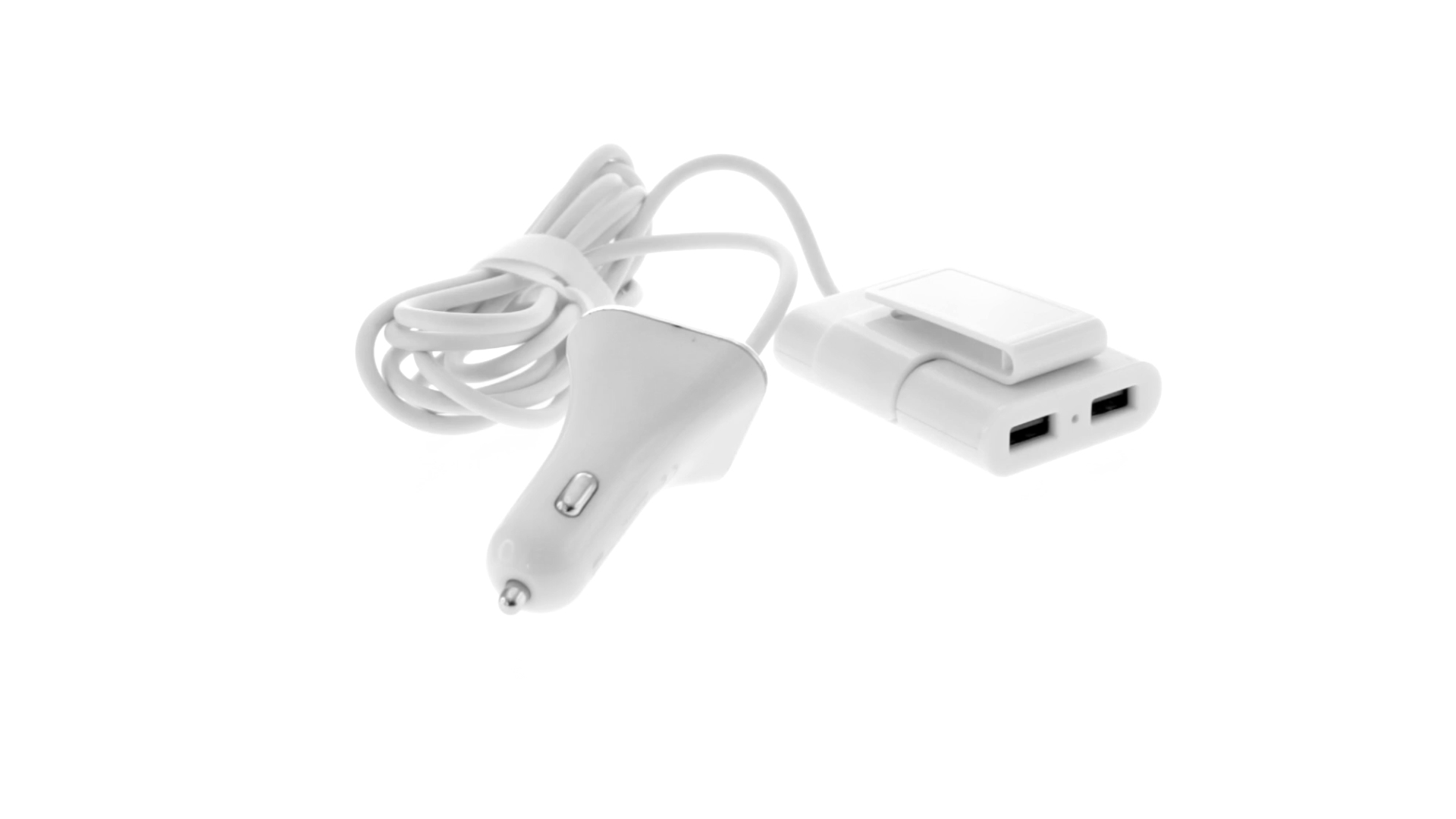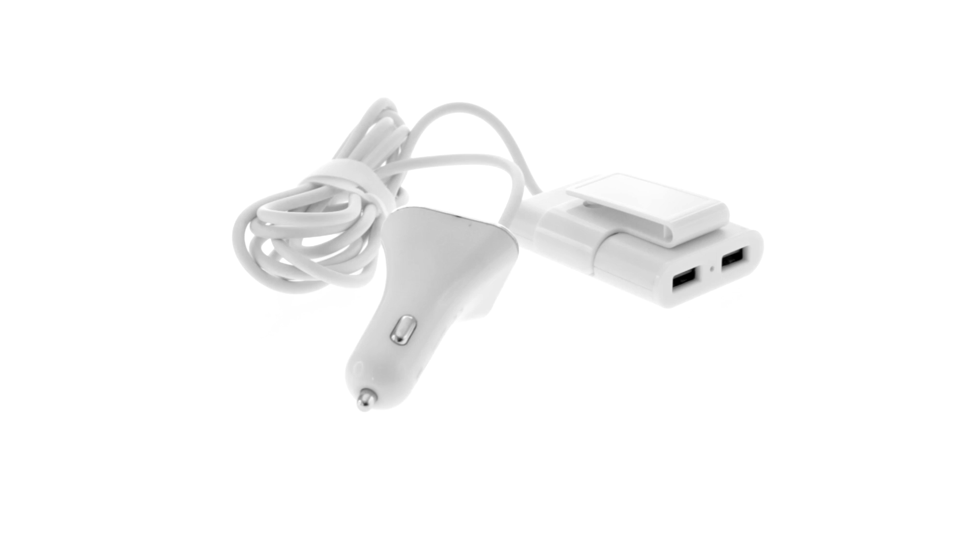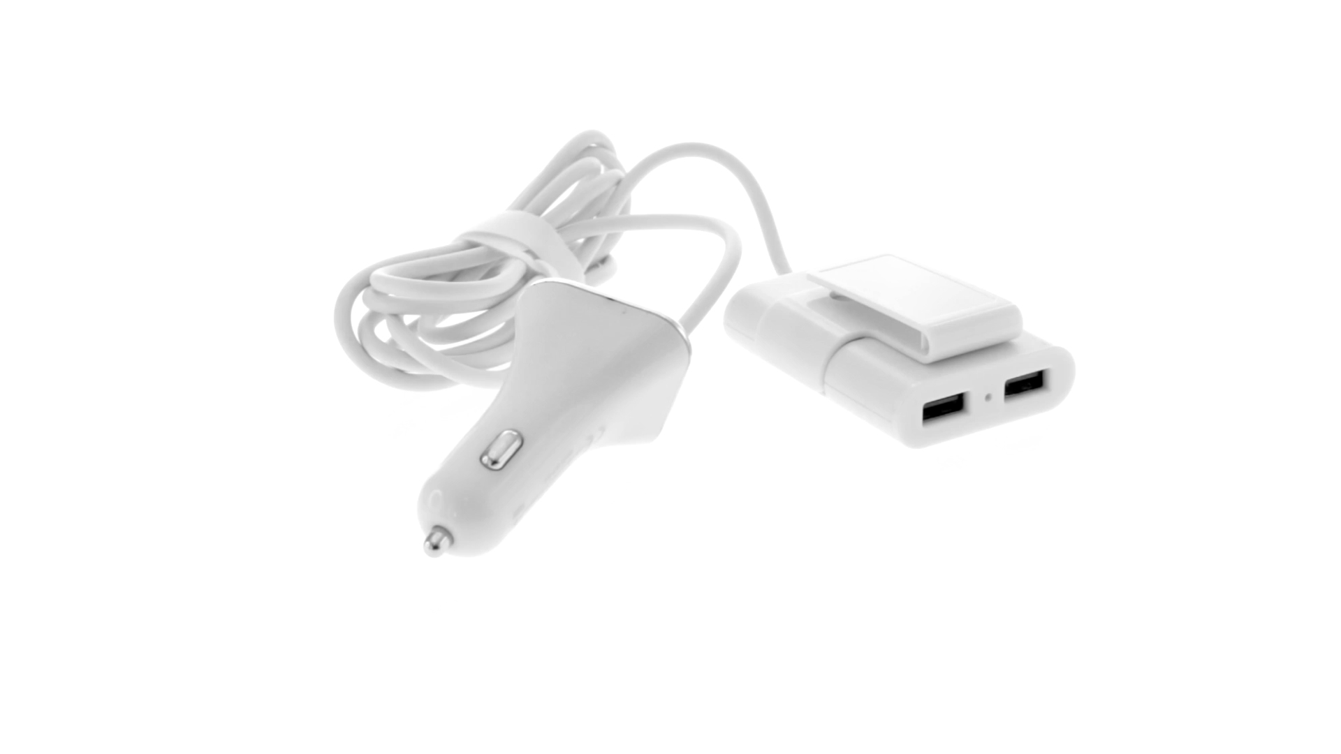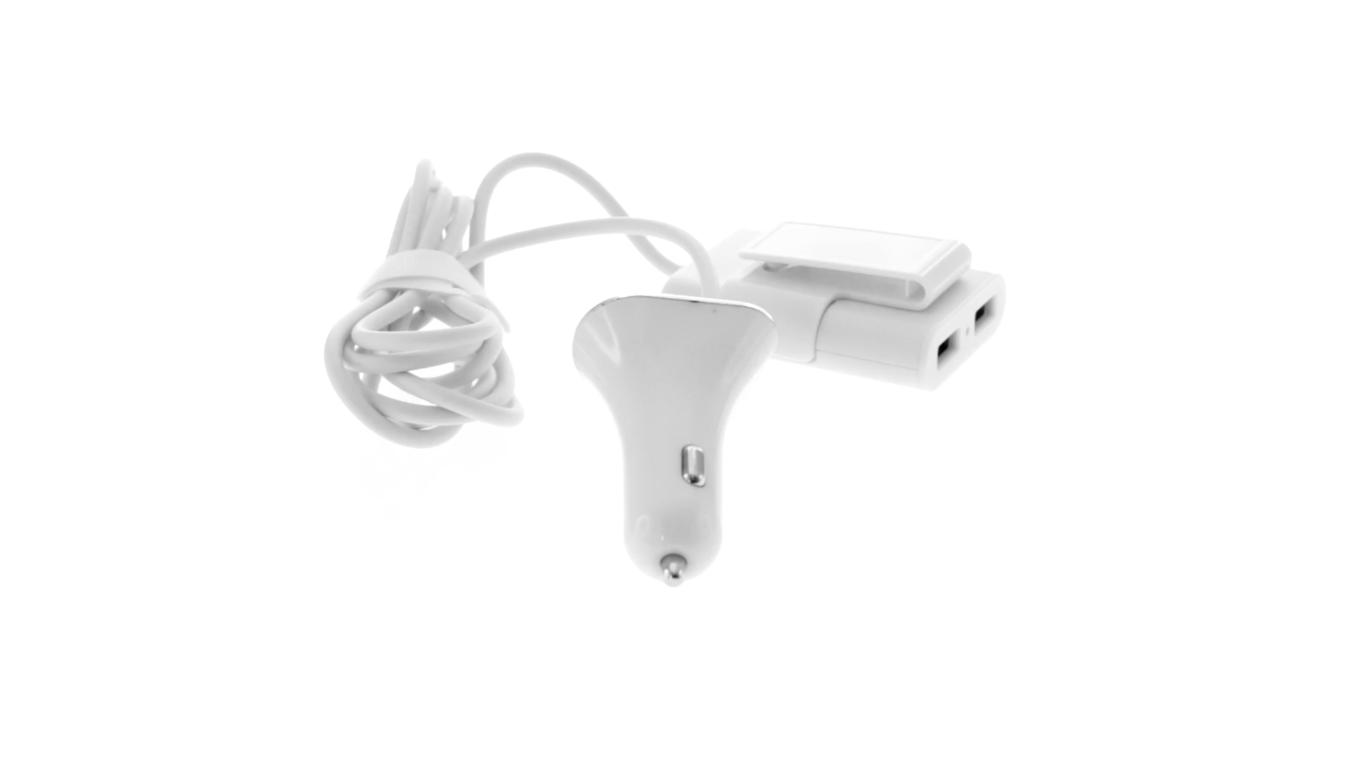 USB-Ladegerät für KFZ-Zigarettenanzünder mit Ladekapazität von 3.100 mAh. Mit Dual-USB-Ausgang für das gleichzeitige Laden von zwei Mobilgeräten, sowie einem Zusatzladeteil mit zwei weiteren USB-Anschlüssen für die Passagiere auf dem Rücksitz. Mit LED-Ladeanzeige. Präsentiert in einer individuellen Box.