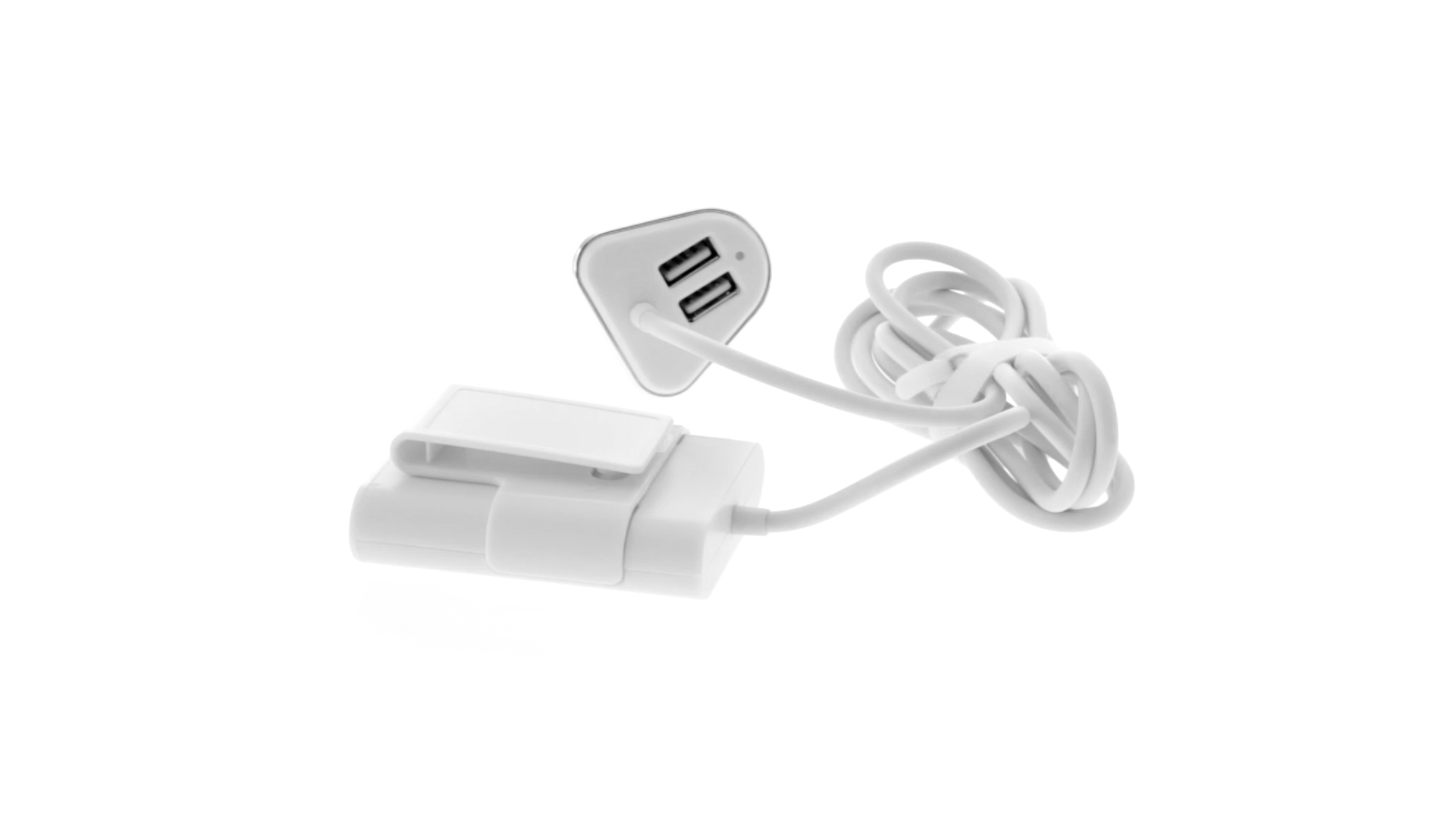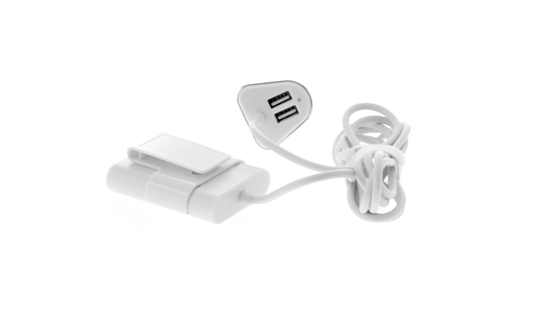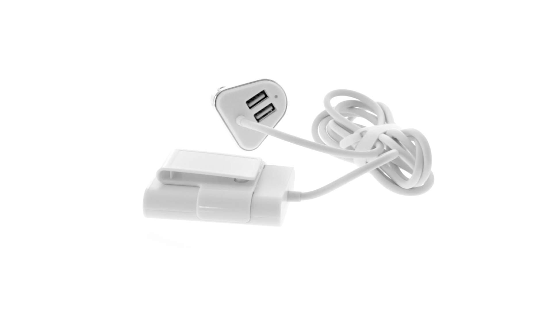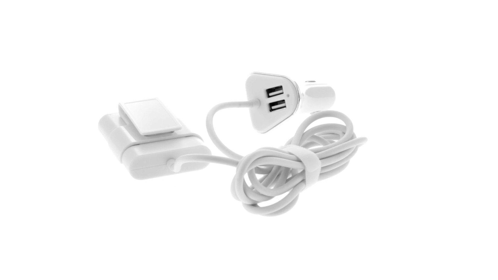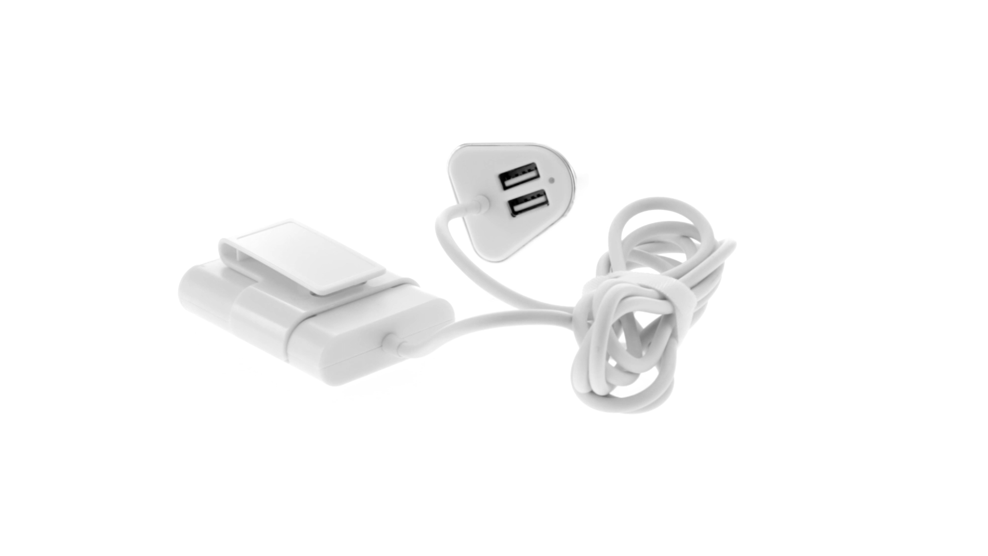 USB-Ladegerät für KFZ-Zigarettenanzünder mit Ladekapazität von 3.100 mAh. Mit Dual-USB-Ausgang für das gleichzeitige Laden von zwei Mobilgeräten, sowie einem Zusatzladeteil mit zwei weiteren USB-Anschlüssen für die Passagiere auf dem Rücksitz. Mit LED-Ladeanzeige. Präsentiert in einer individuellen Box.