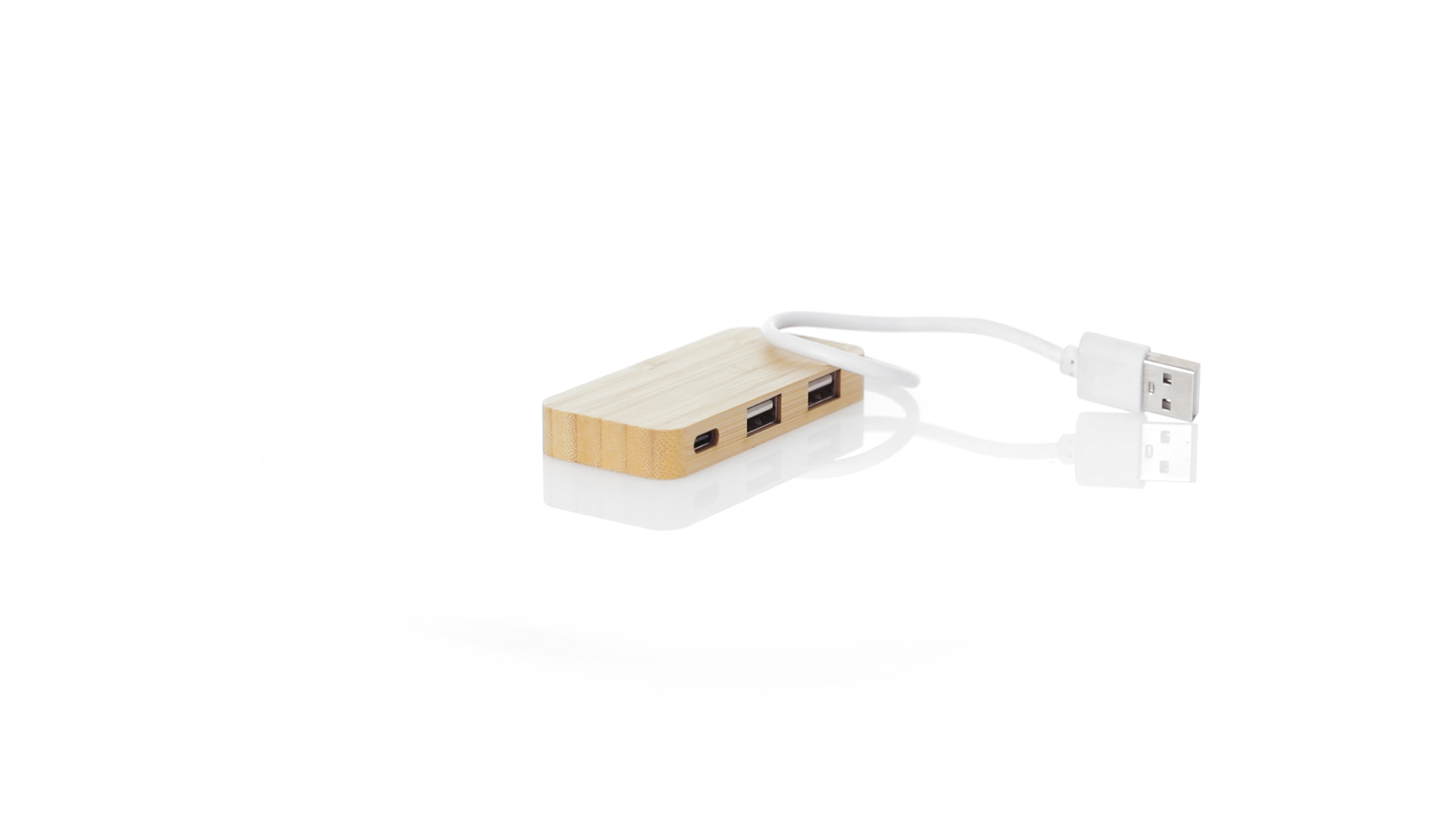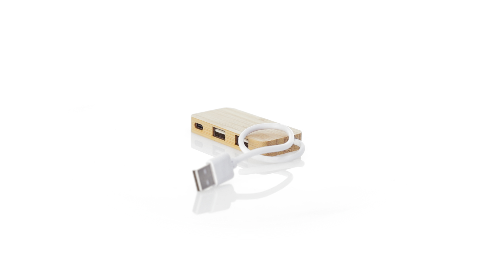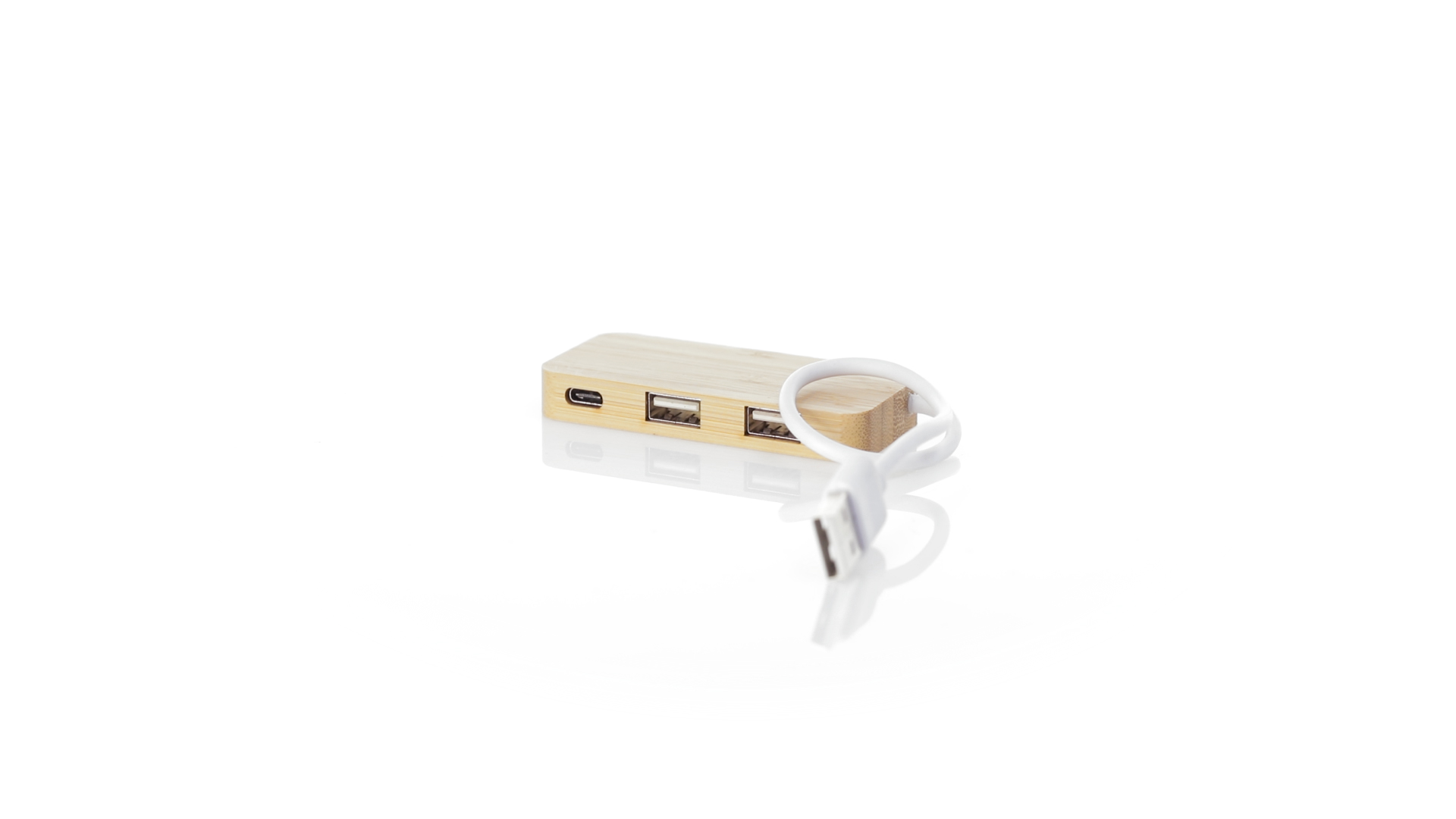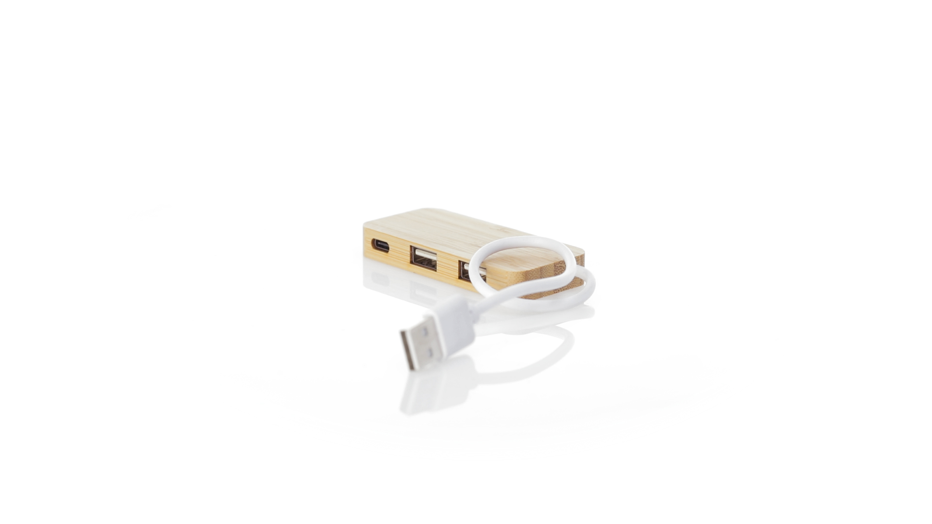USB 2.0-Anschluss in der Naturlinie und aus Bambus gefertigt. Enthält 1 Typ-C-Anschluss und 2 USB-Anschlüsse. Präsentiert in einer attraktiven Ökodesign-Box.