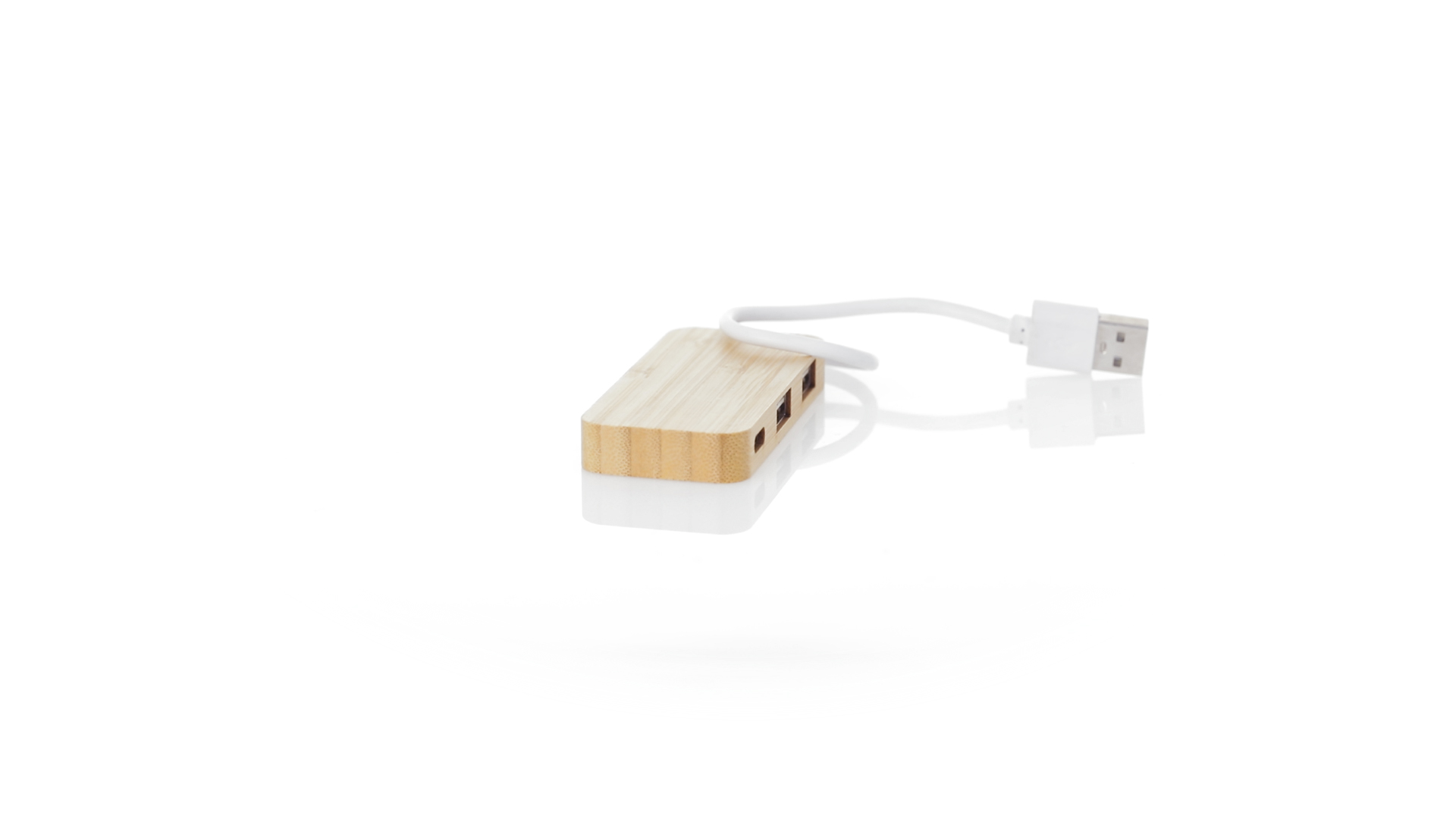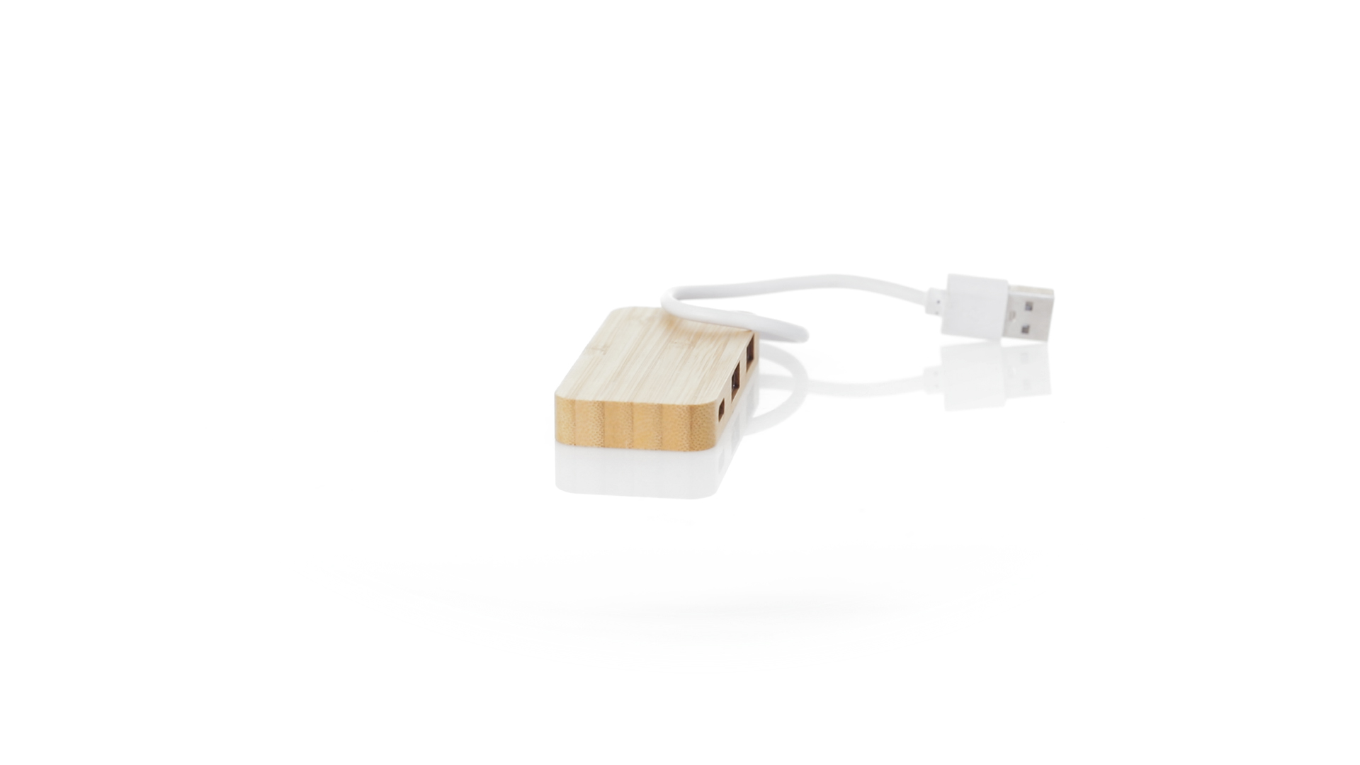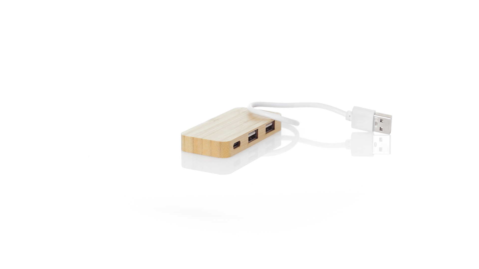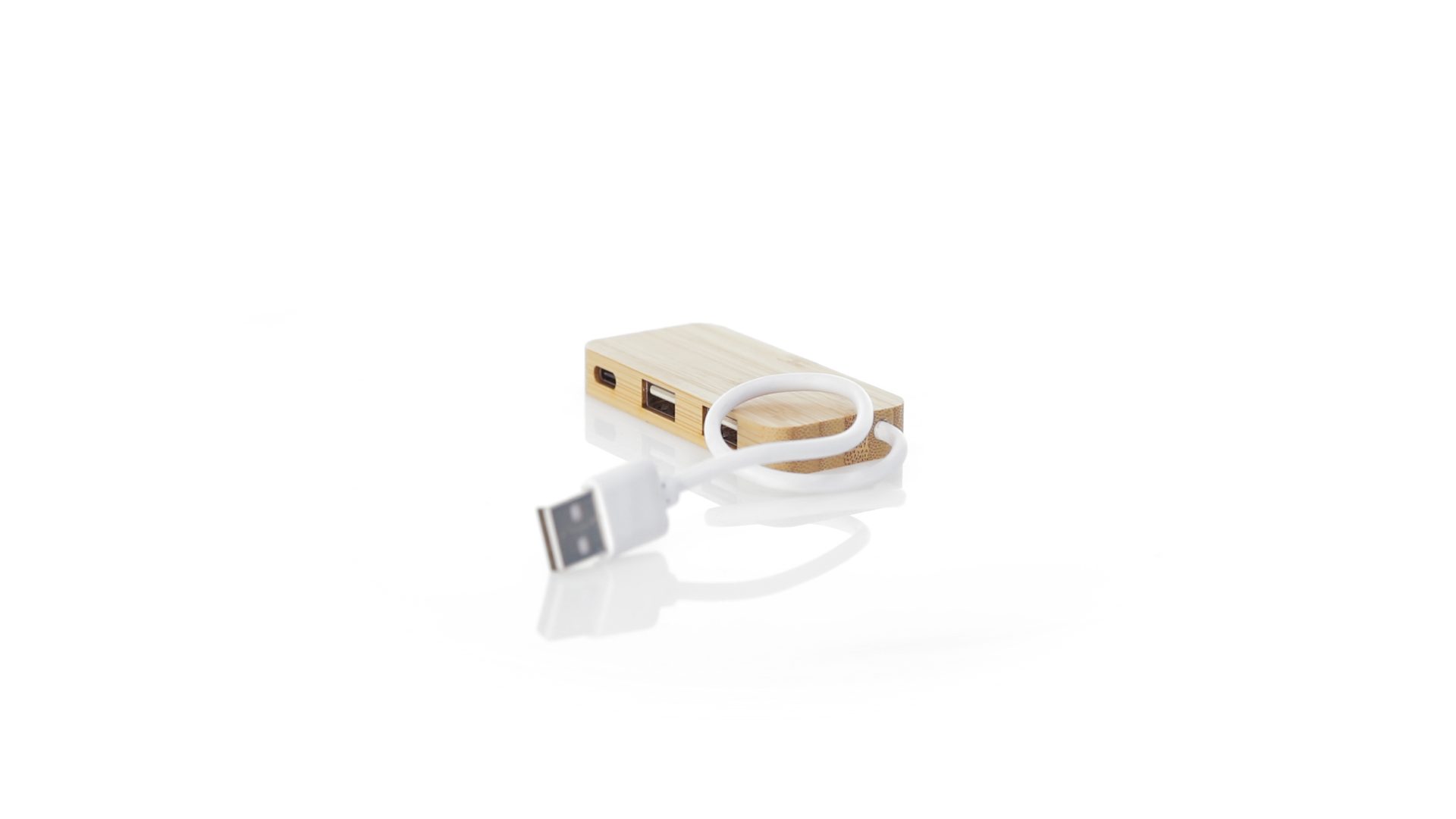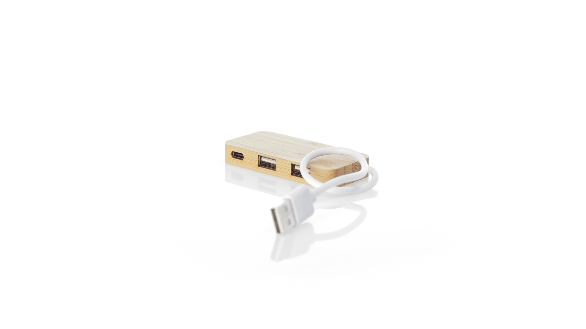 USB 2.0-Anschluss in der Naturlinie und aus Bambus gefertigt. Enthält 1 Typ-C-Anschluss und 2 USB-Anschlüsse. Präsentiert in einer attraktiven Ökodesign-Box.