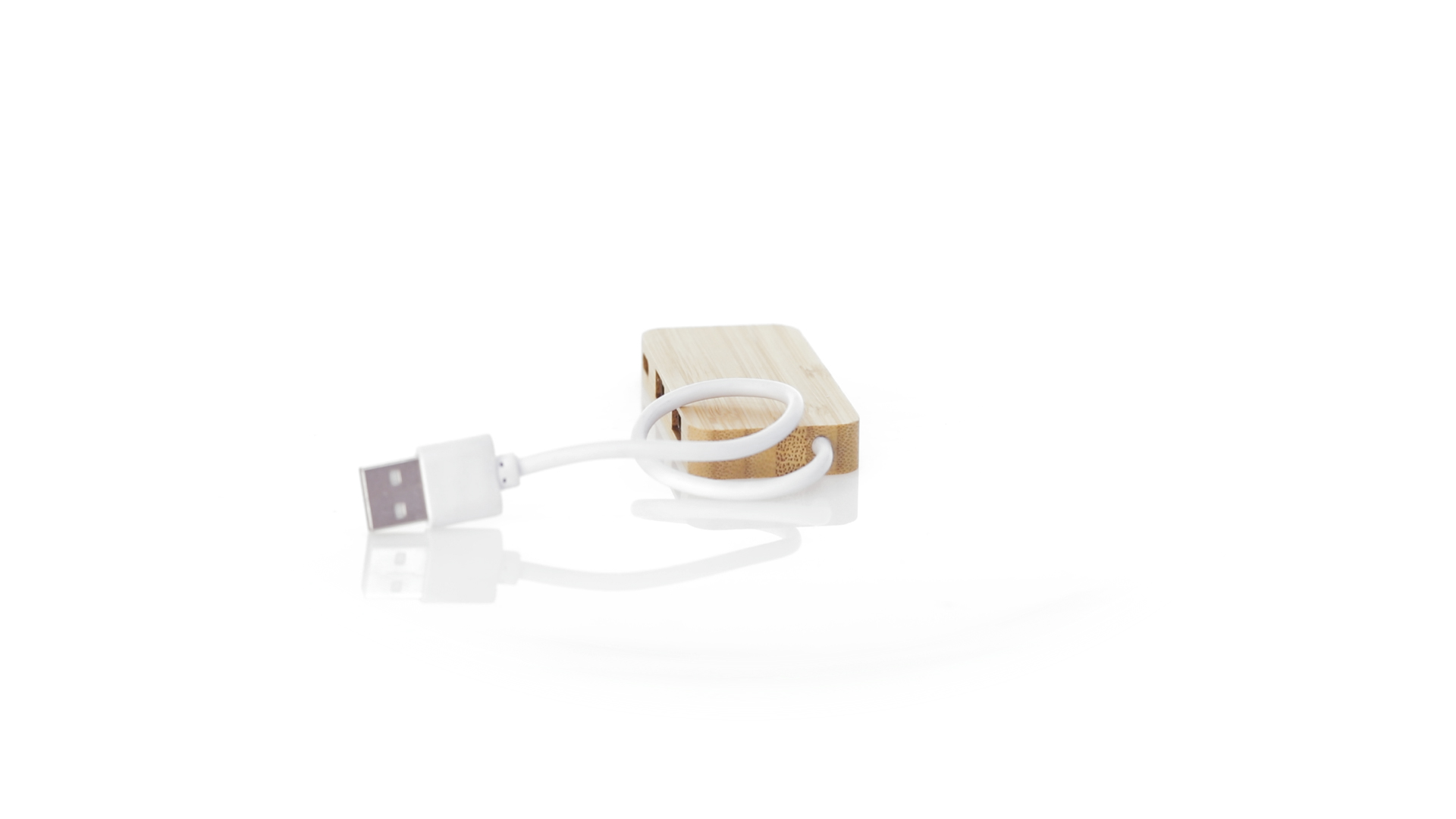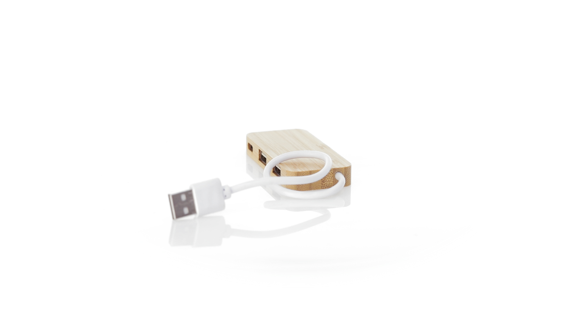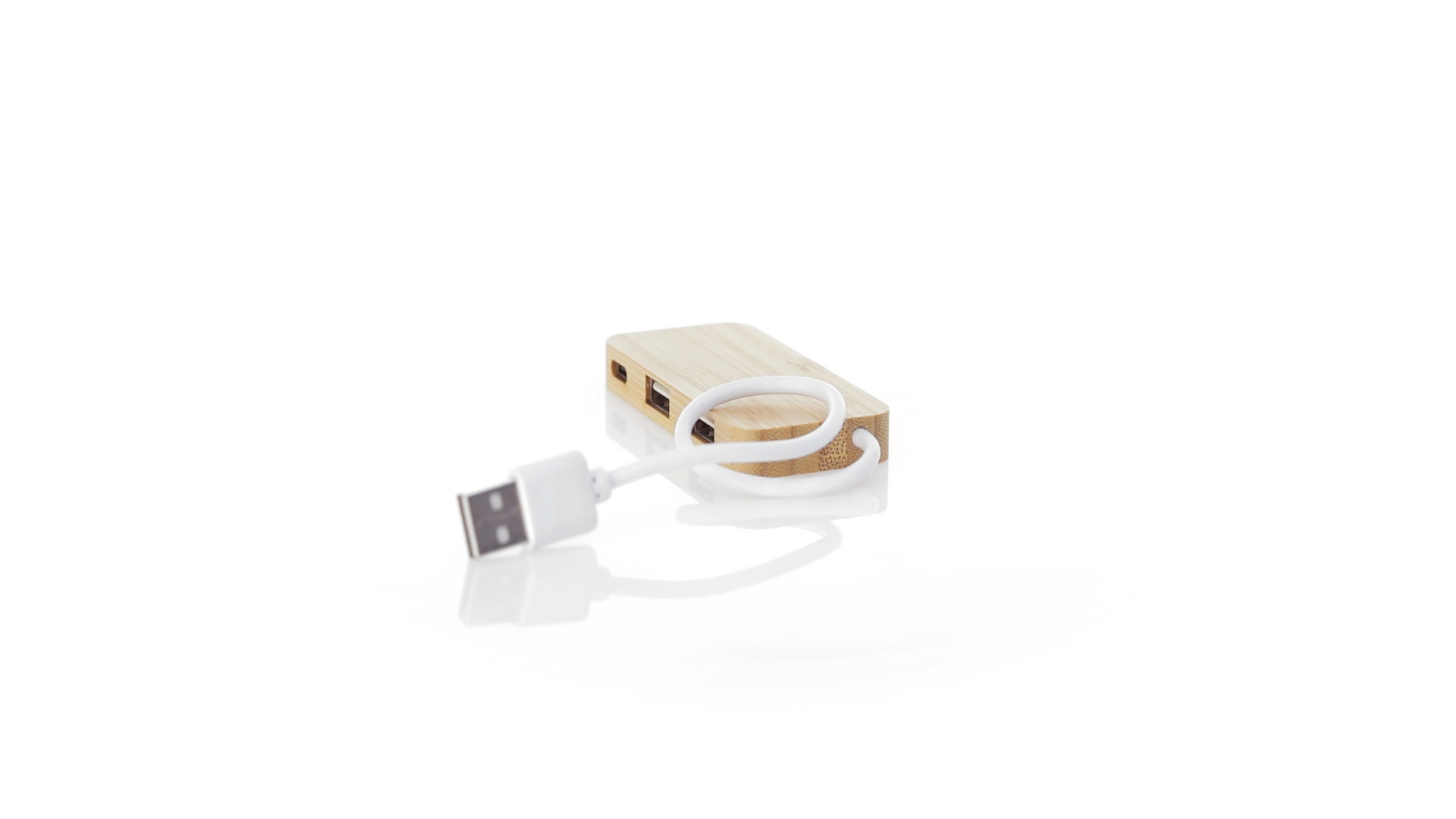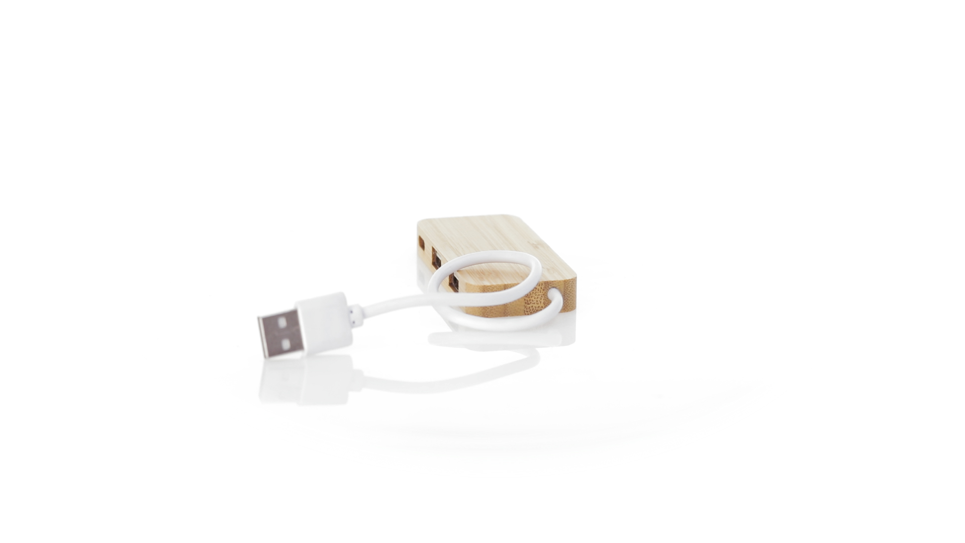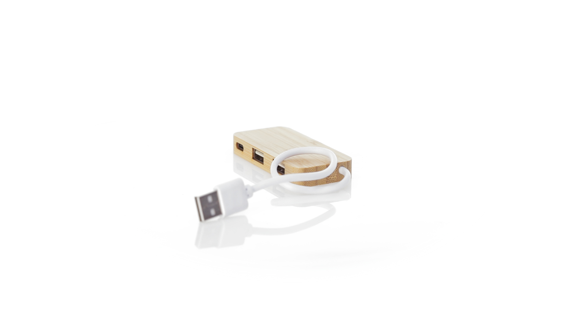 USB 2.0-Anschluss in der Naturlinie und aus Bambus gefertigt. Enthält 1 Typ-C-Anschluss und 2 USB-Anschlüsse. Präsentiert in einer attraktiven Ökodesign-Box.