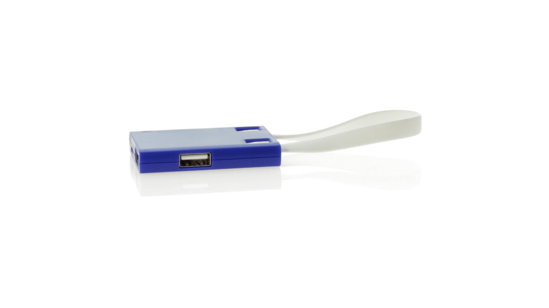 Puerto USB 2.0 con función cargador. Incluye cable cargador y sincronizador de datos con conexión dual Micro USB/Lightning. Con 3 puertos USB y en variada gama de vivos colores, amplia superficie de marcaje y presentado en bolsa individual. Función de sincronización compatible con dispositivos Android.