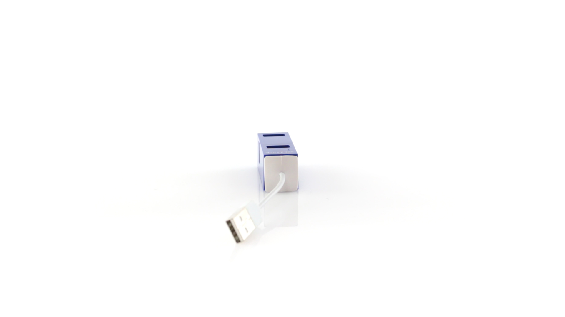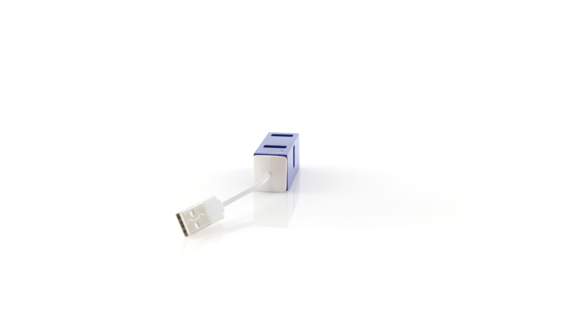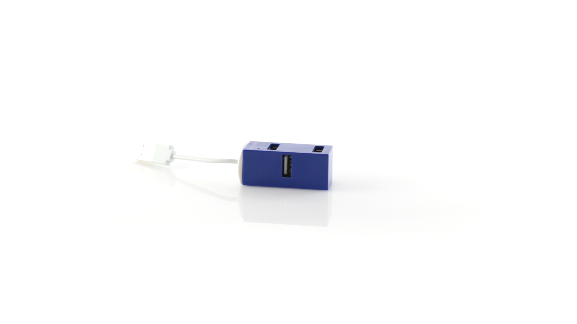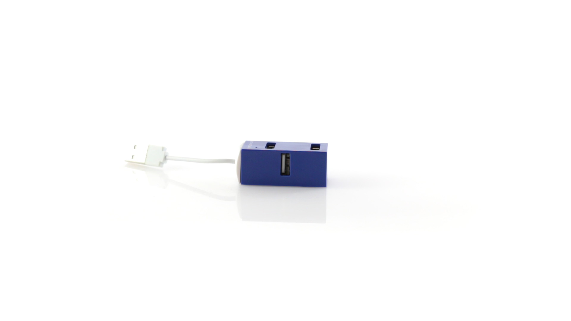 Kompakter USB 2.0-Hub mit minimalistischen Design in verschiedenen Farben. Mit 4 USB-Ports. Präsentiert in einer individuellen schwarzen Box.