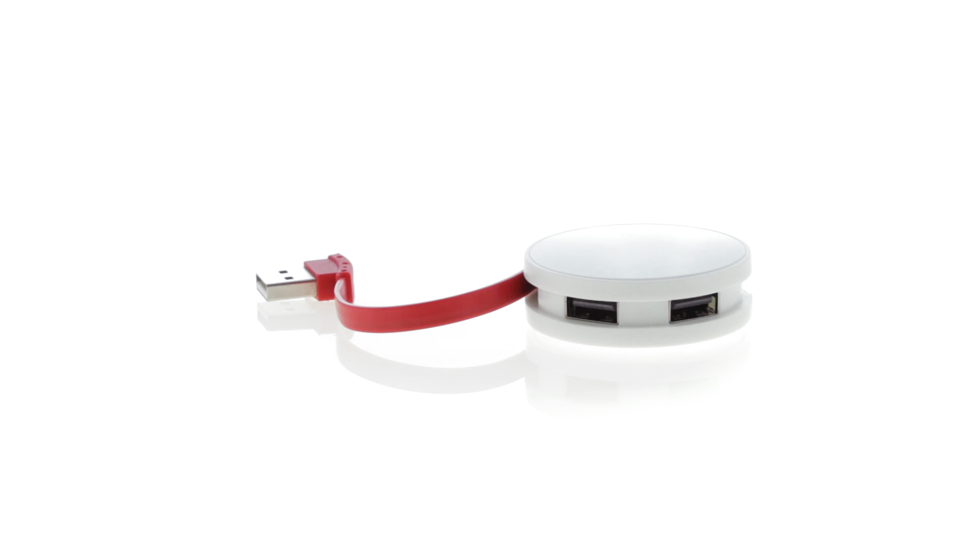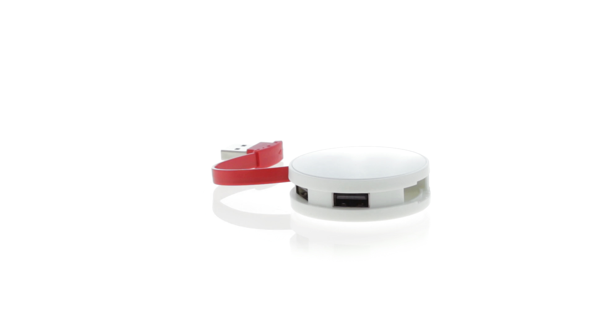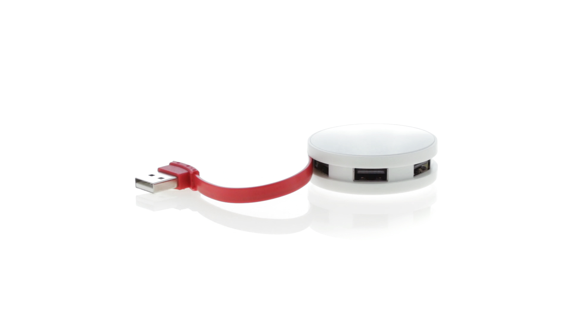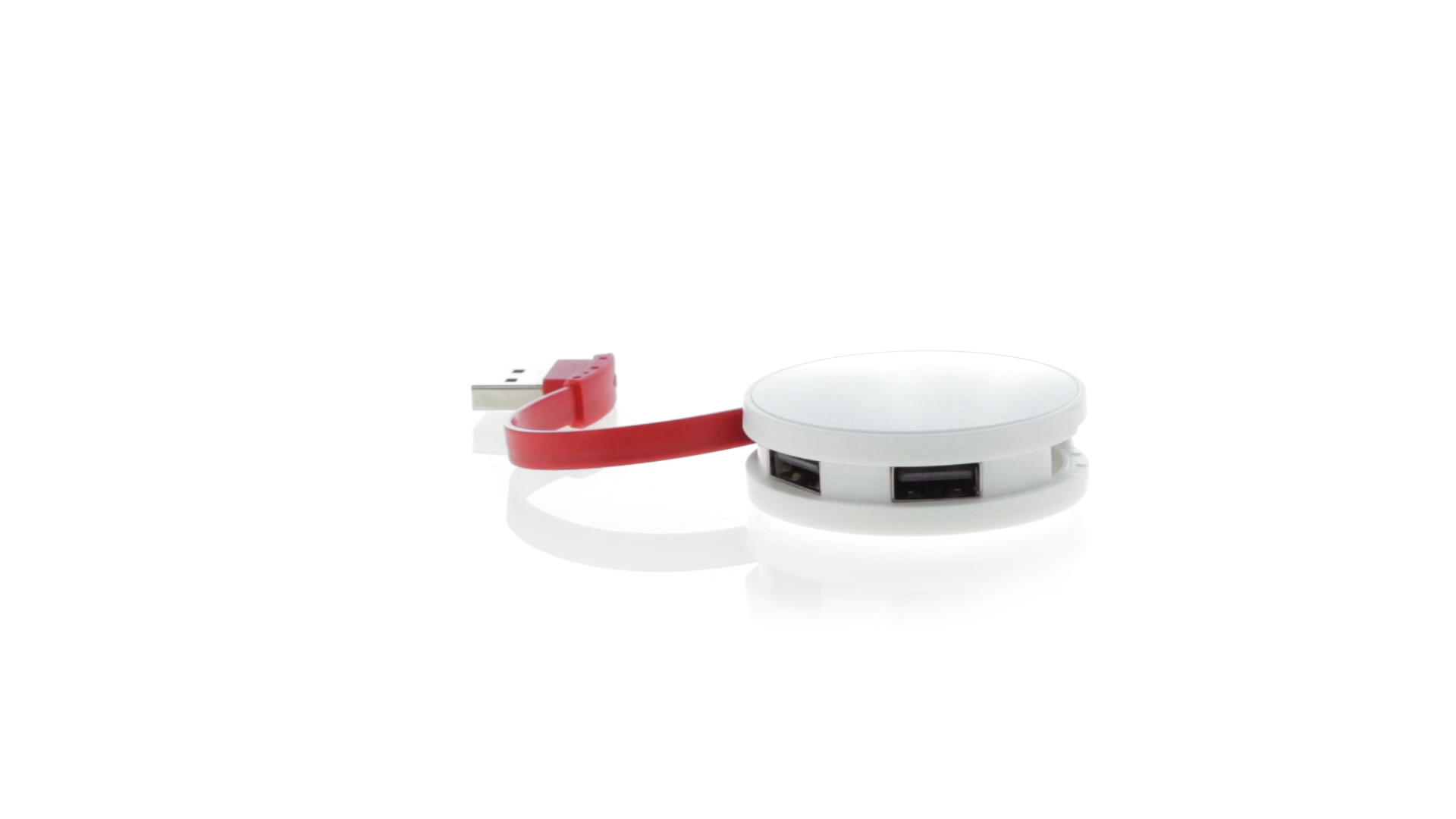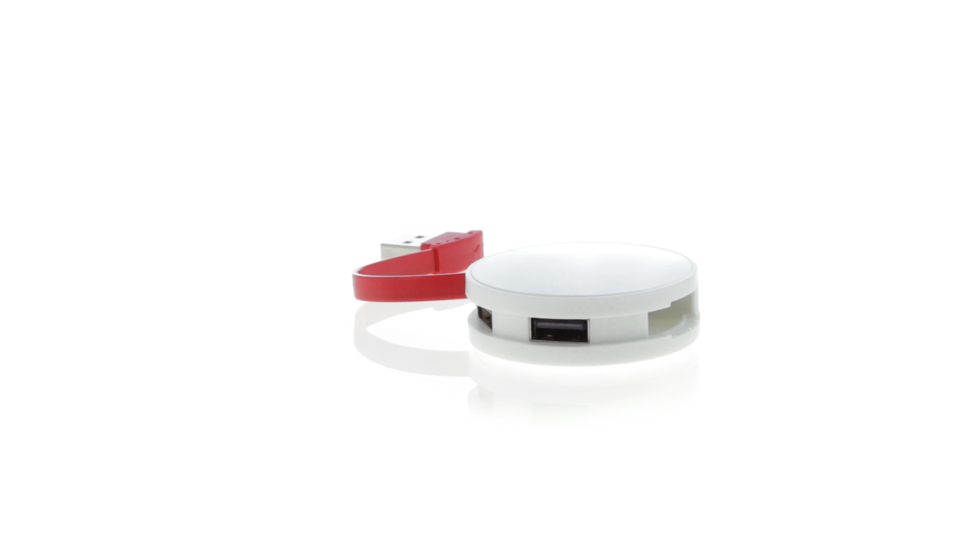 Origineller und kompakter USB-Hub mit zweifarbigem rundem Design. Bietet 4 USB 2.0-Ports für den gleichzeitigen Anschluss von 4 Geräten. Speziell entwickelt für den Tampon- und Digitaldruck. Präsentiert in einer individuellen Box.