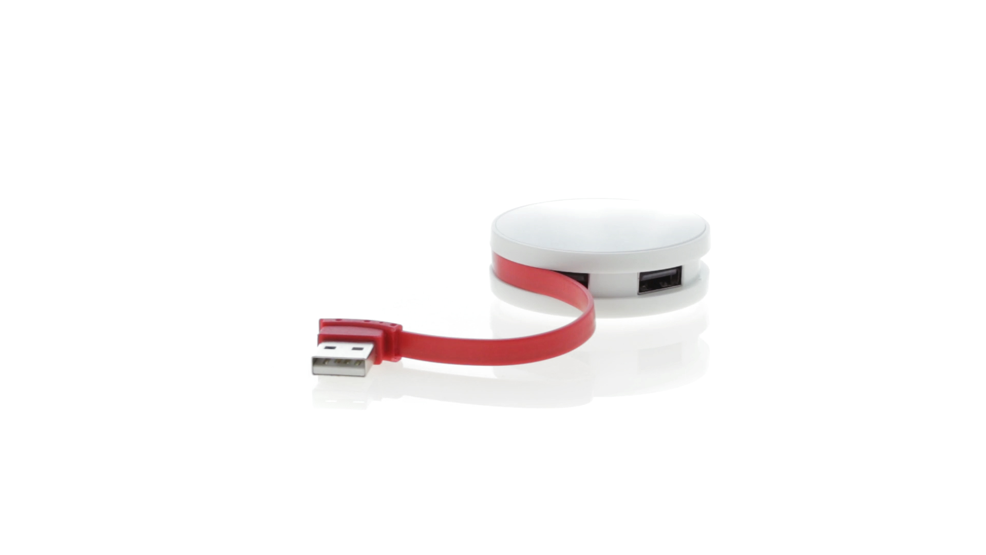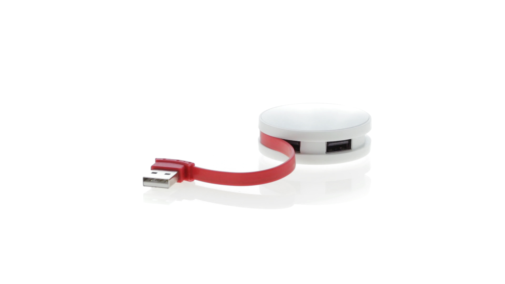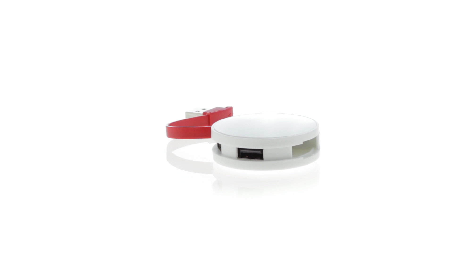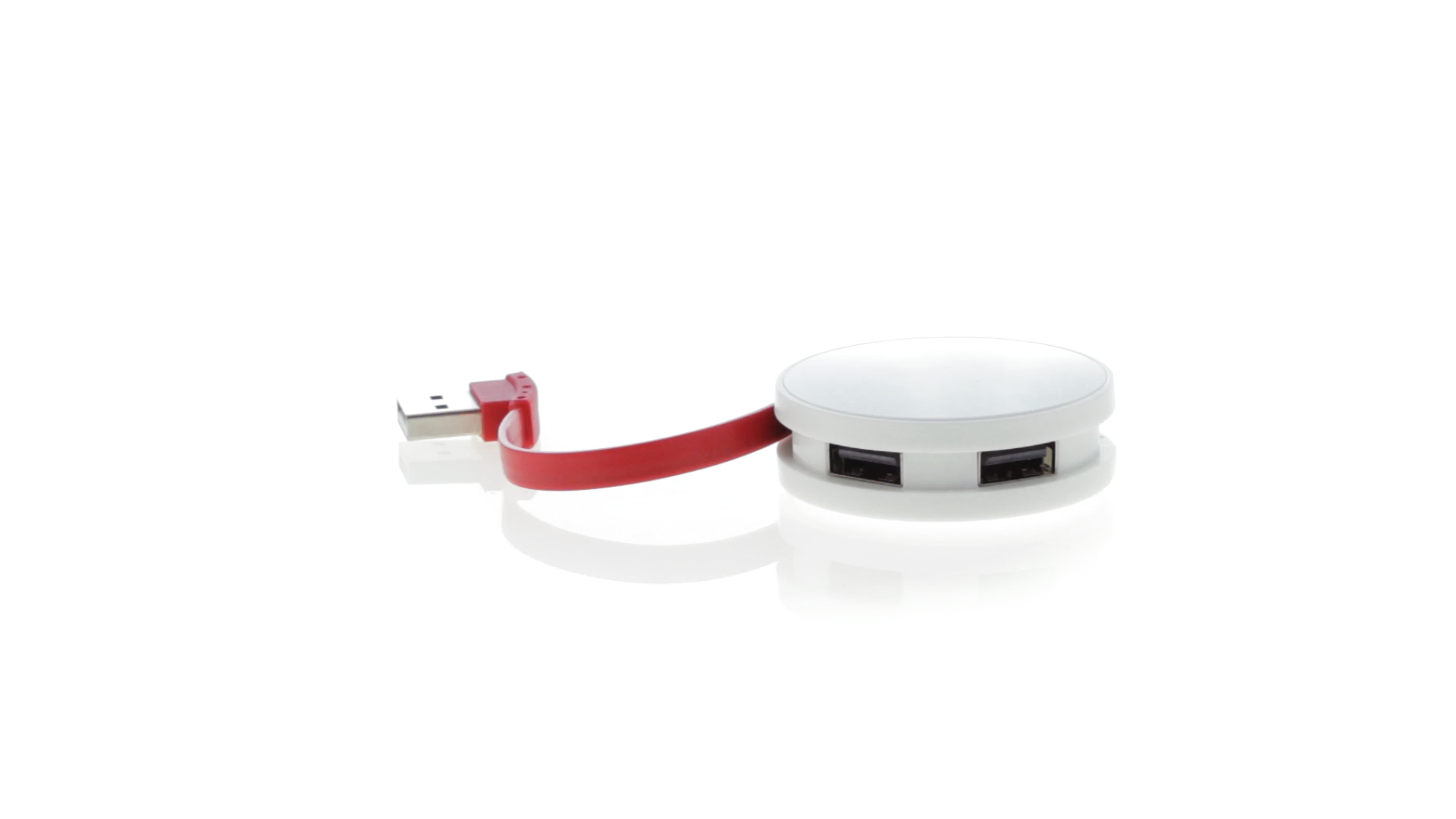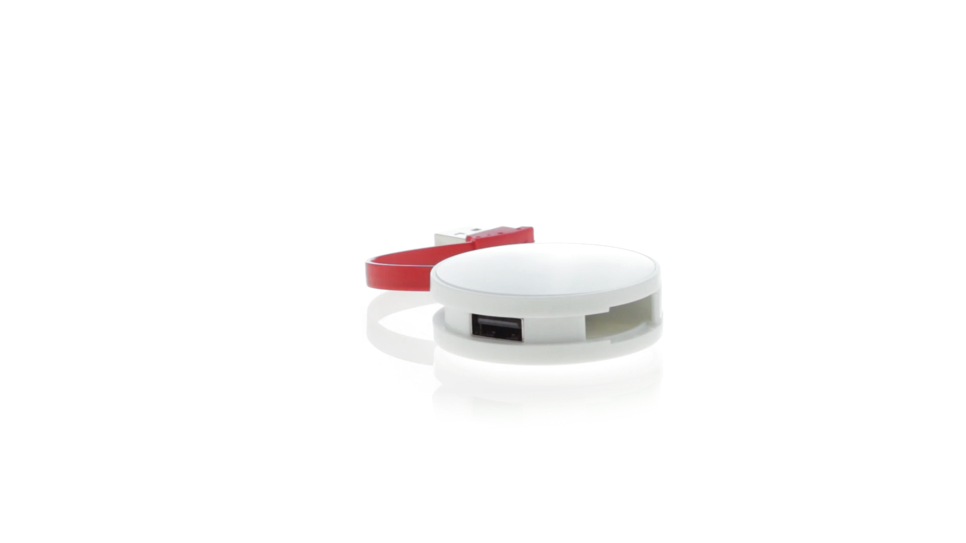 Origineller und kompakter USB-Hub mit zweifarbigem rundem Design. Bietet 4 USB 2.0-Ports für den gleichzeitigen Anschluss von 4 Geräten. Speziell entwickelt für den Tampon- und Digitaldruck. Präsentiert in einer individuellen Box.