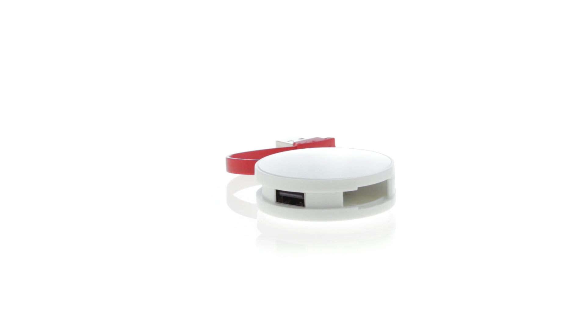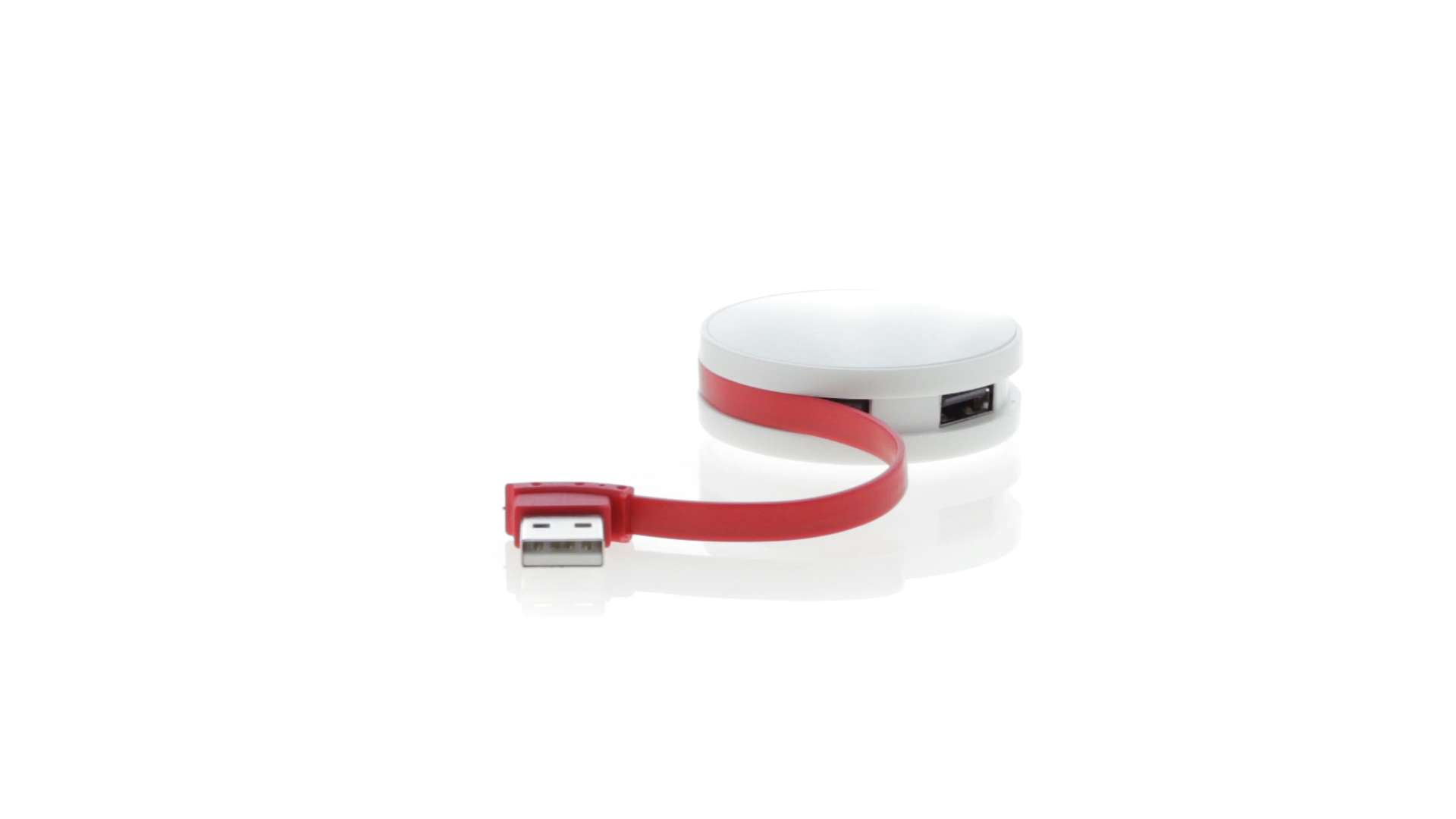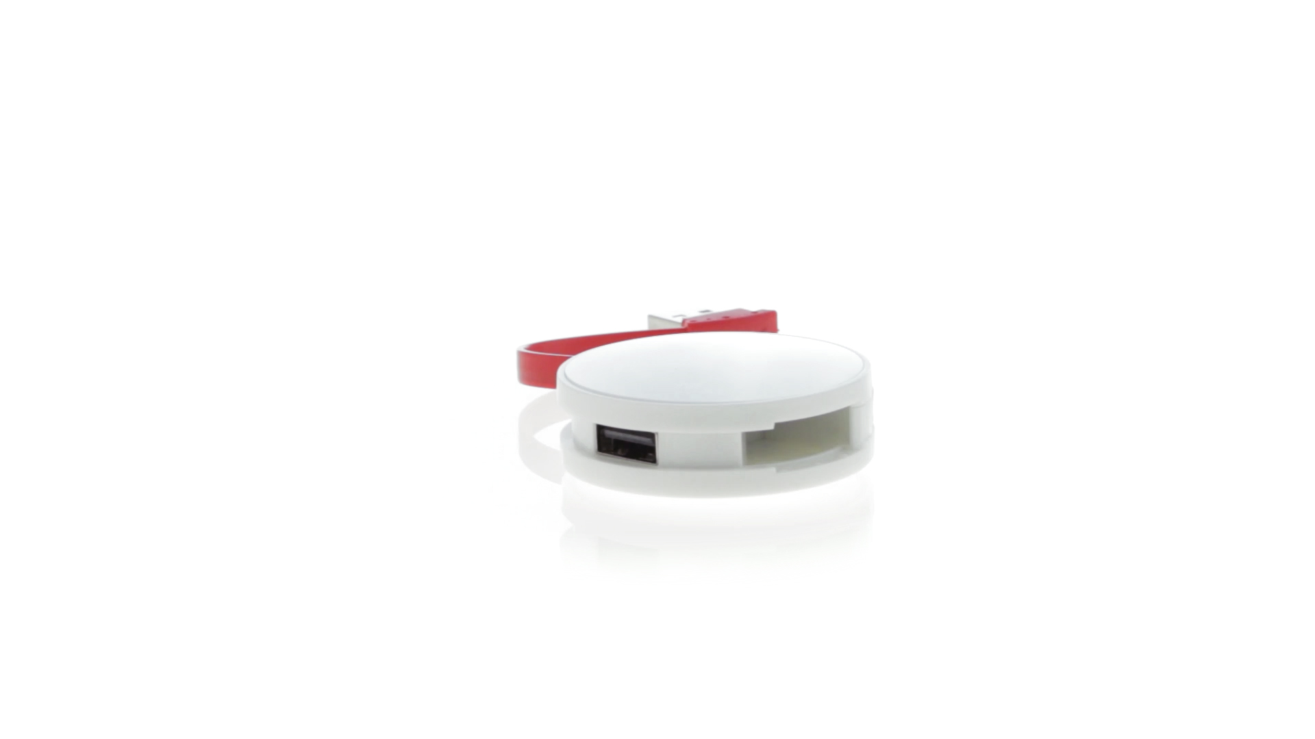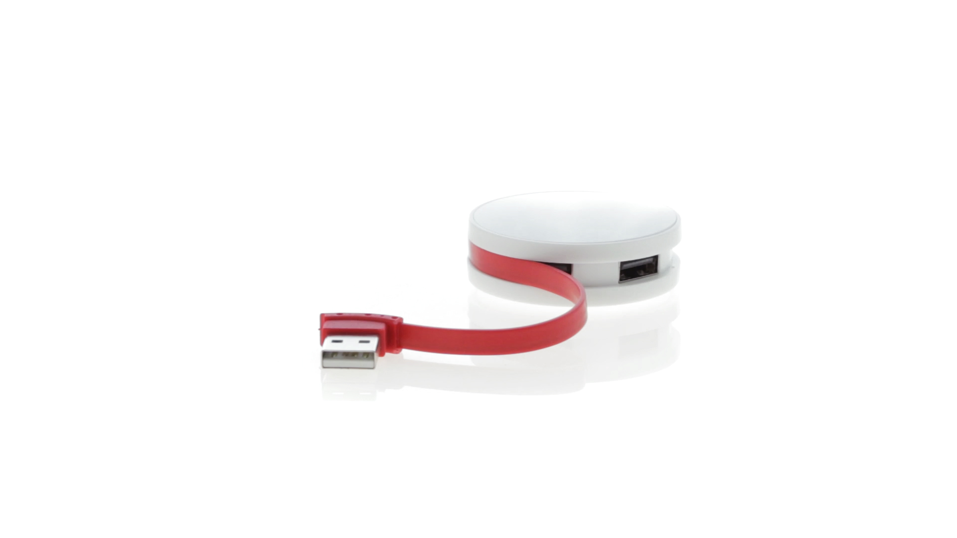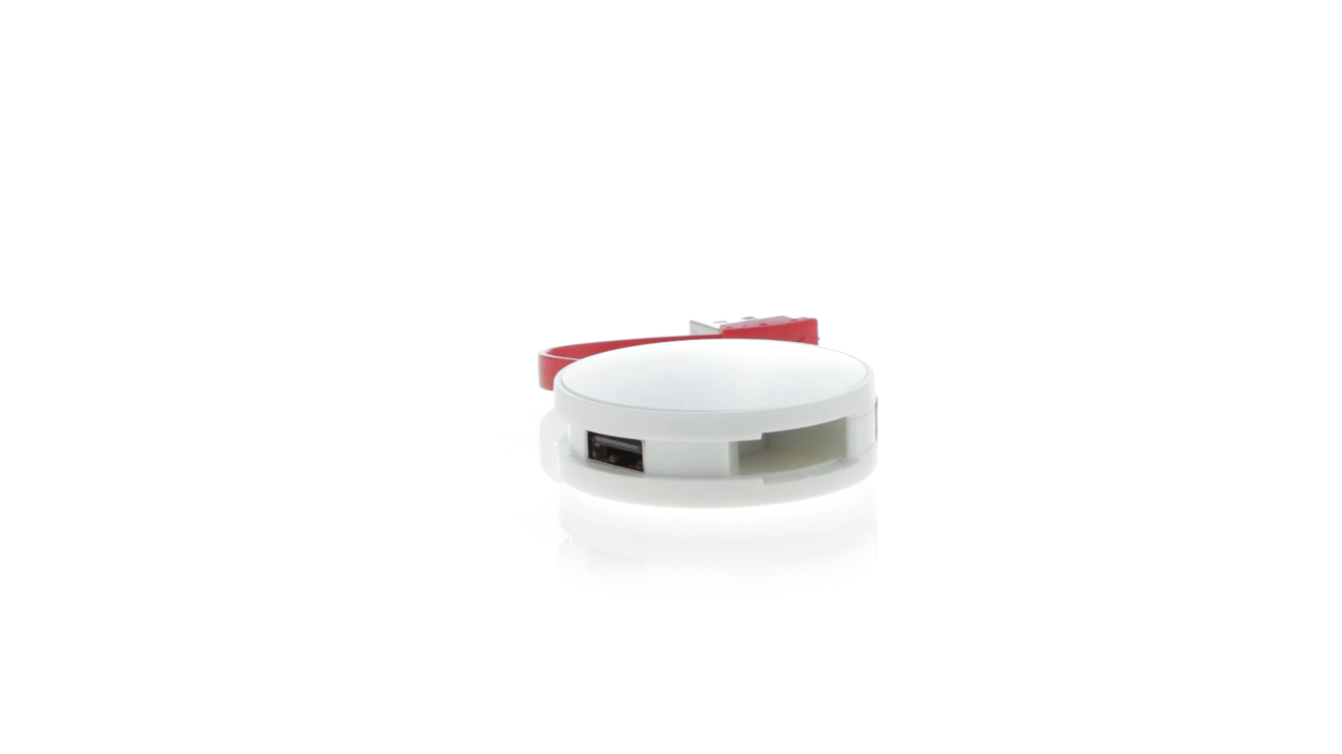 Origineller und kompakter USB-Hub mit zweifarbigem rundem Design. Bietet 4 USB 2.0-Ports für den gleichzeitigen Anschluss von 4 Geräten. Speziell entwickelt für den Tampon- und Digitaldruck. Präsentiert in einer individuellen Box.