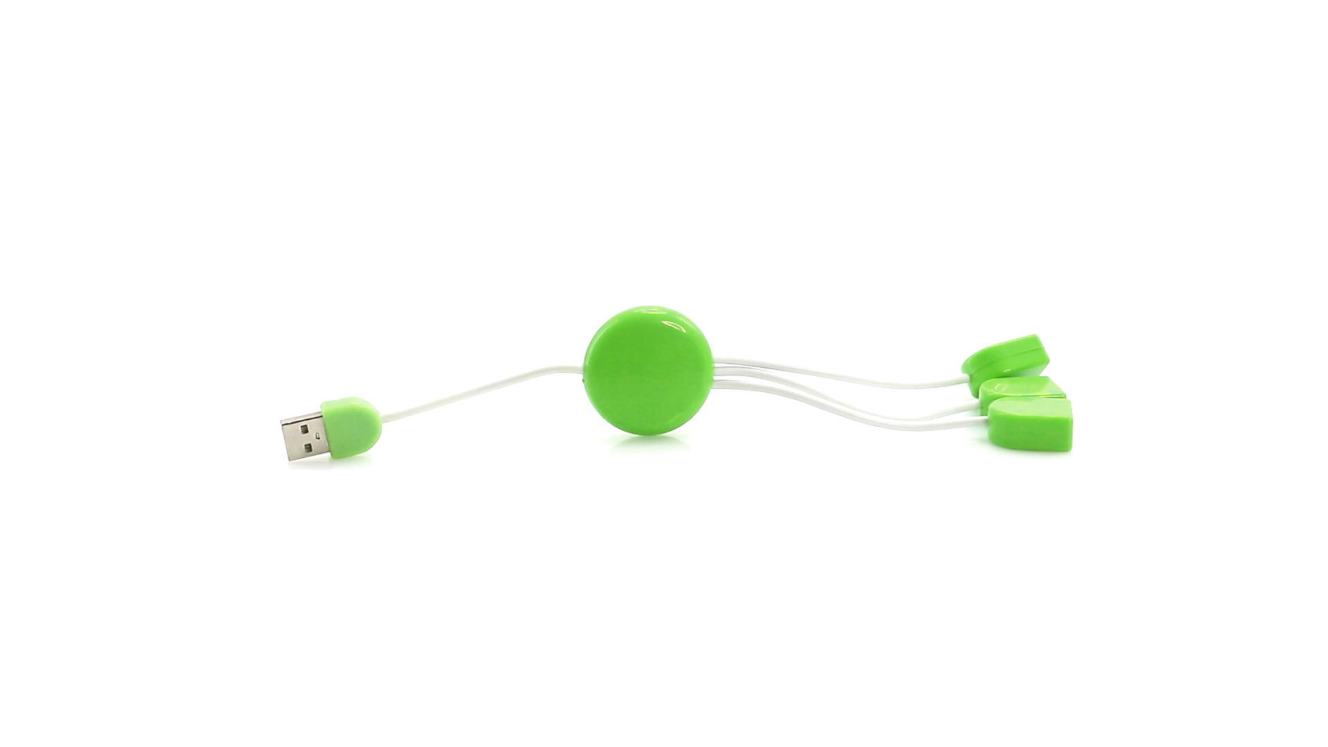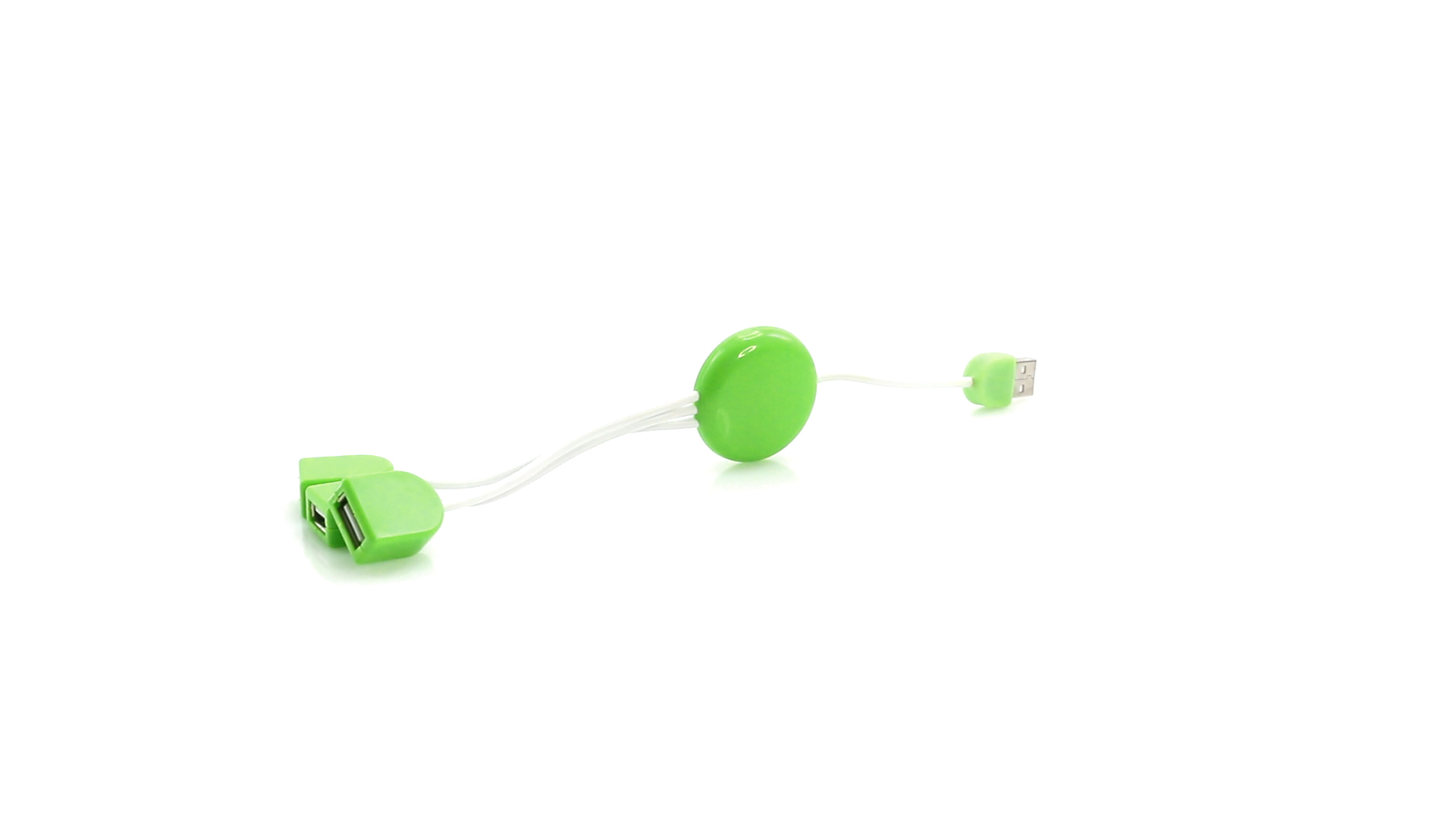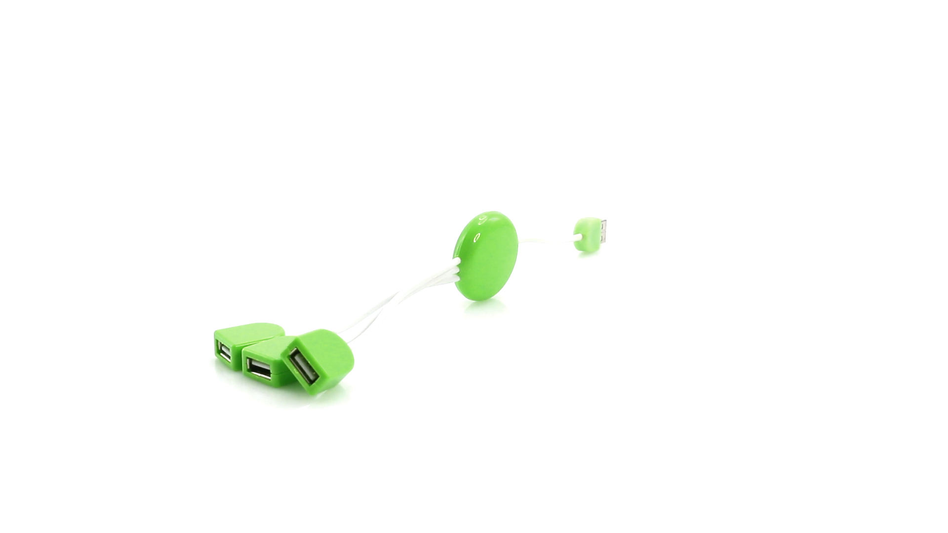 USB 2.0-Hub in kräftigen Farben mit farblich passenden Kontrastelementen. Mit 3 USB-Ports und glattem kreisförmigen Bereich zum Bedrucken. Präsentiert in einer individuellen schwarzen Box.