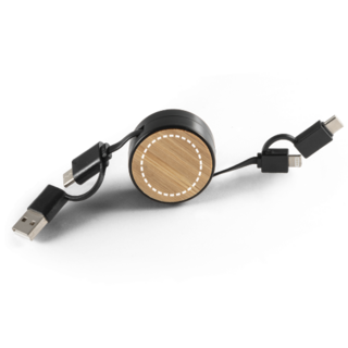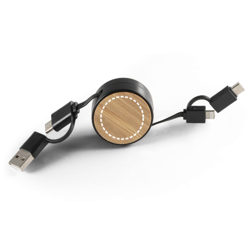 Multifunktionales 6-in-1-Auszieh-Kabel – Design, Funktionalität und Vielseitigkeit in einem. Dank des innovativen Systems lassen sich die Kabelenden nur dann ausziehen, wenn sie gebraucht werden – so vermeiden Sie lose oder verhedderte Kabel beim Transport oder bei der Aufbewahrung. Die Adapter an beiden Enden sorgen für Kompatibilität mit zahlreichen Geräten.Material: 100 % recyceltes ABS und BambusEingang: USB-C, USB-A (10 W)Ausgang: USB-C, 2-in-1 microUSB & Lightning (10 W)Funktion: LadenLieferung: Geschenkbox aus Kraftpapier 40 x 13 mm | Gestrecktes Kabel: 40 x 800 mm | Schachtel: 73 x 55 x 25 mm