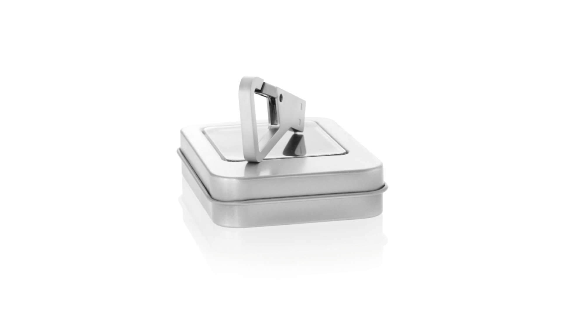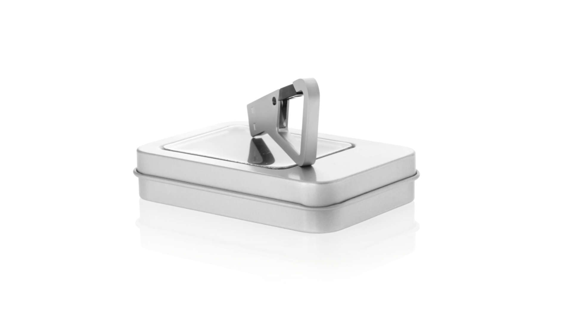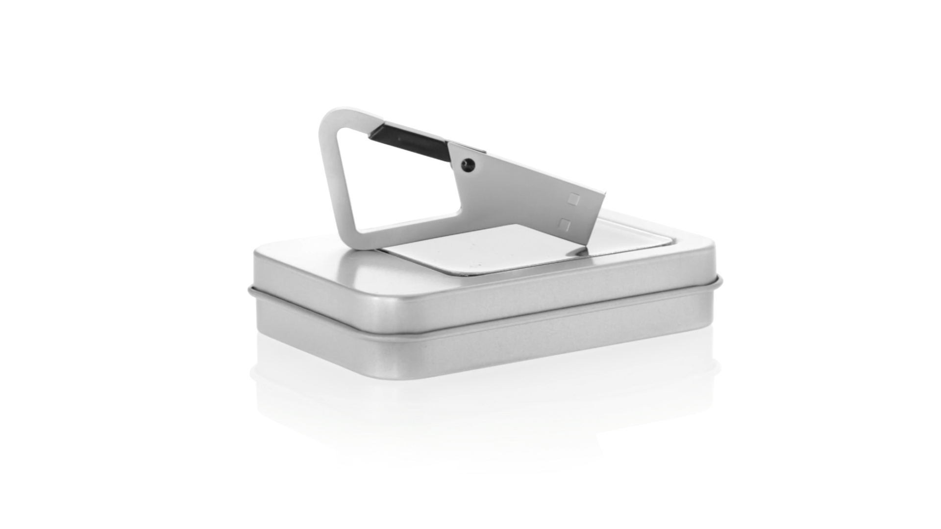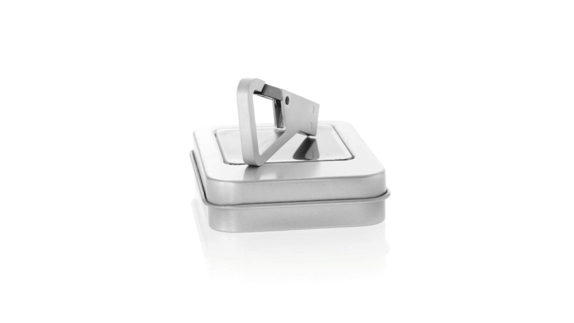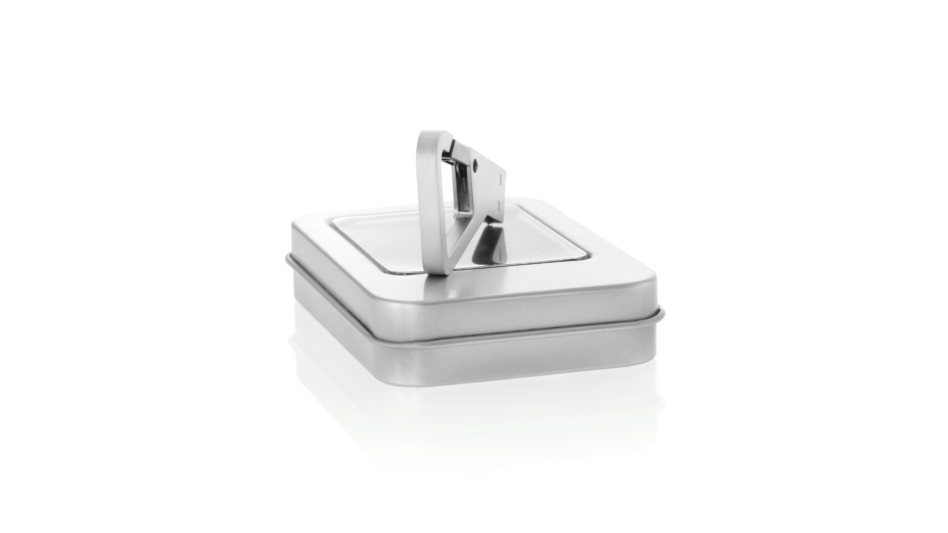 USB-Stick mit 8 GB Speicherkapazität aus Metall. Mit originellem Karabiner-Design mit Verschluss in einer Vielzahl von Farben. Präsentiert in einer individuellen Metallbox mit Fenster und weichem, gestanztem Schaumstoff im Inneren.