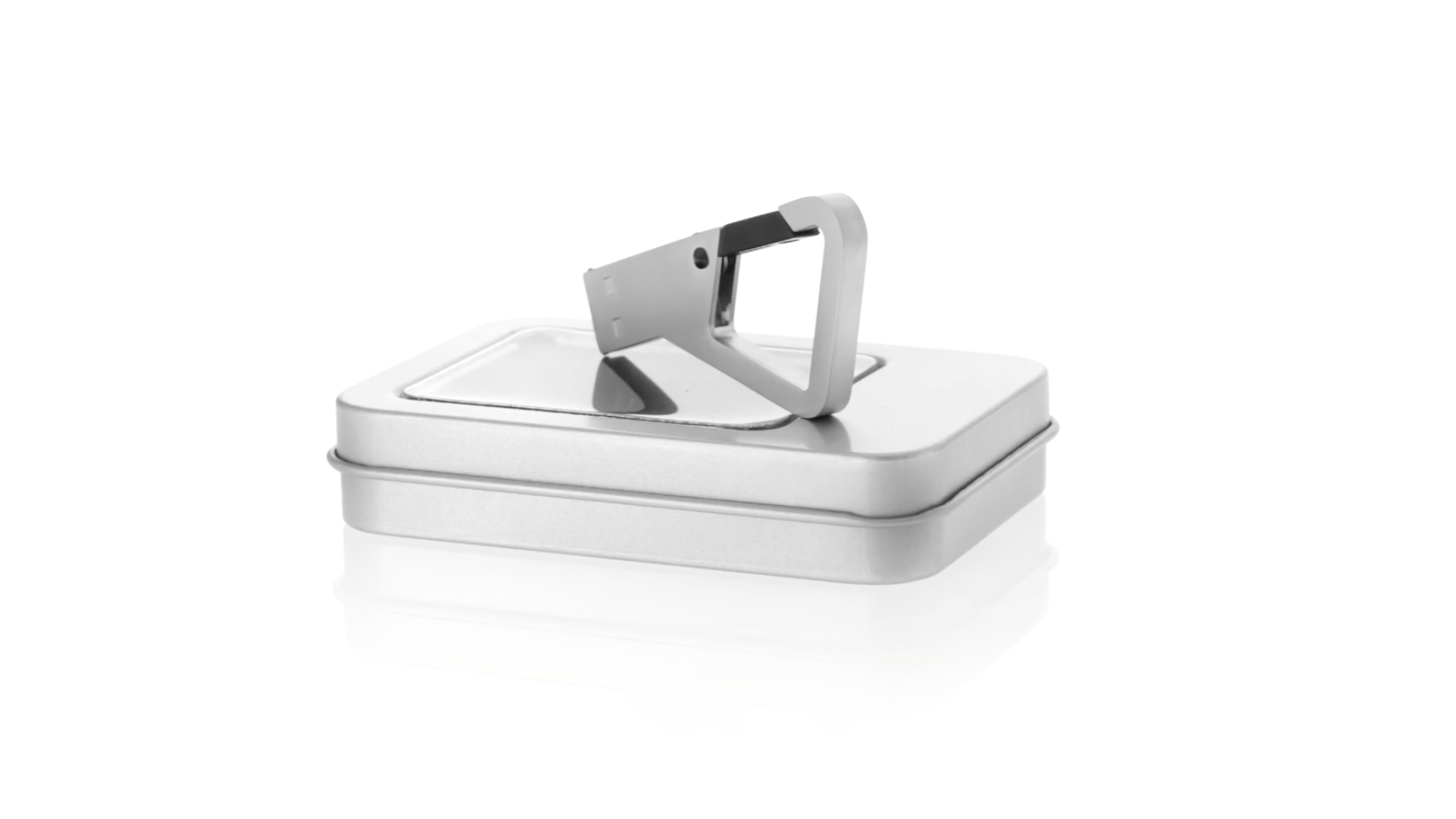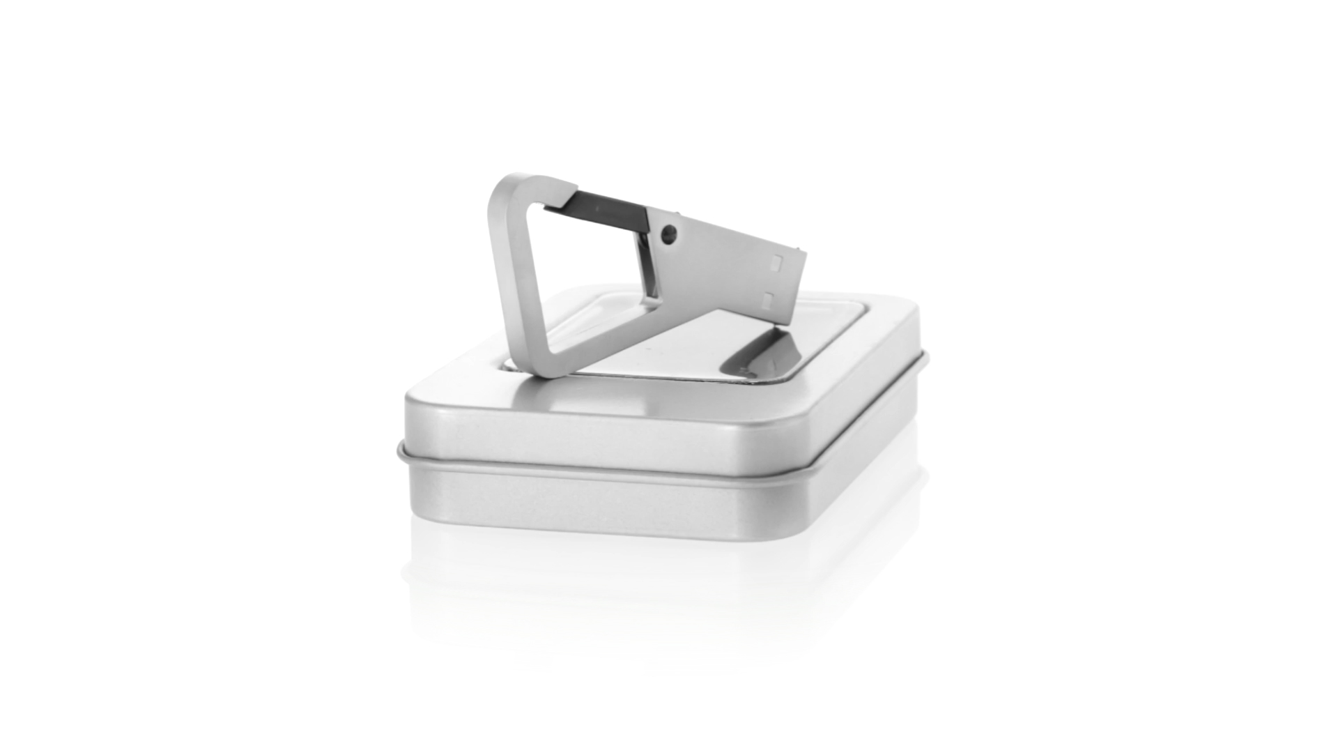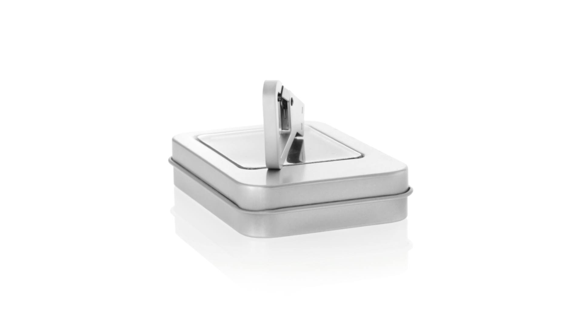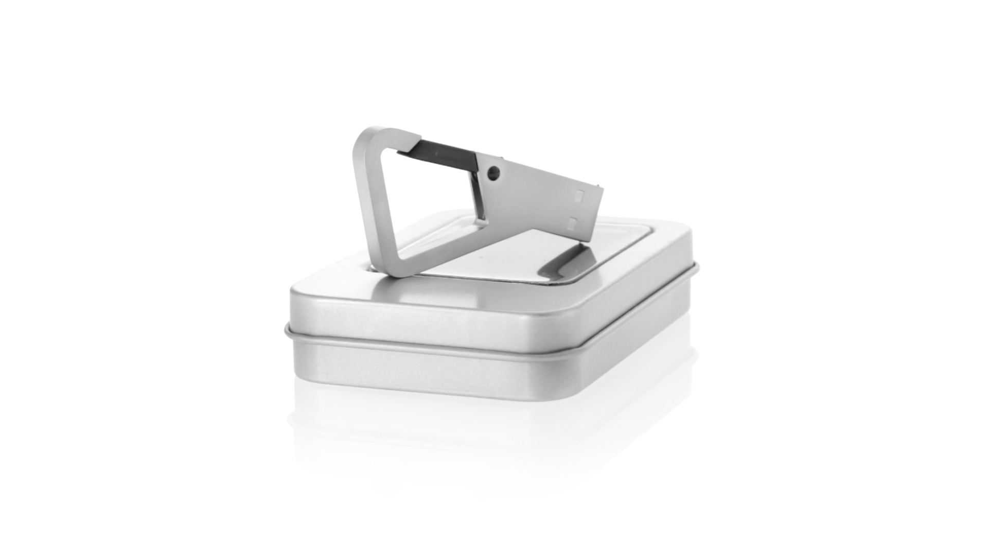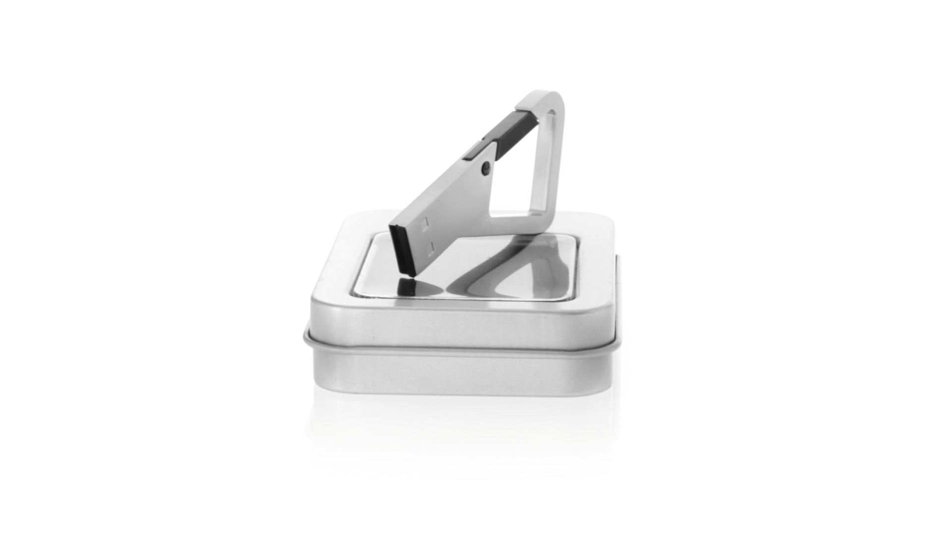 USB-Stick mit 8 GB Speicherkapazität aus Metall. Mit originellem Karabiner-Design mit Verschluss in einer Vielzahl von Farben. Präsentiert in einer individuellen Metallbox mit Fenster und weichem, gestanztem Schaumstoff im Inneren.