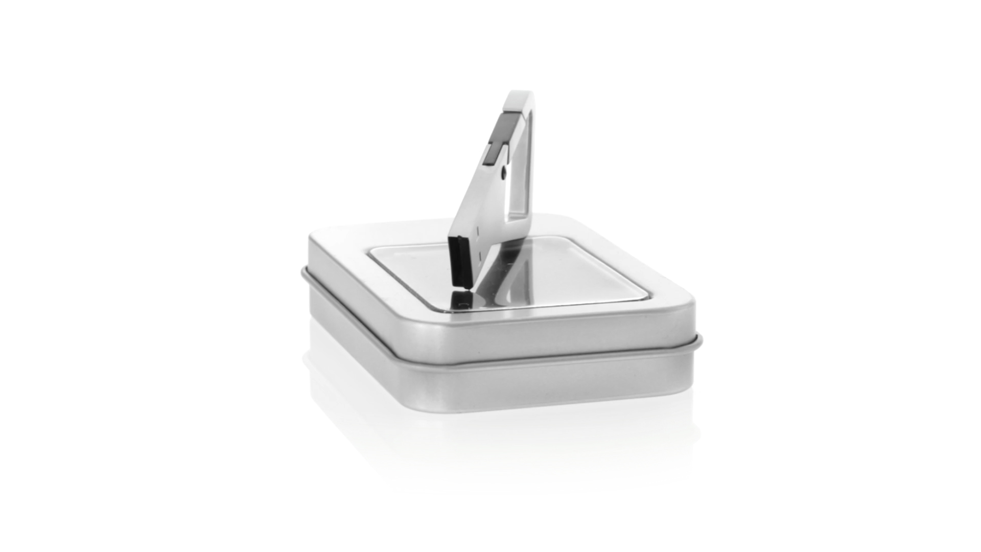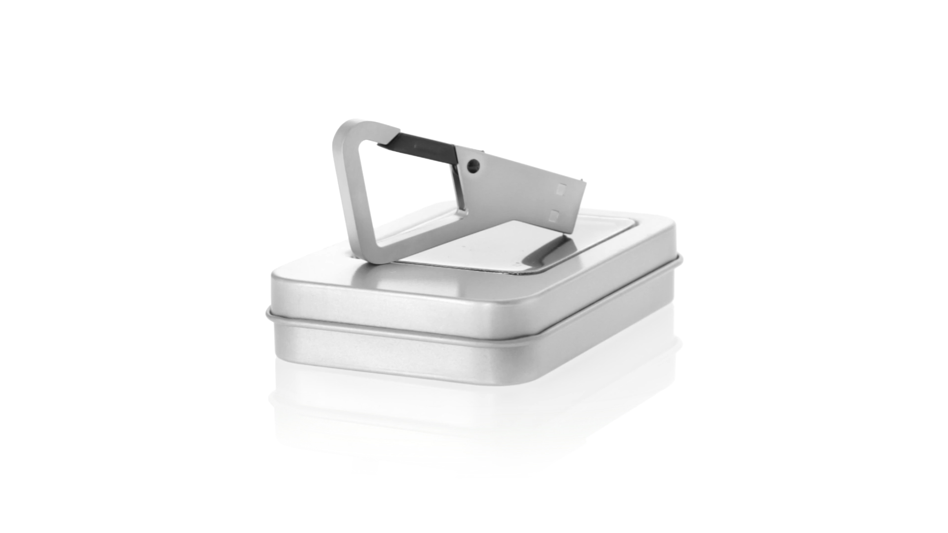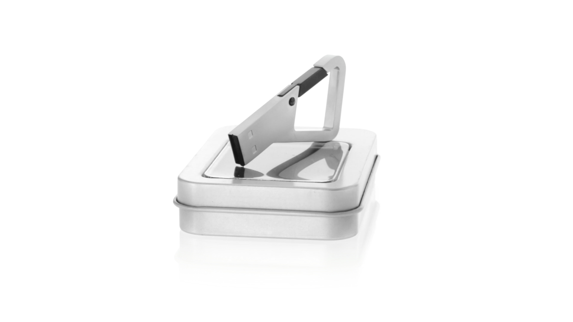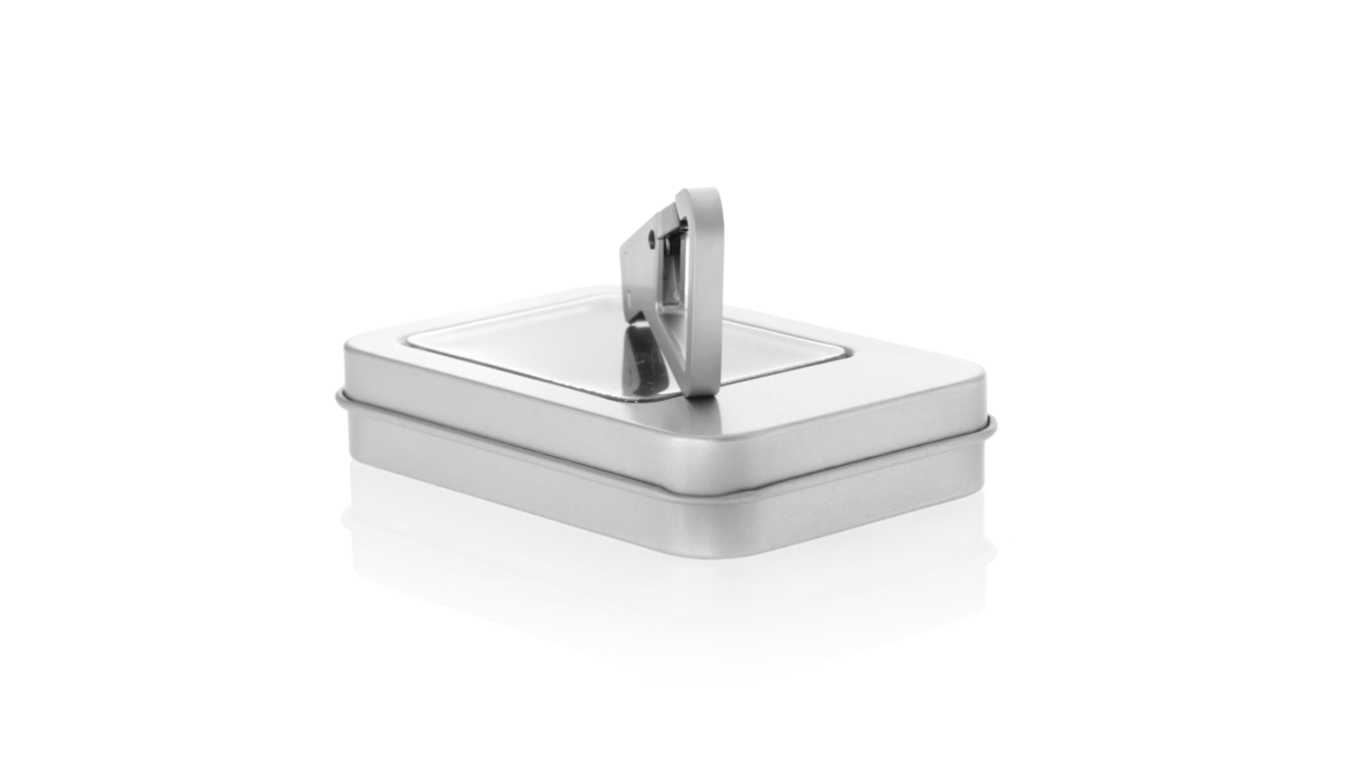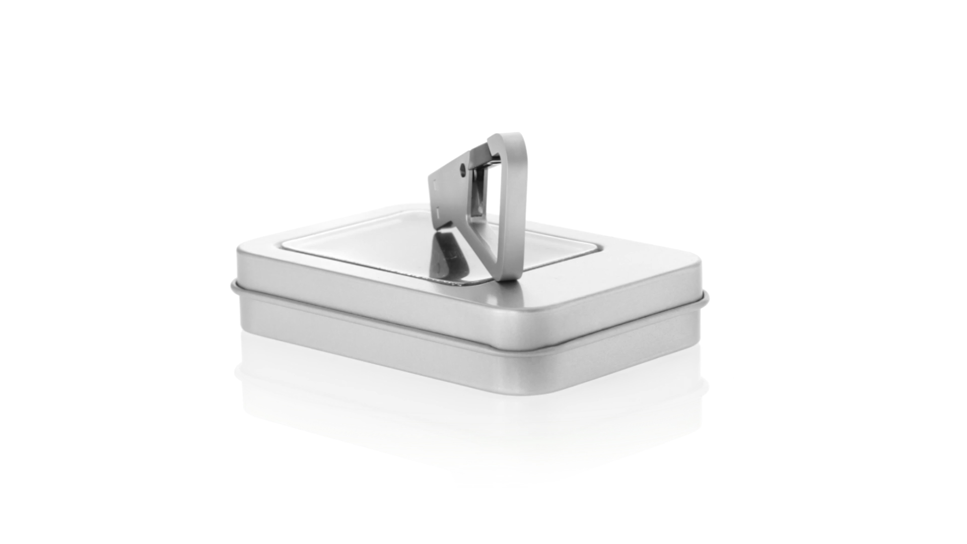 USB-Stick mit 8 GB Speicherkapazität aus Metall. Mit originellem Karabiner-Design mit Verschluss in einer Vielzahl von Farben. Präsentiert in einer individuellen Metallbox mit Fenster und weichem, gestanztem Schaumstoff im Inneren.