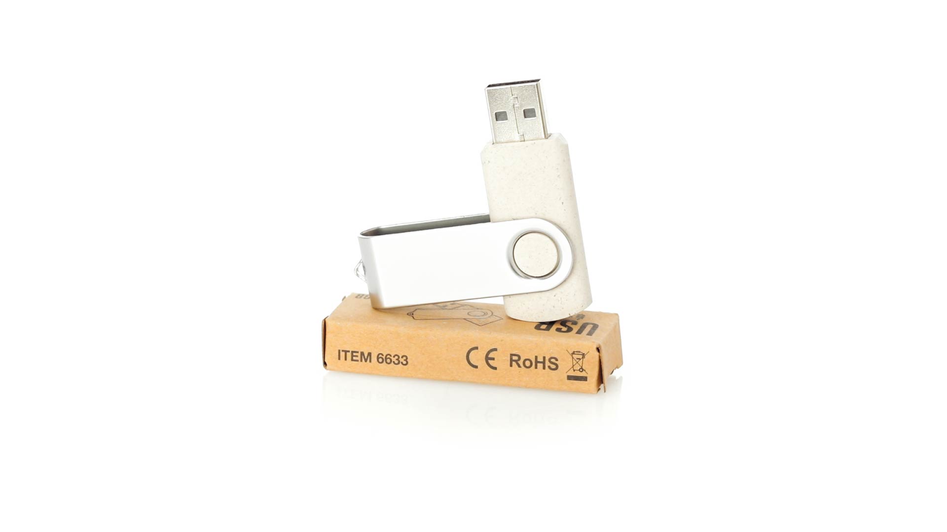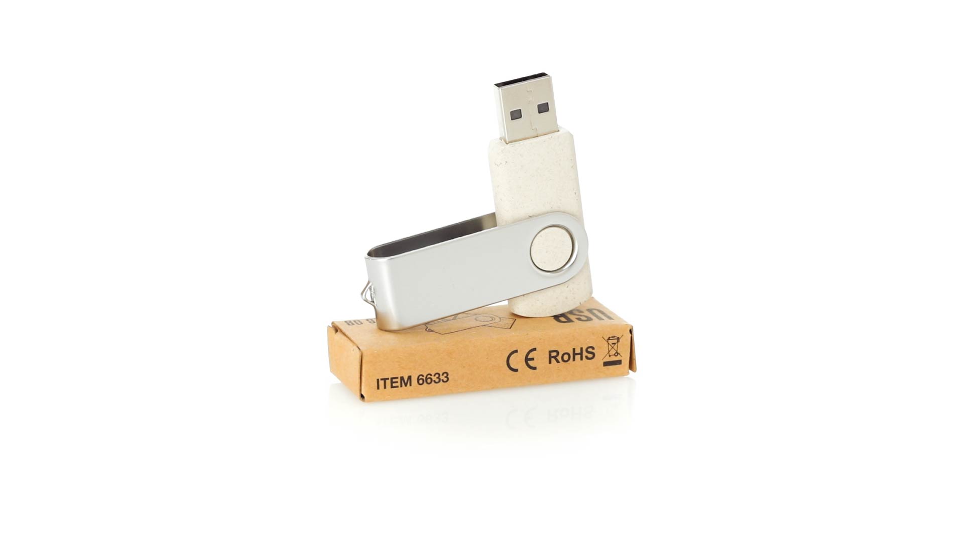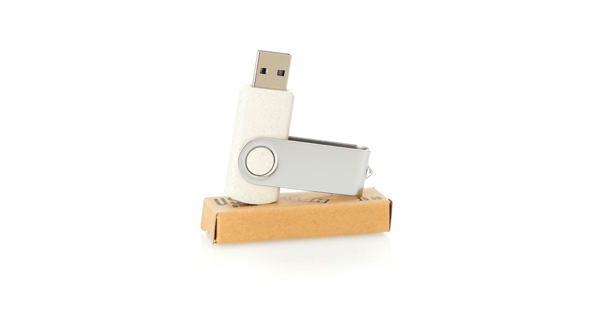 Naturlinie, 16-GB-USB-Flash-Laufwerk mit Körper aus Weizenstroh, um die Verwendung natürlicher Rohstoffe zu fördern und Schadstoffemissionen zu reduzieren. Drehmechanismus und Metallclip. Präsentiert in einer individuellen, umweltfreundlichen Design-Box.