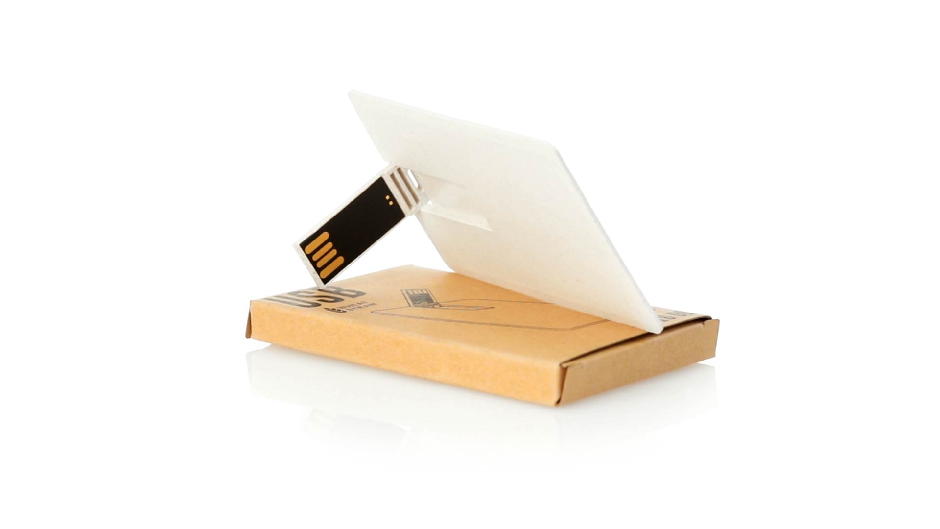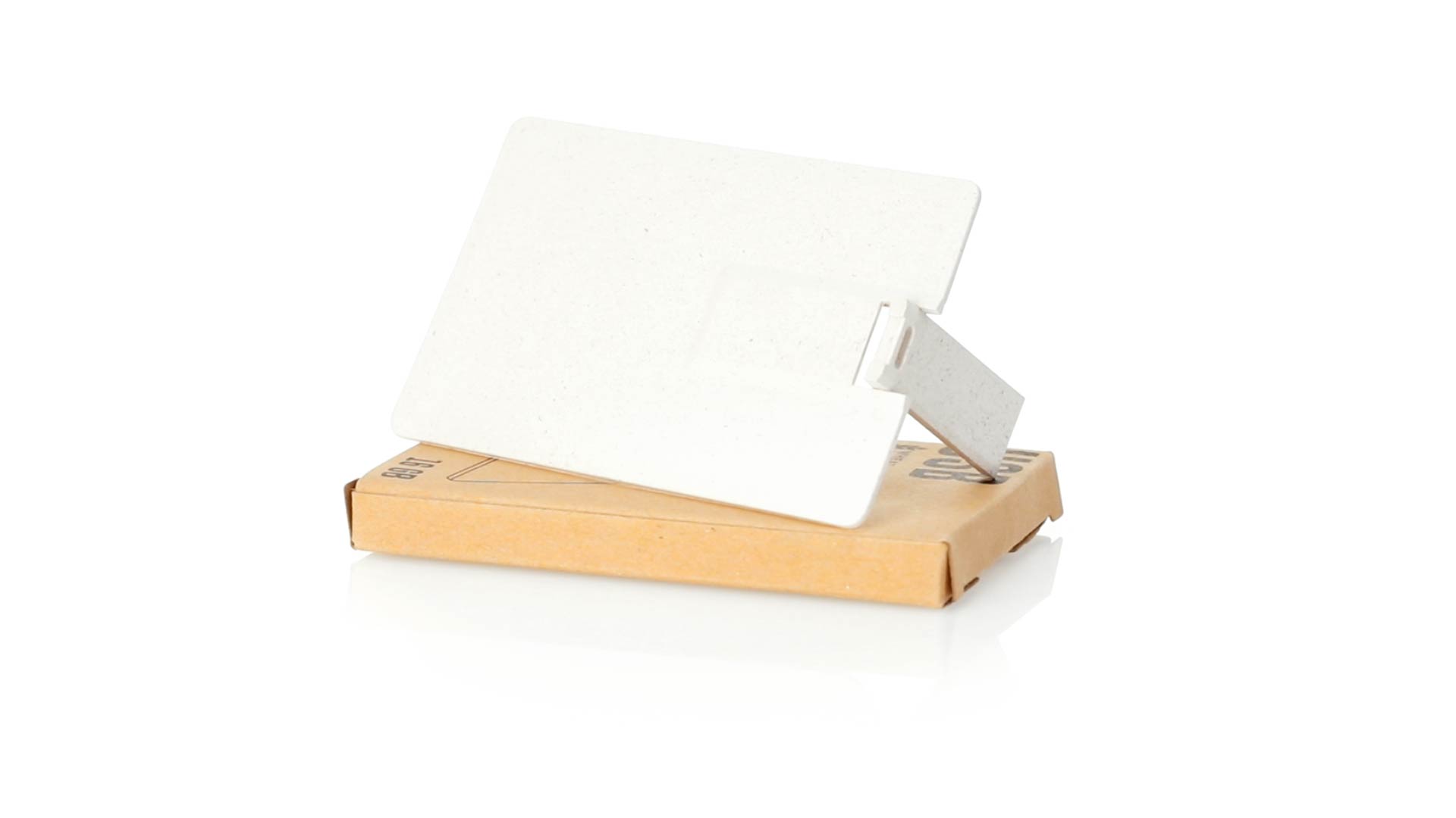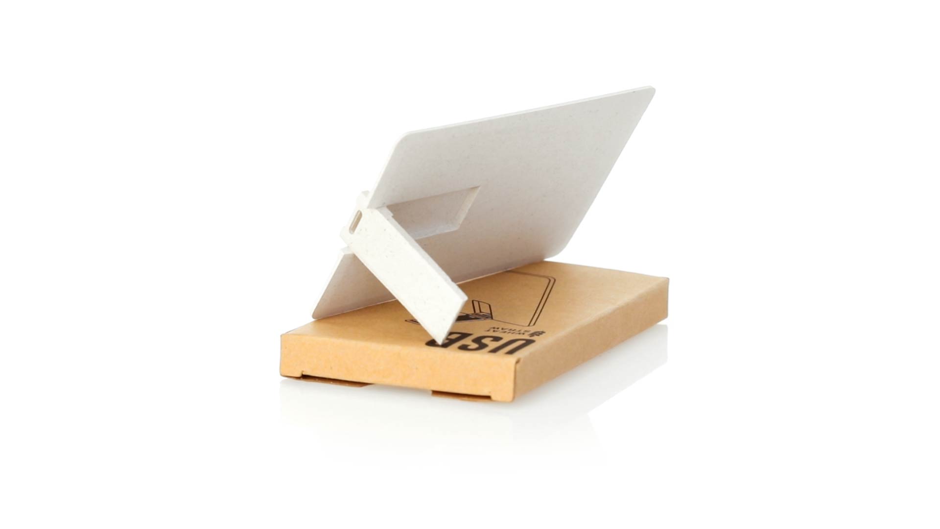 16-GB-USB-Karten-Flash-Laufwerk in Naturausführung. Extraflaches Design, aus Weizenstroh, um die Verwendung natürlicher Rohstoffe zu fördern und Schadstoffemissionen zu reduzieren. Zusammenklappbar und in einer attraktiven, individuellen Öko-Design-Box präsentiert.