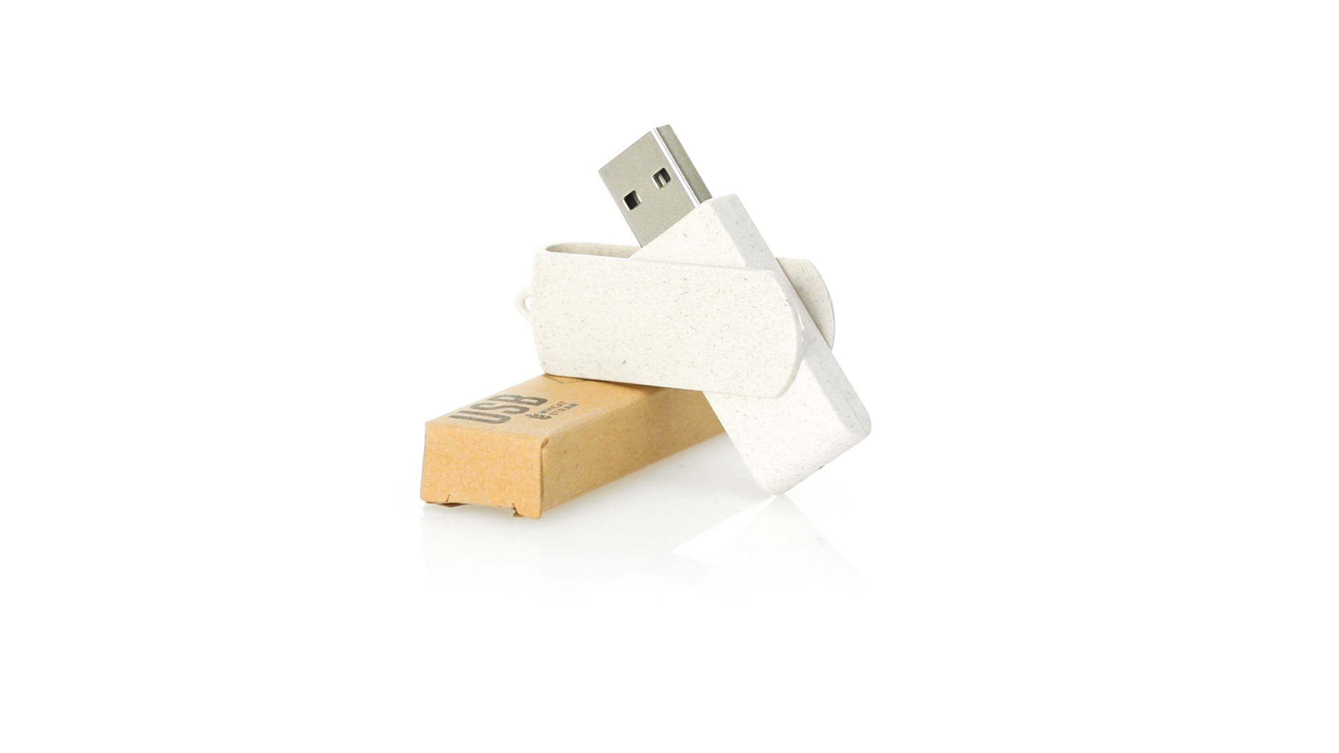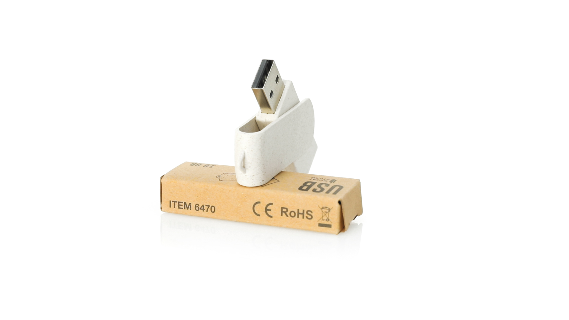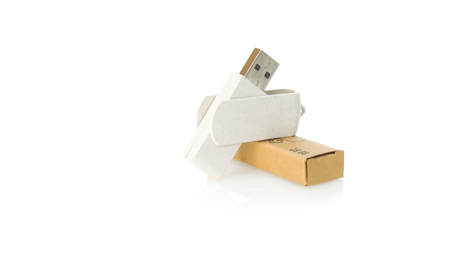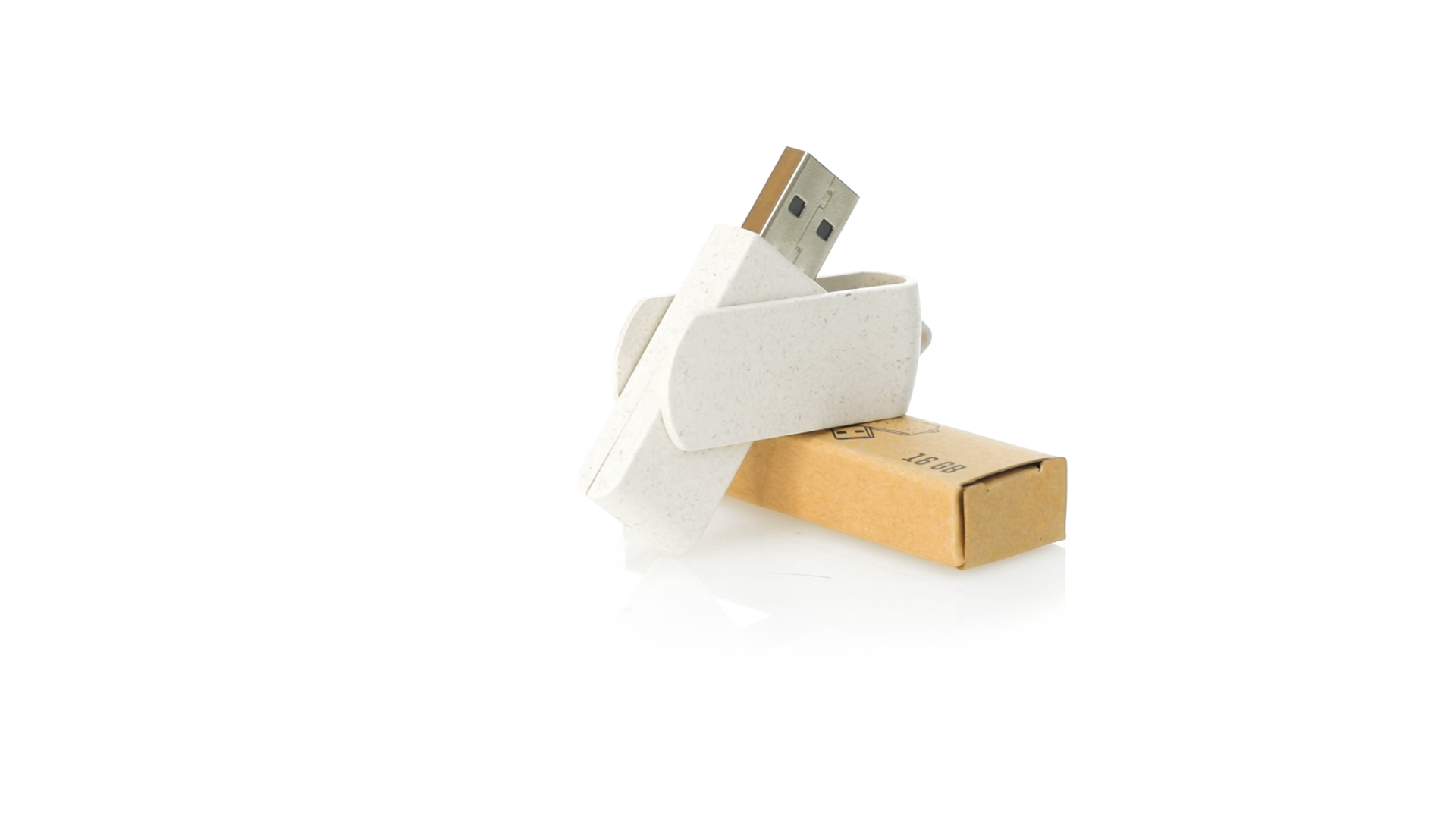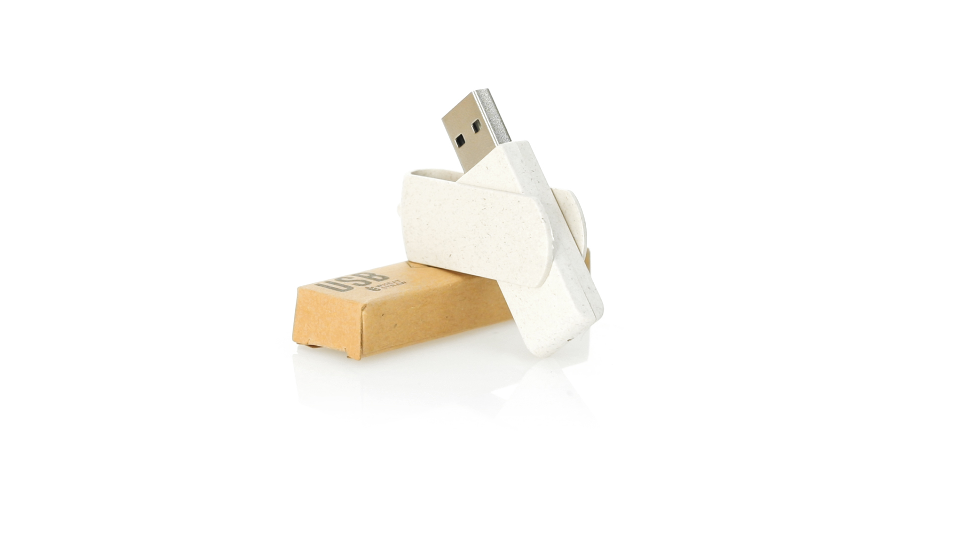 Naturlinie, 16-GB-USB-Stick mit Gehäuse und Clip aus Weizenstroh, um die Verwendung natürlicher Rohstoffe zu fördern und Schadstoffemissionen zu reduzieren. Drehmechanismus und präsentiert in einer individuellen, umweltfreundlichen Design-Box.