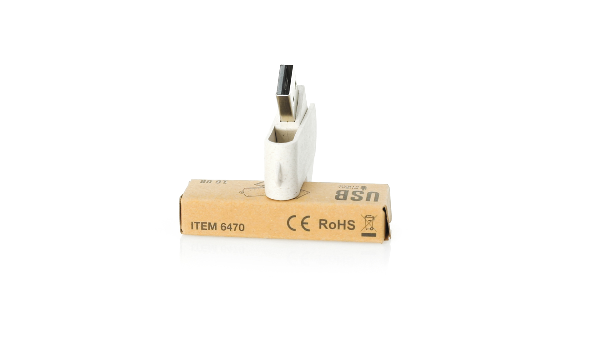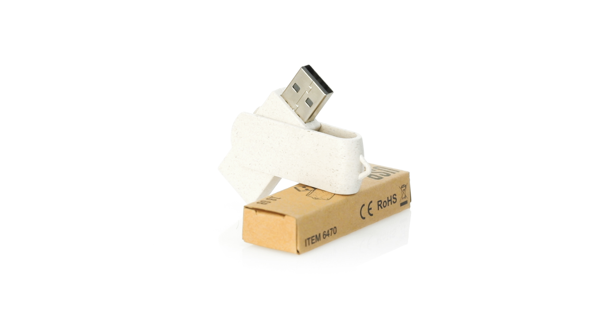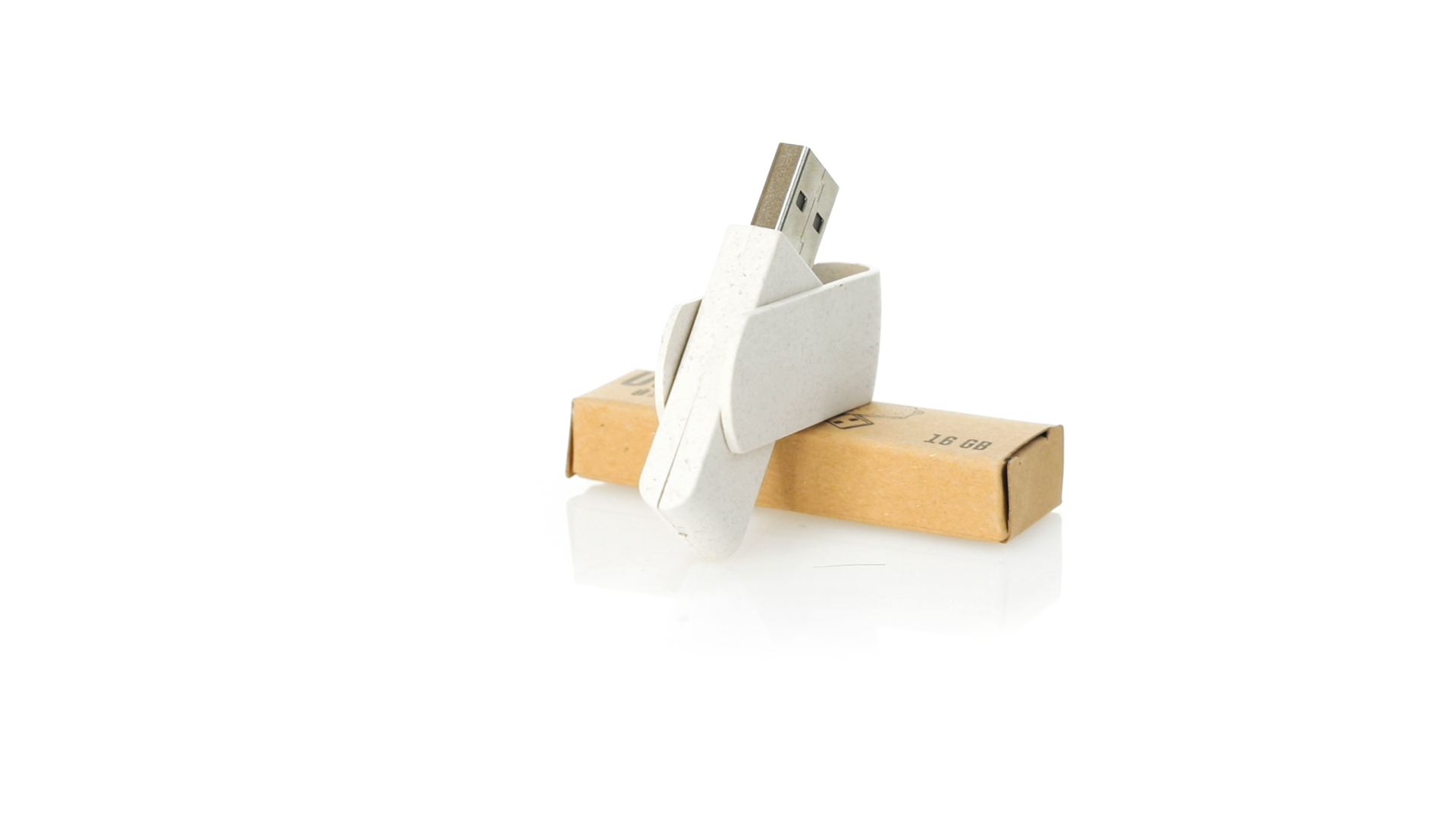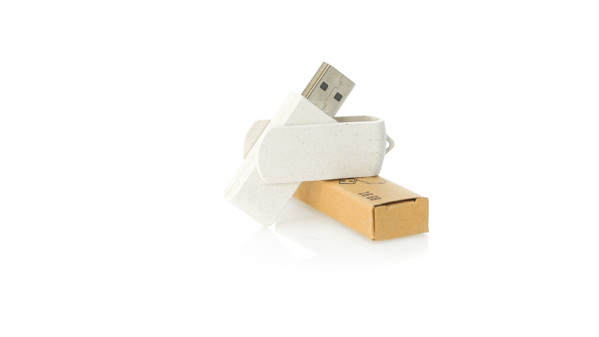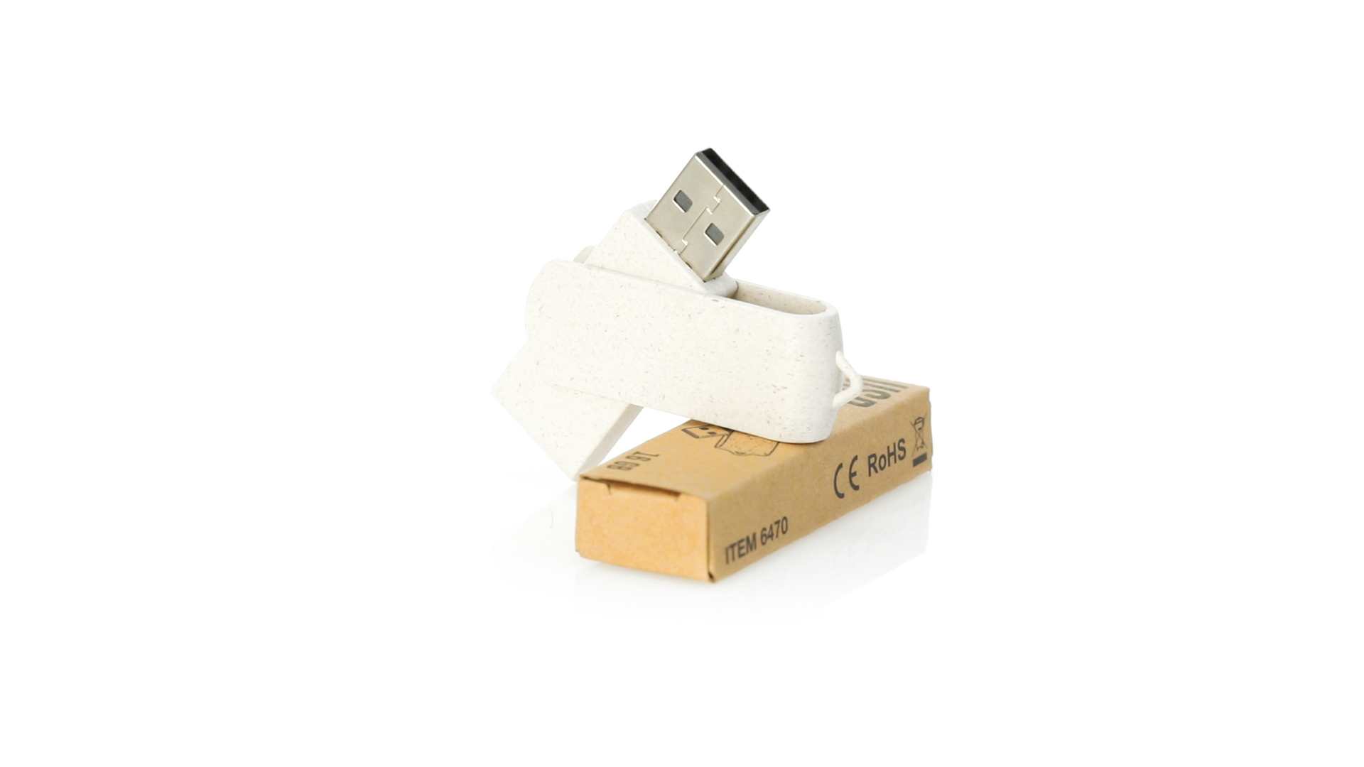 Naturlinie, 16-GB-USB-Stick mit Gehäuse und Clip aus Weizenstroh, um die Verwendung natürlicher Rohstoffe zu fördern und Schadstoffemissionen zu reduzieren. Drehmechanismus und präsentiert in einer individuellen, umweltfreundlichen Design-Box.