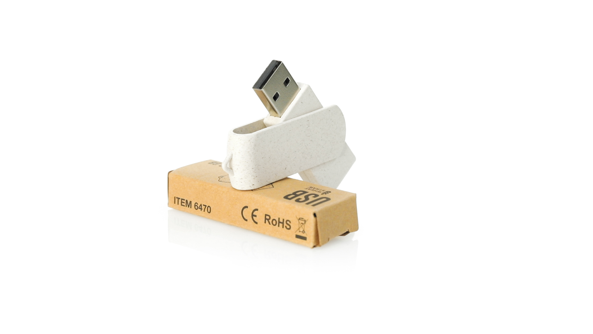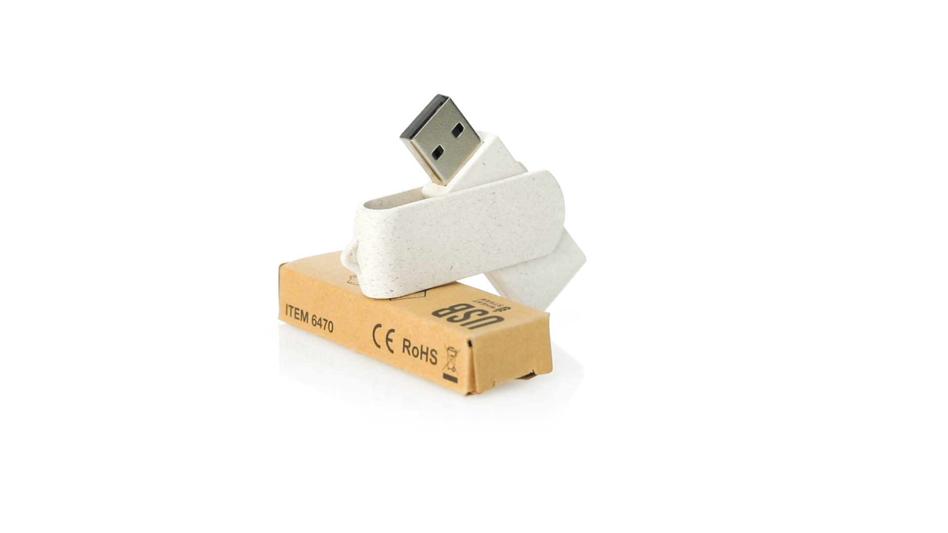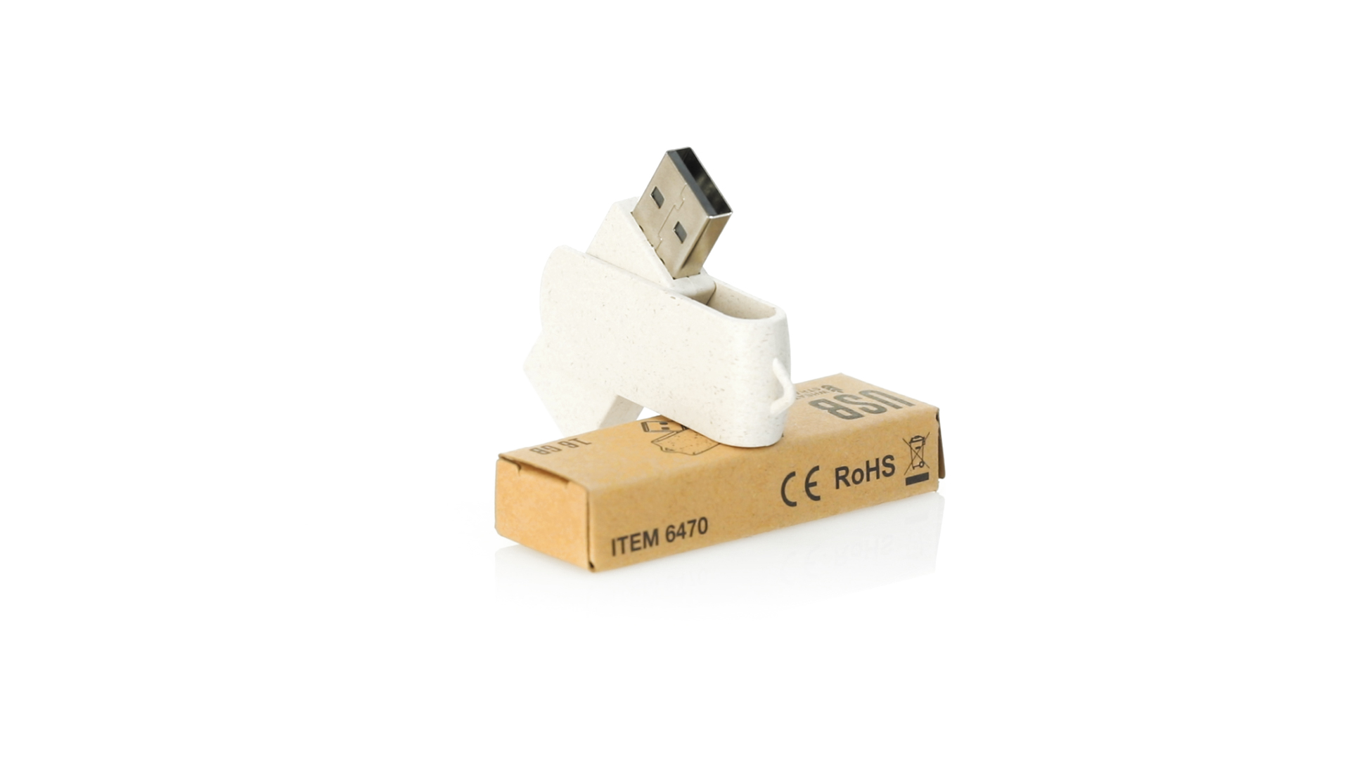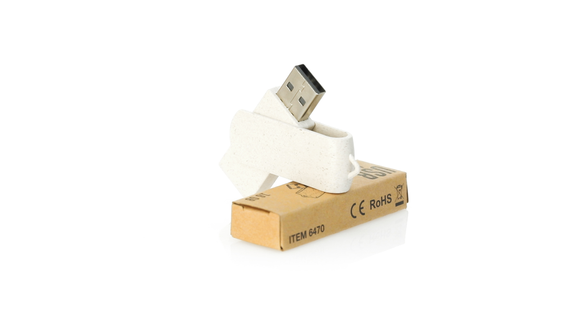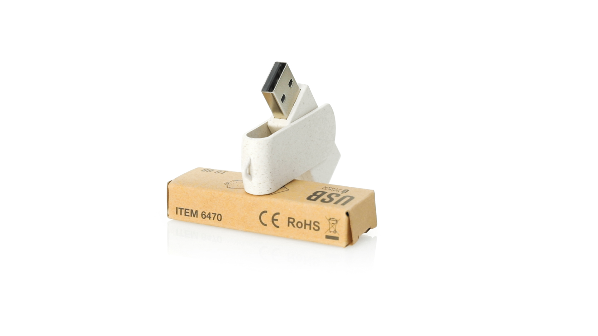Naturlinie, 16-GB-USB-Stick mit Gehäuse und Clip aus Weizenstroh, um die Verwendung natürlicher Rohstoffe zu fördern und Schadstoffemissionen zu reduzieren. Drehmechanismus und präsentiert in einer individuellen, umweltfreundlichen Design-Box.