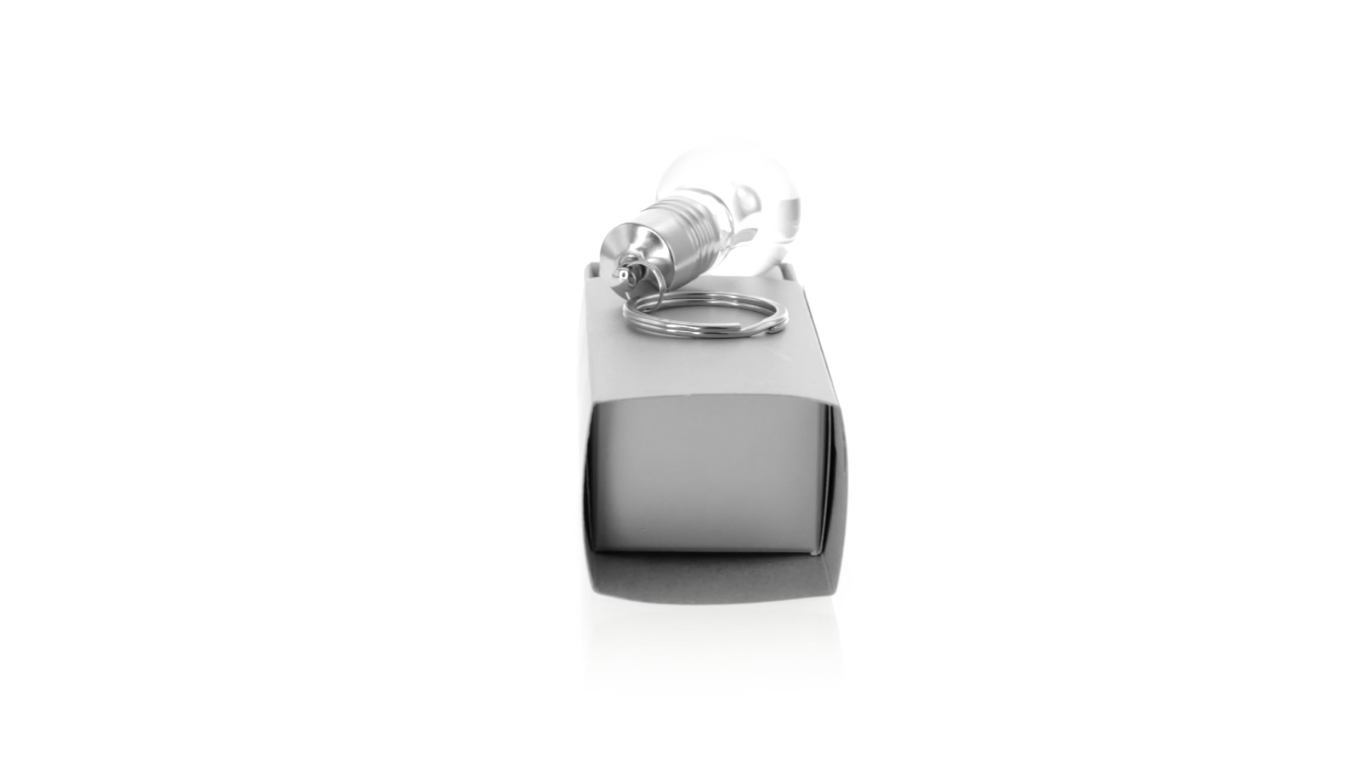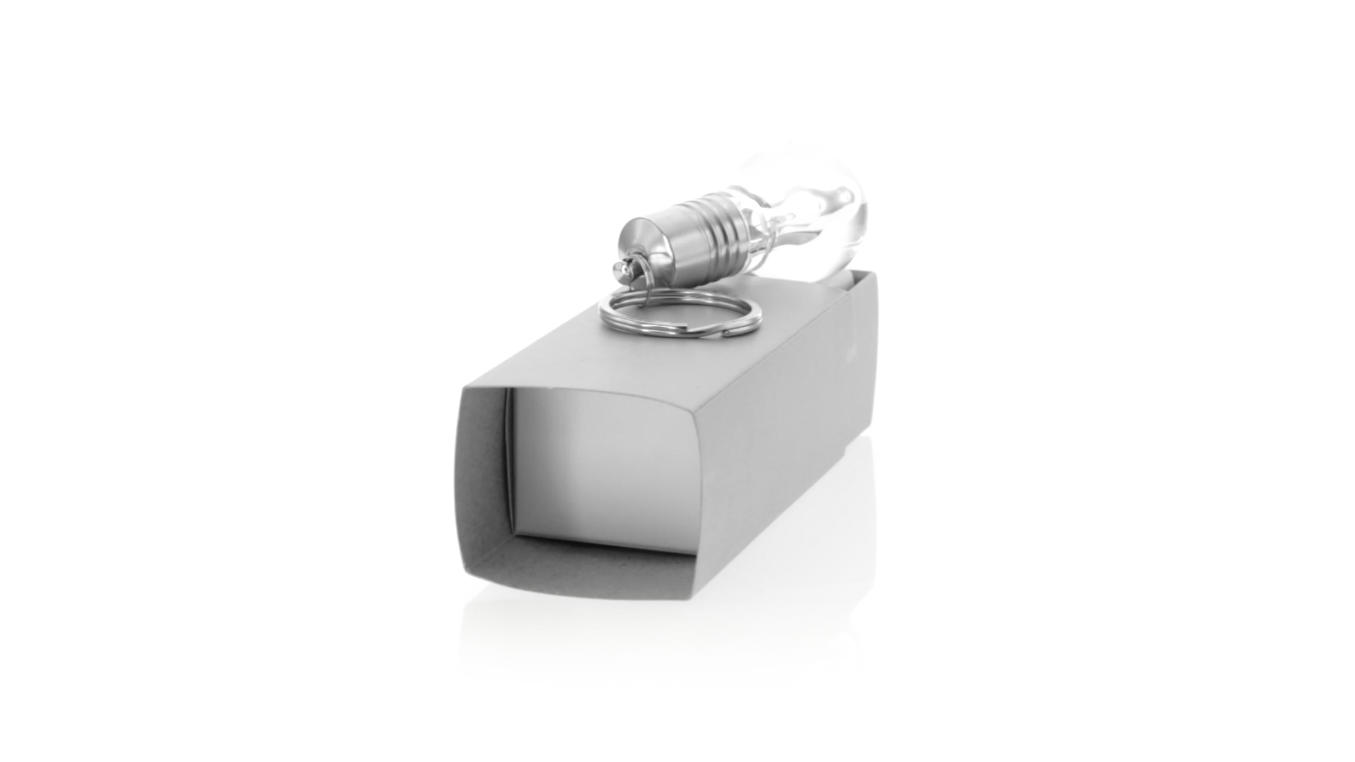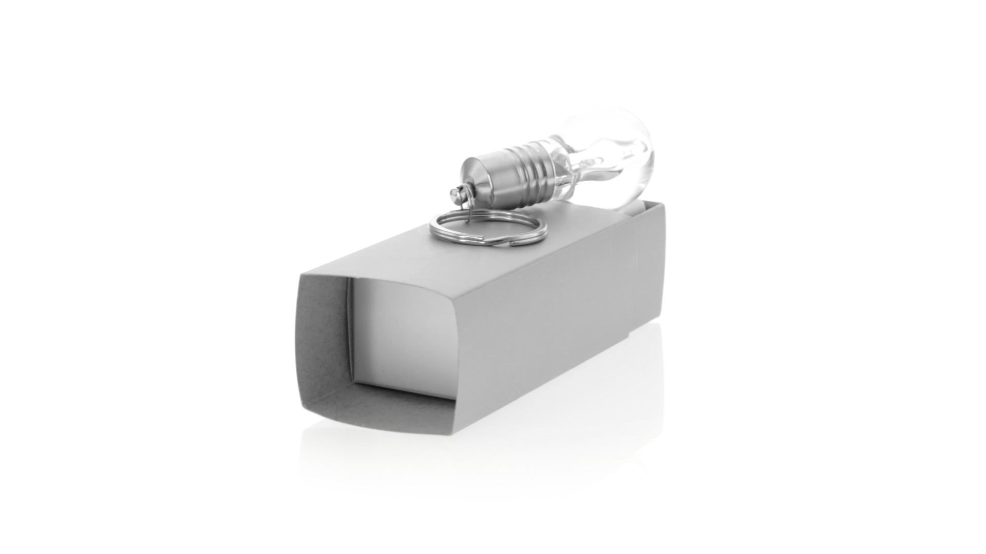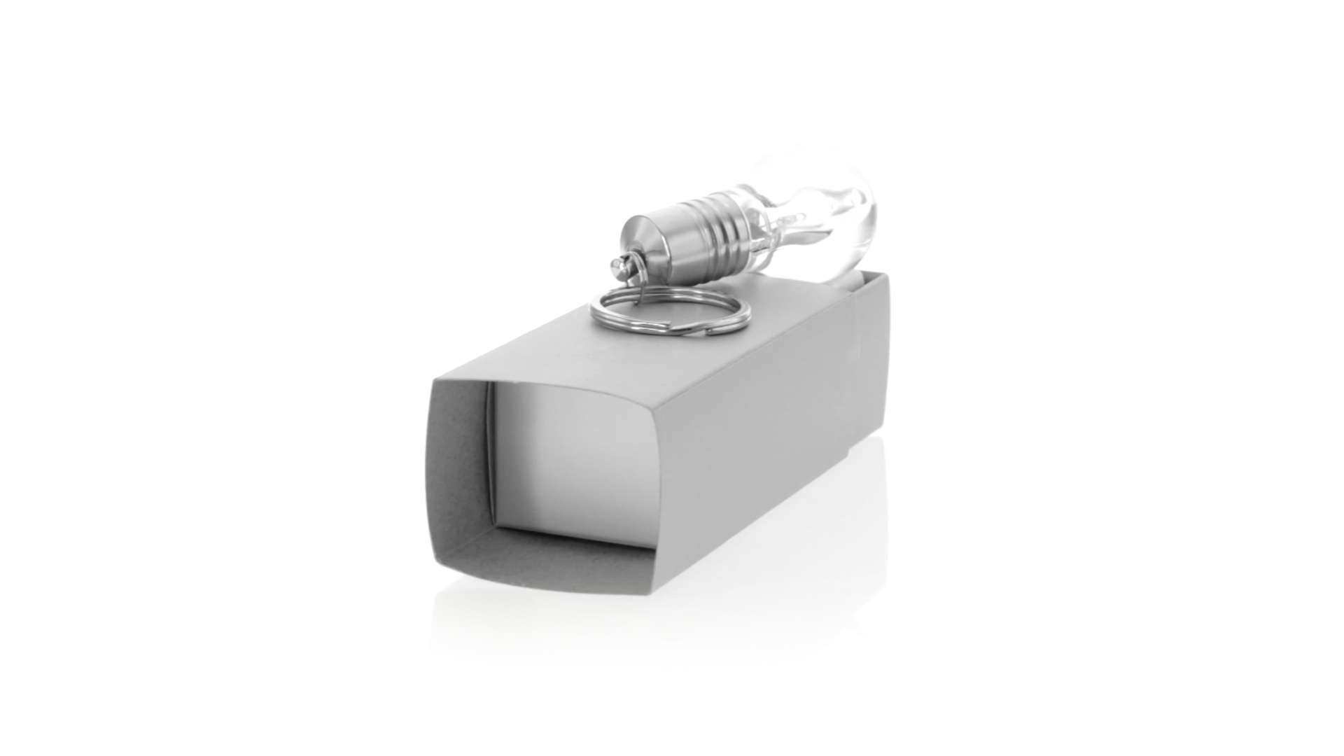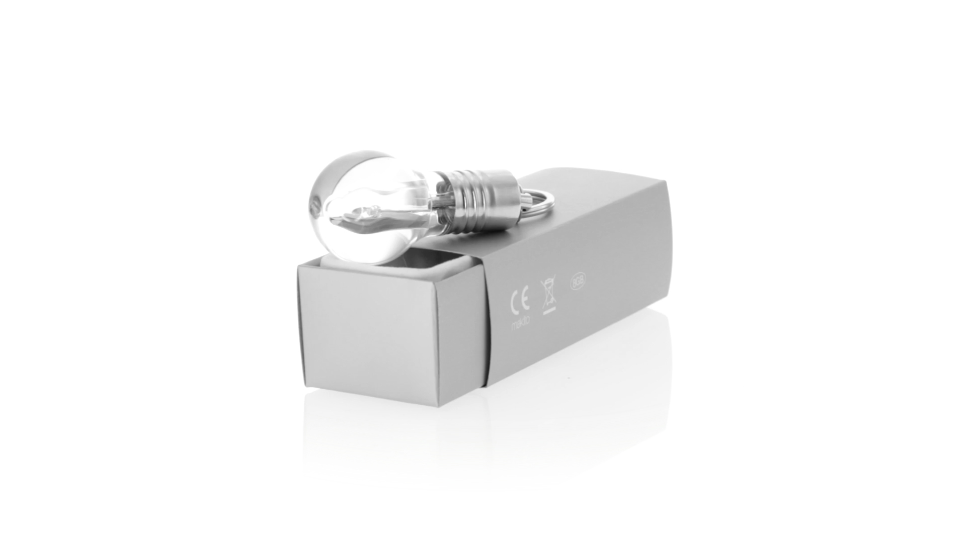 USB-Stick mit 8 GB Speicherkapazität und origineller Glühbirne, die bei Verbindung mit dem USB-Anschluss in Weiss leuchtet. Mit Schlüsselring. Präsentiert in einer individuellen Schachtel.
