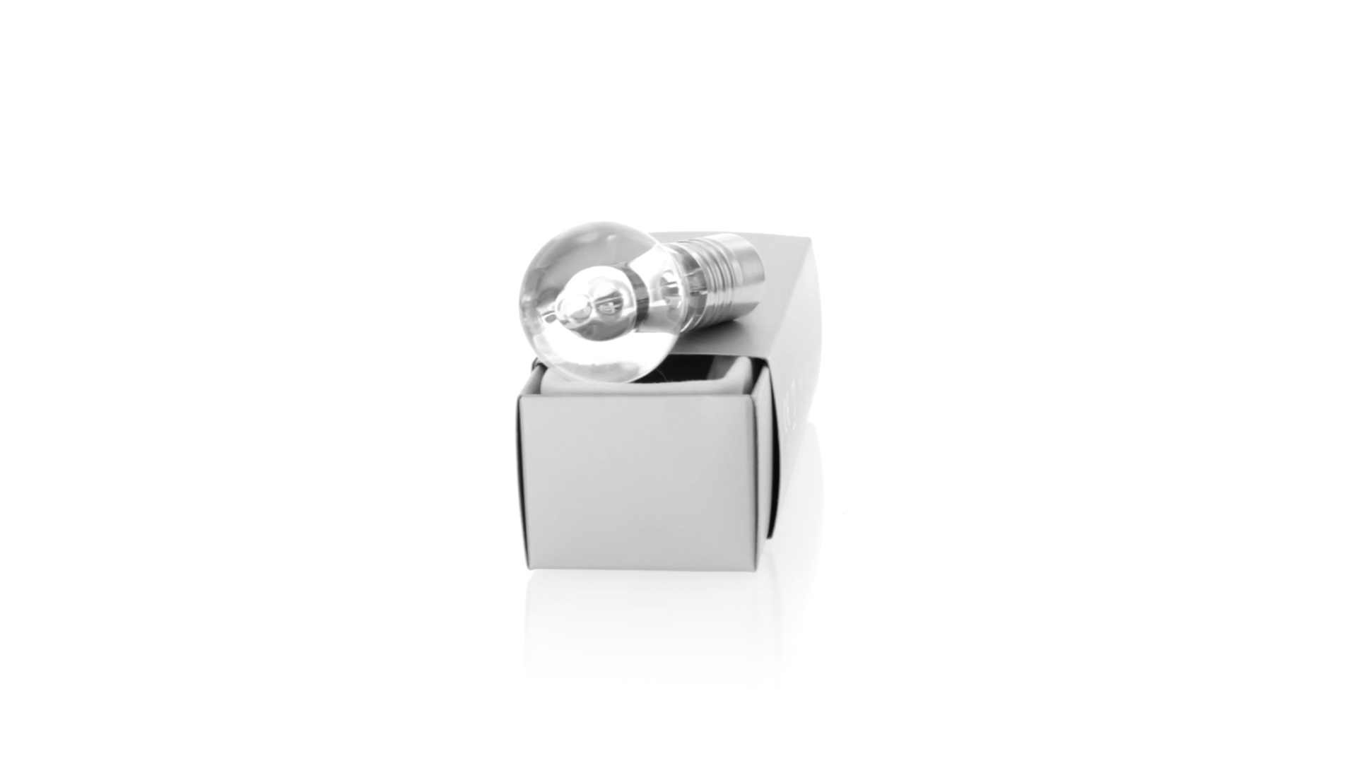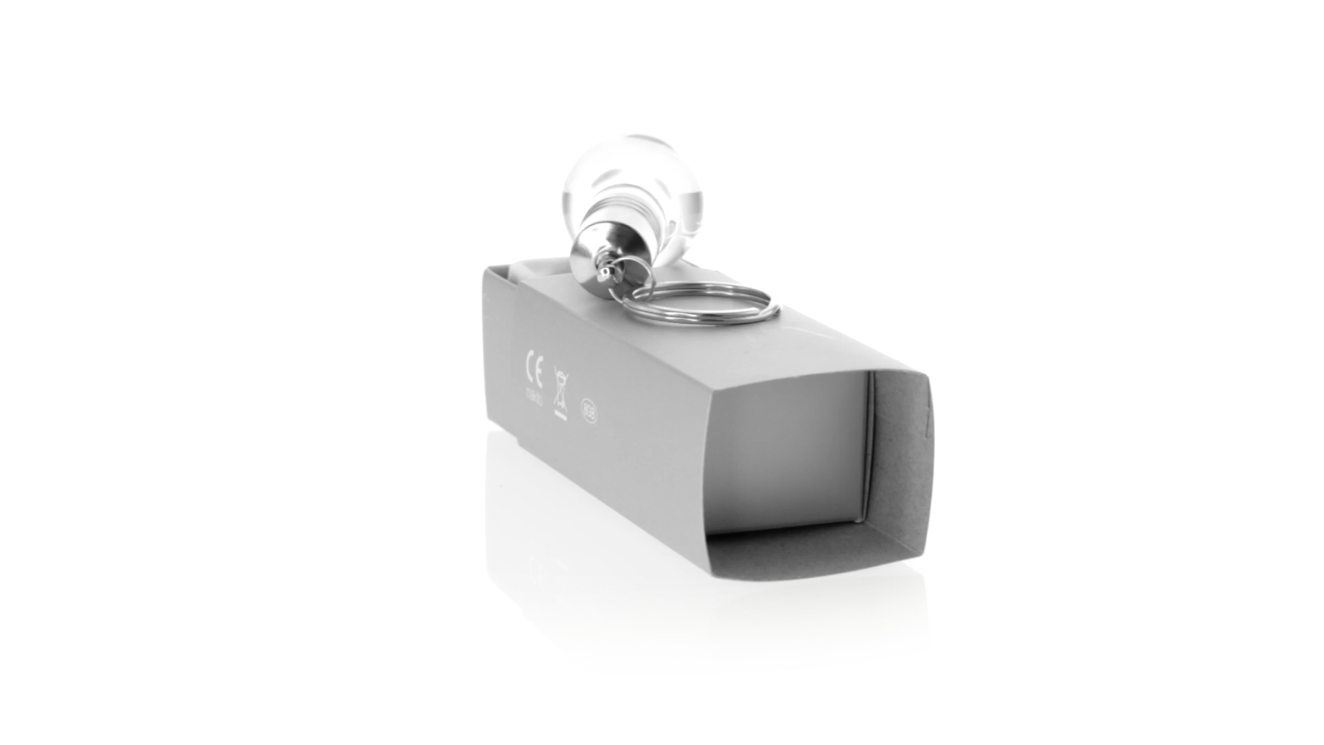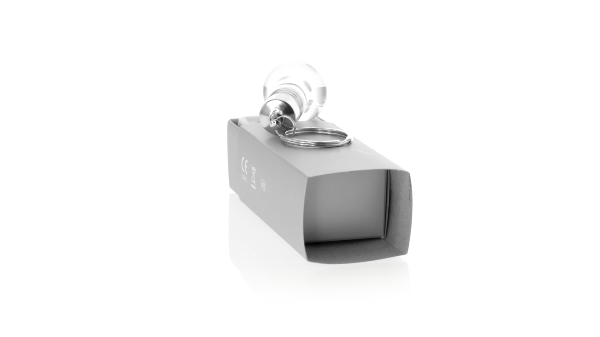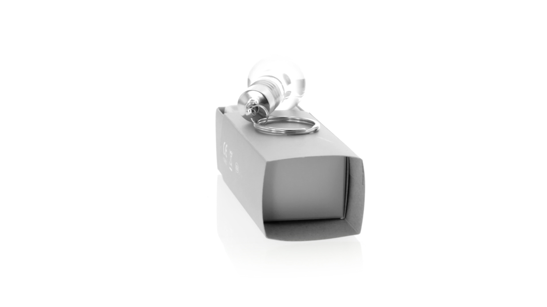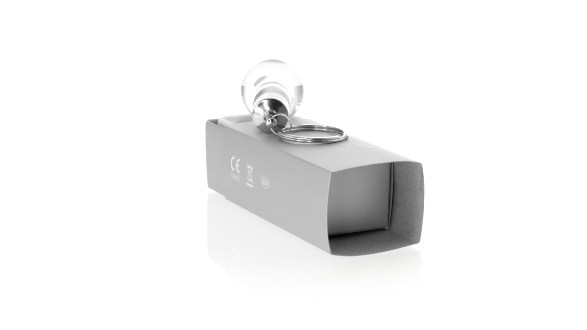 USB-Stick mit 8 GB Speicherkapazität und origineller Glühbirne, die bei Verbindung mit dem USB-Anschluss in Weiss leuchtet. Mit Schlüsselring. Präsentiert in einer individuellen Schachtel.