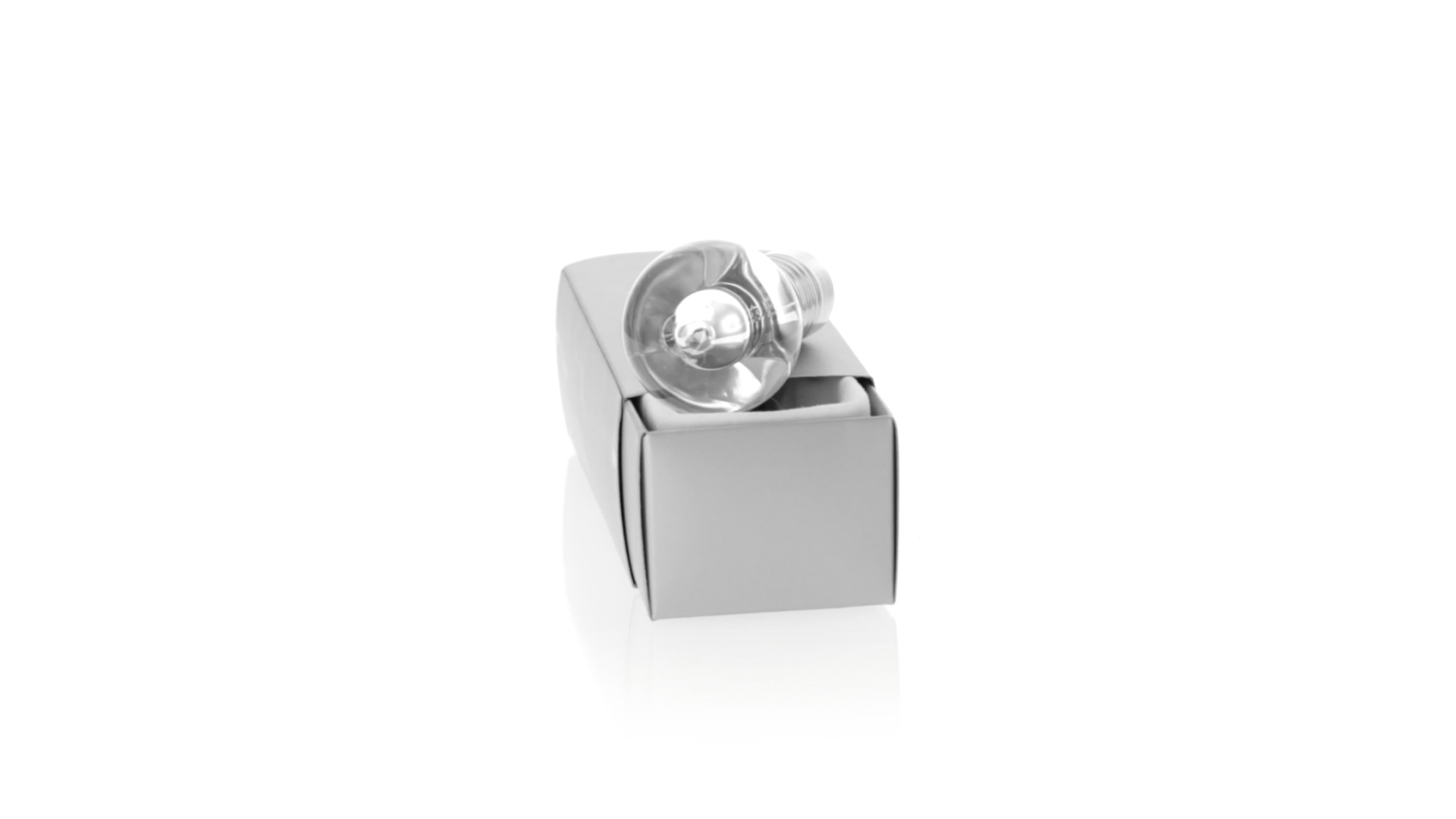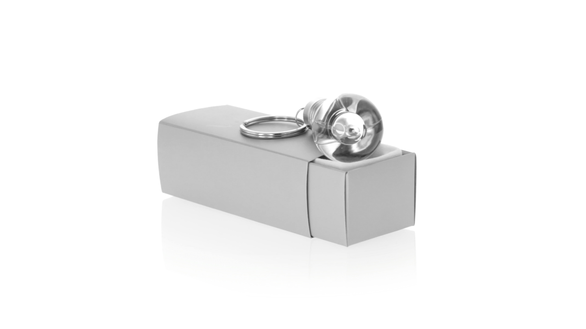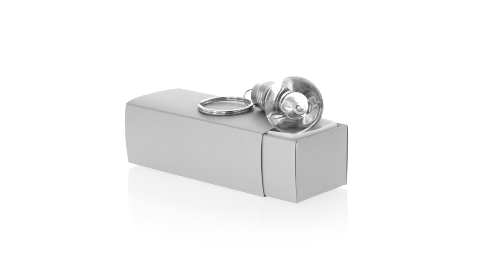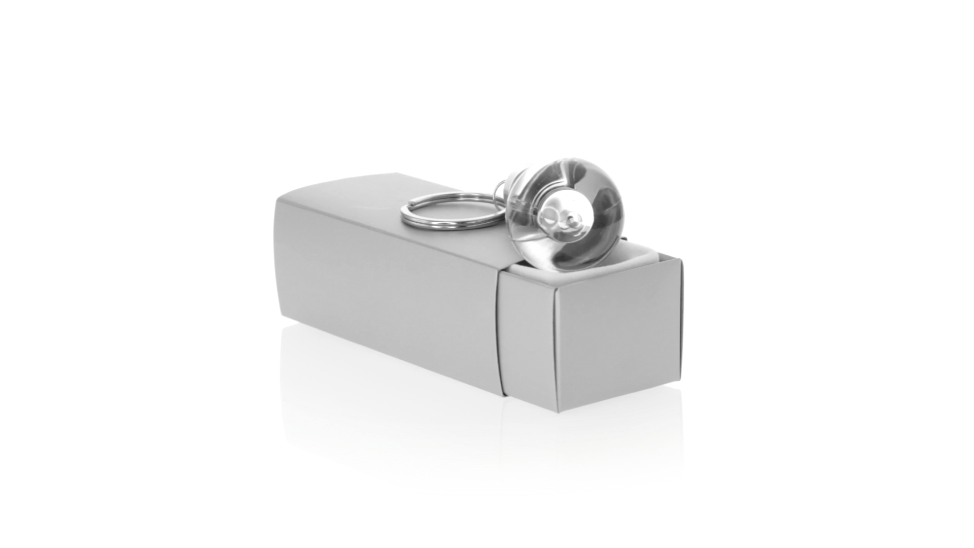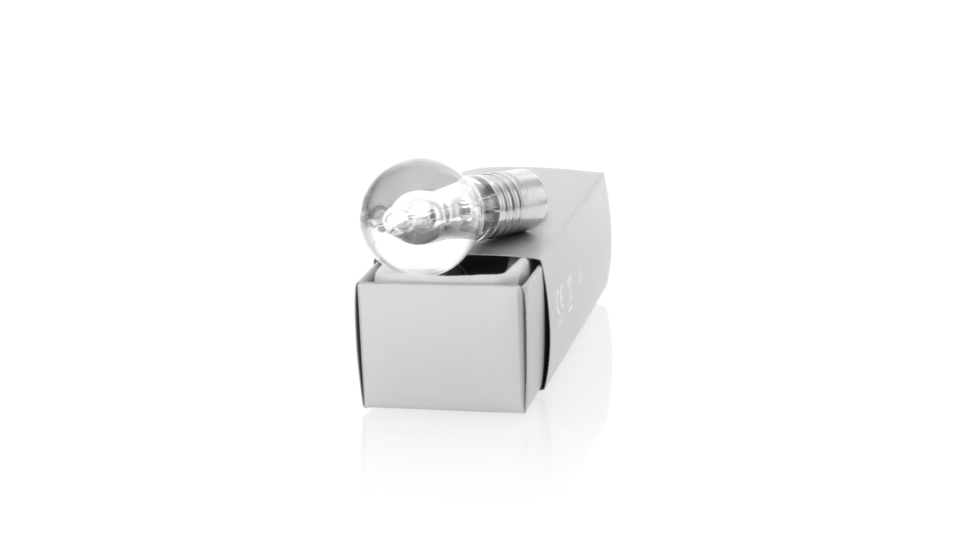 USB-Stick mit 8 GB Speicherkapazität und origineller Glühbirne, die bei Verbindung mit dem USB-Anschluss in Weiss leuchtet. Mit Schlüsselring. Präsentiert in einer individuellen Schachtel.