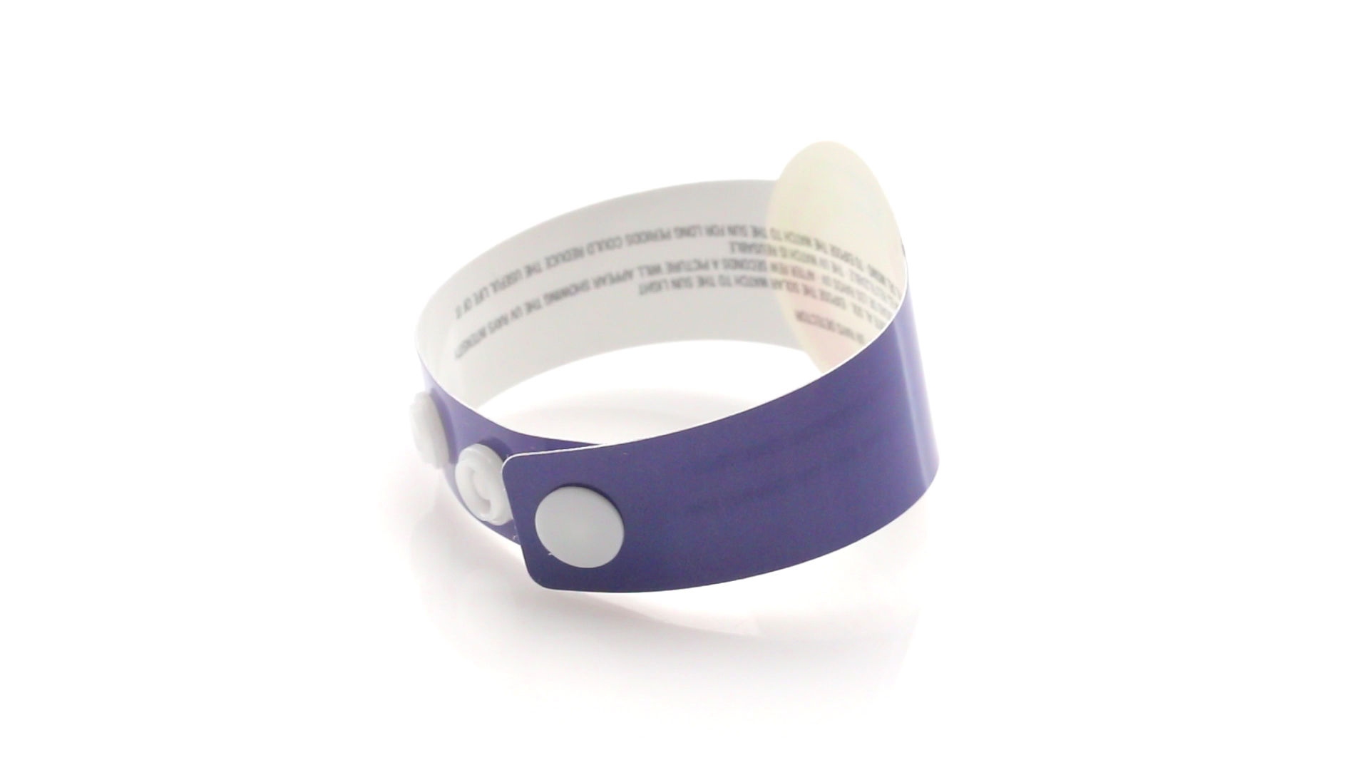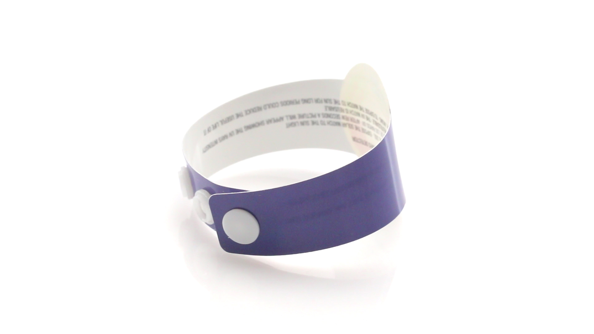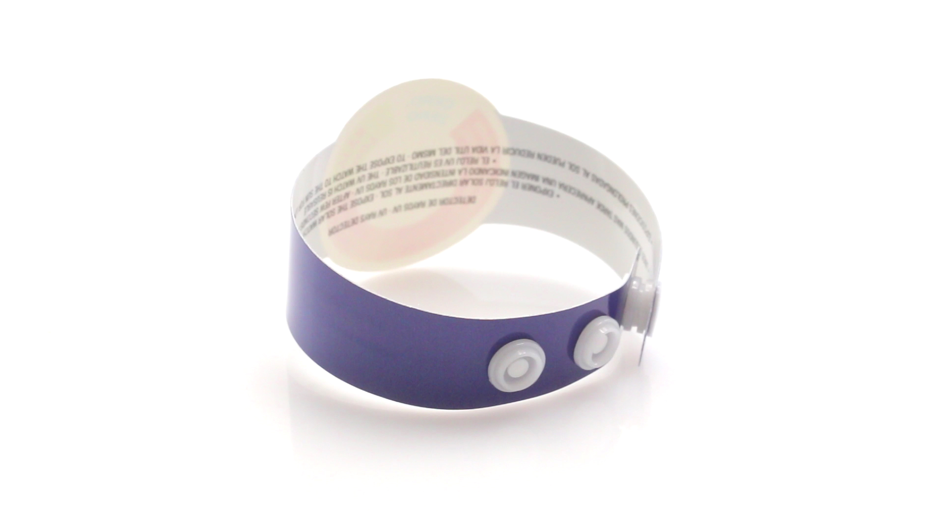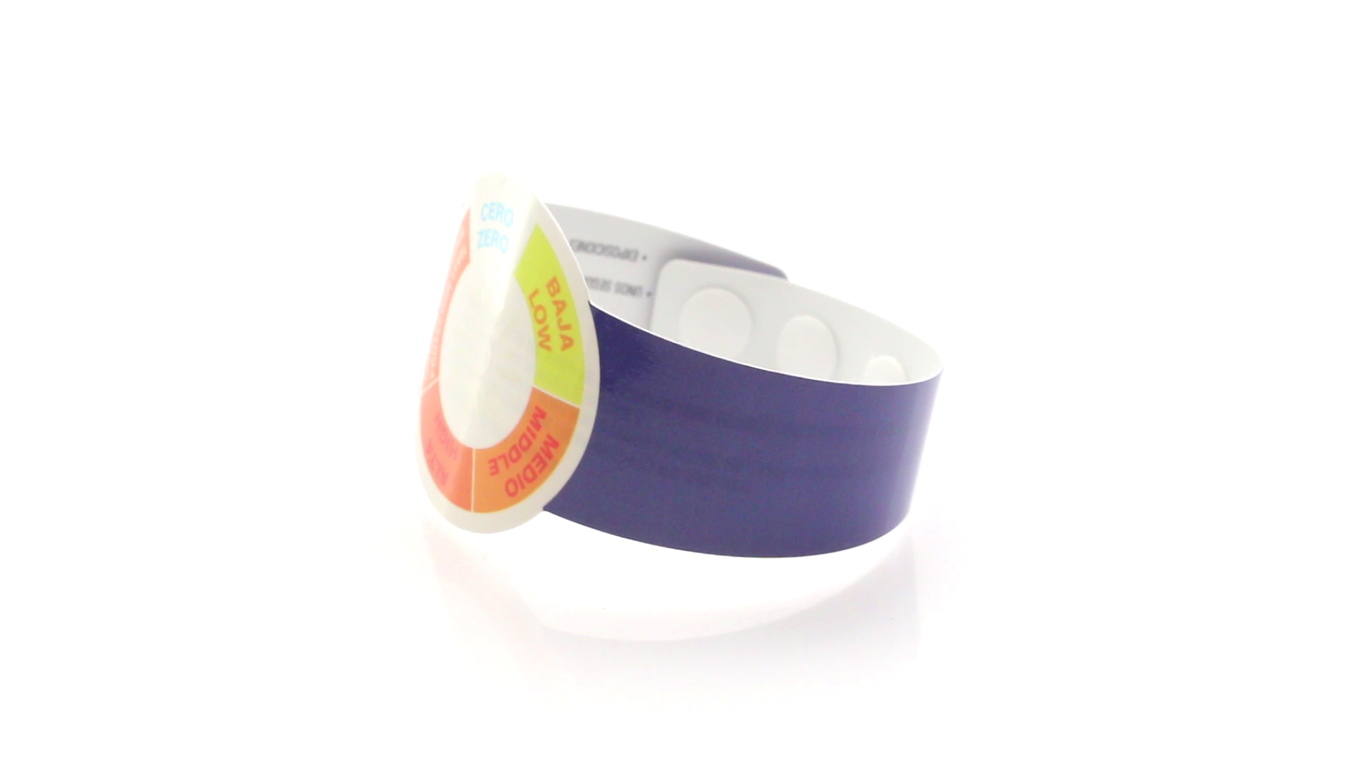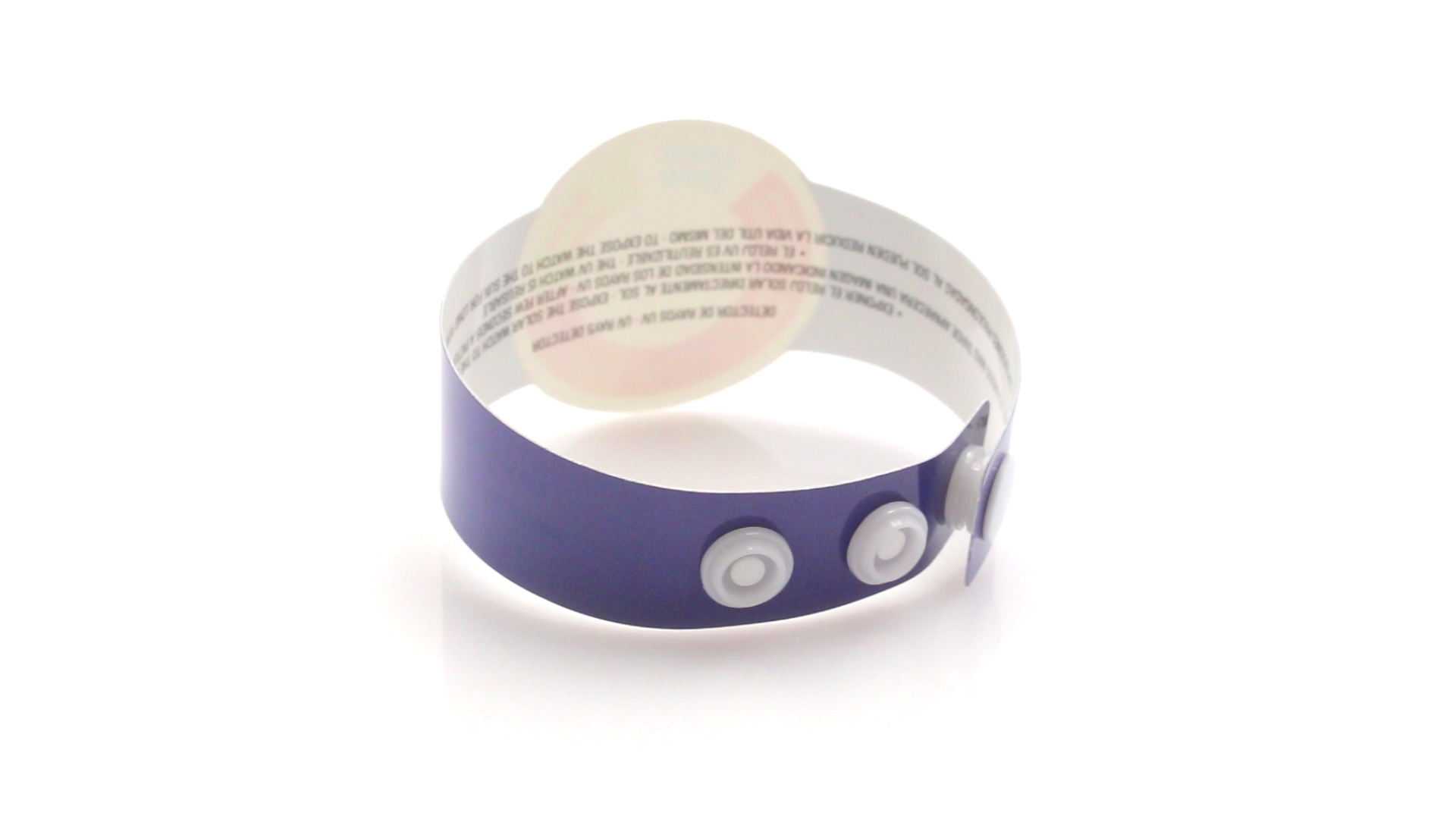 Verstellbares Armband mit UV-Strahlungsmesser in verschiedenen kräftigen Farben. Mit Druckknopfverschluss.