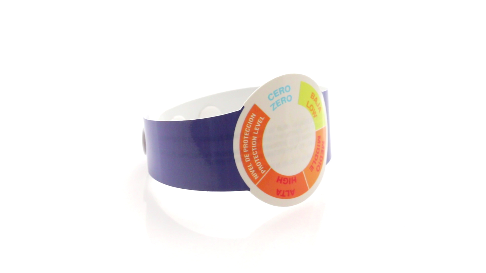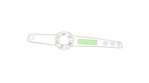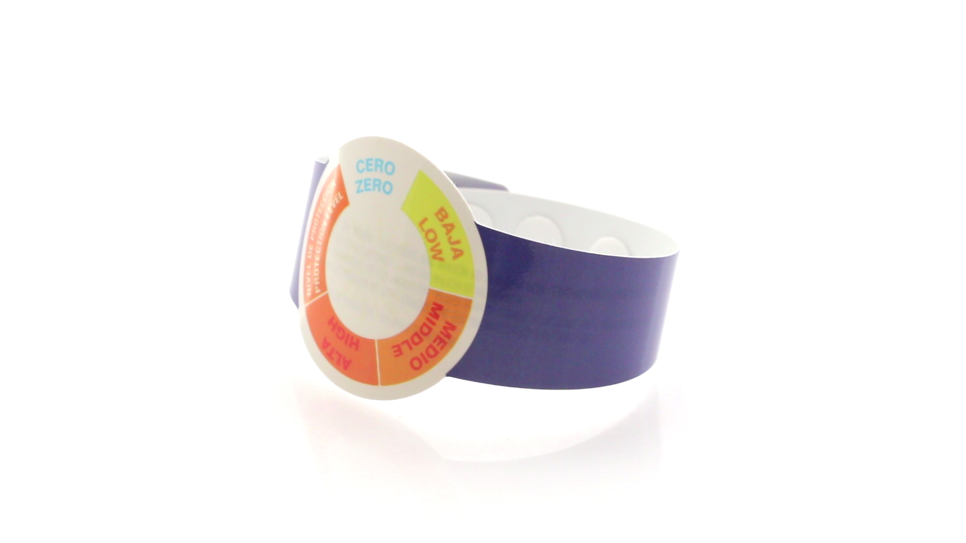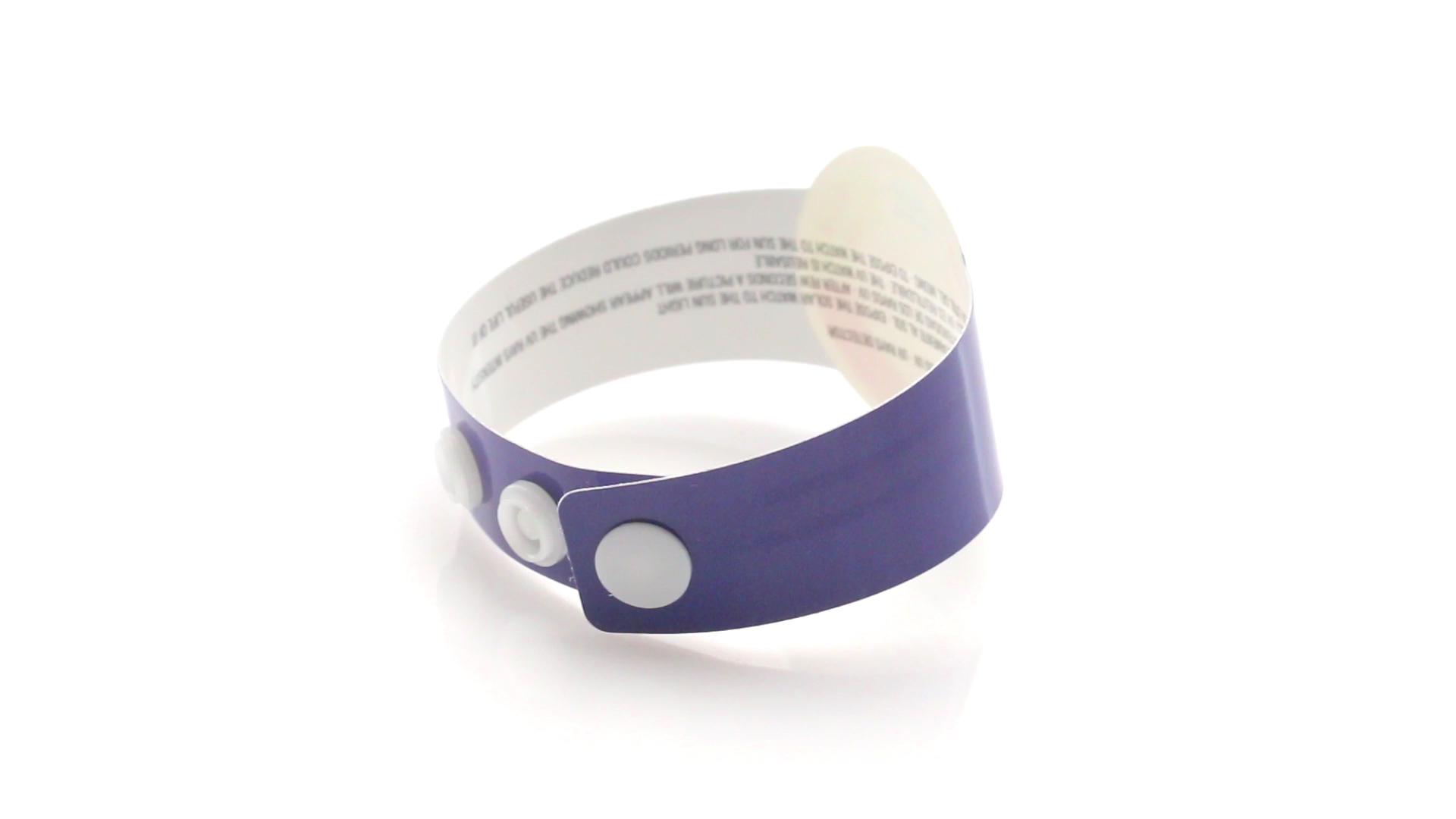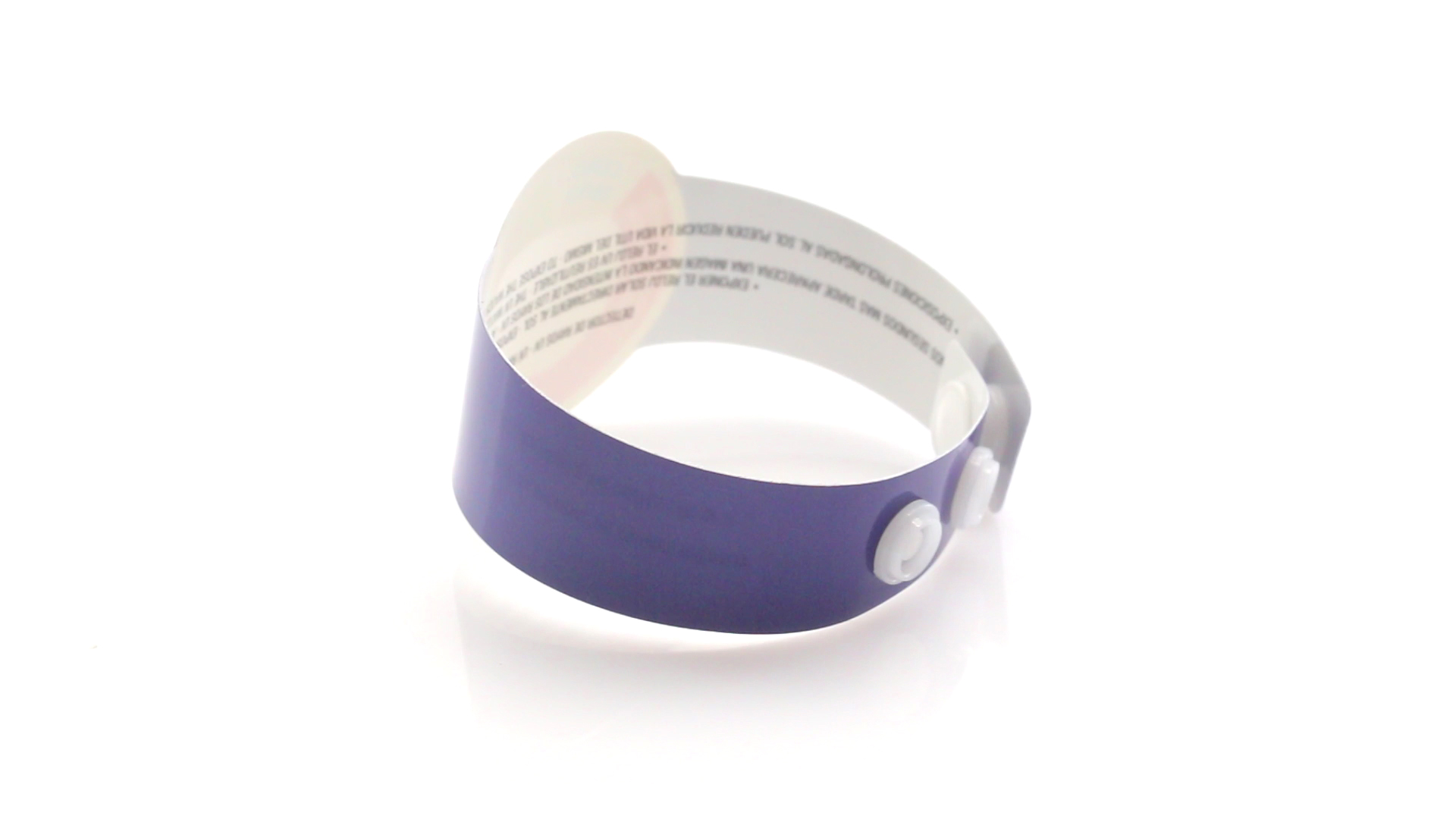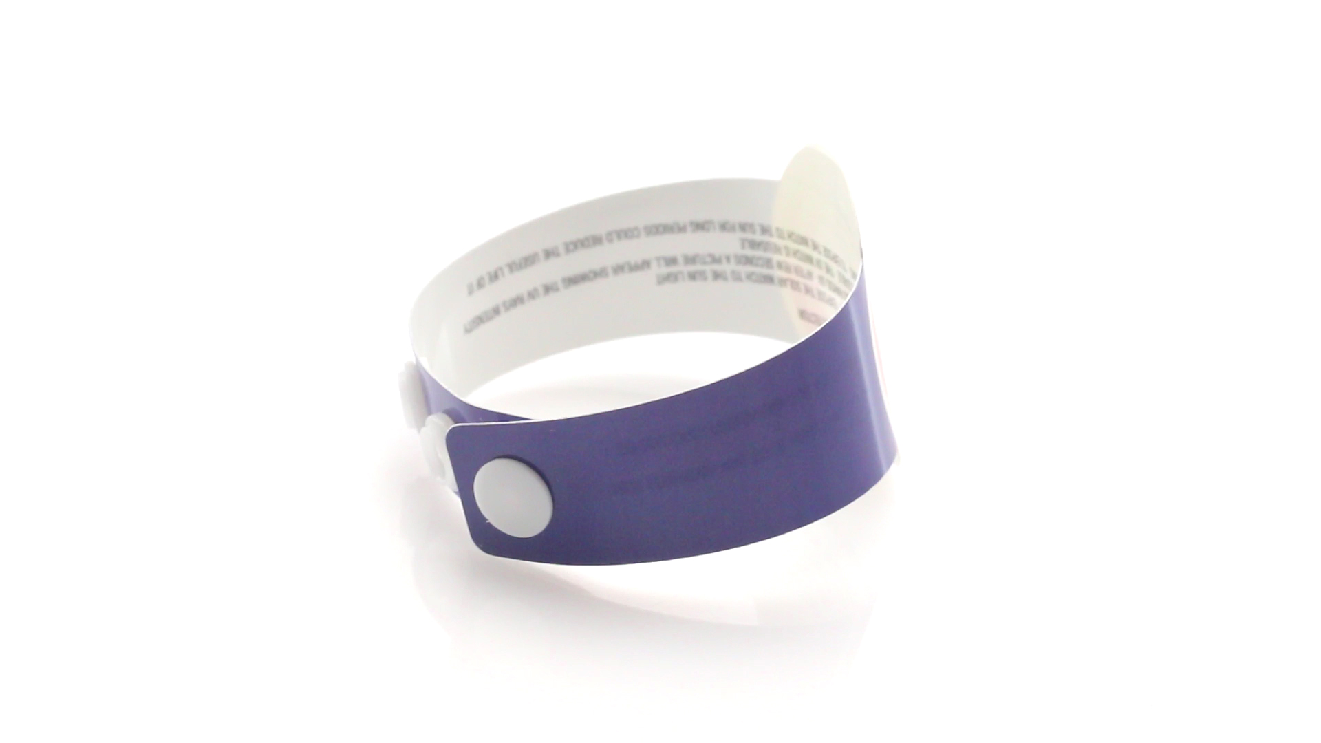 Verstellbares Armband mit UV-Strahlungsmesser in verschiedenen kräftigen Farben. Mit Druckknopfverschluss.