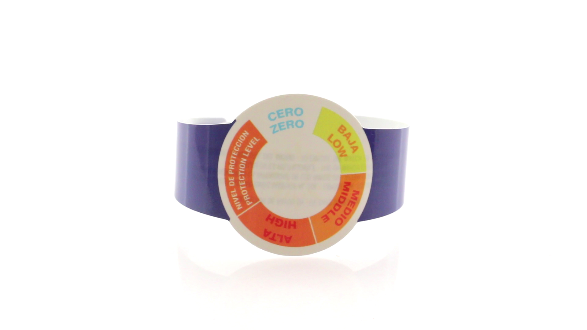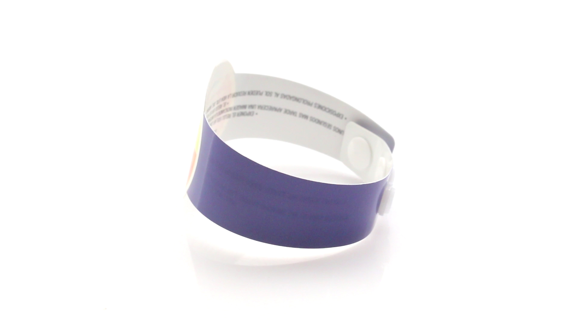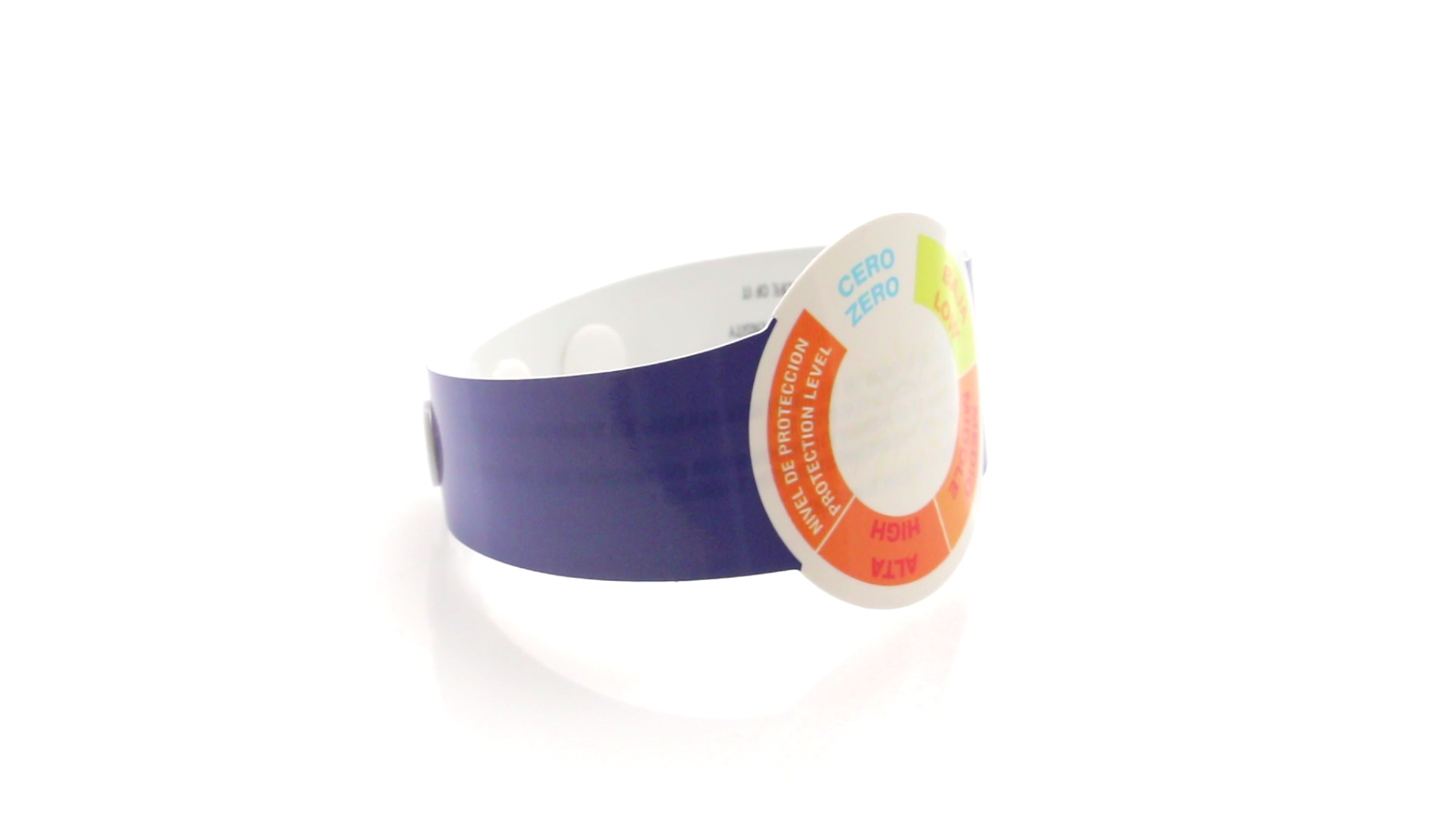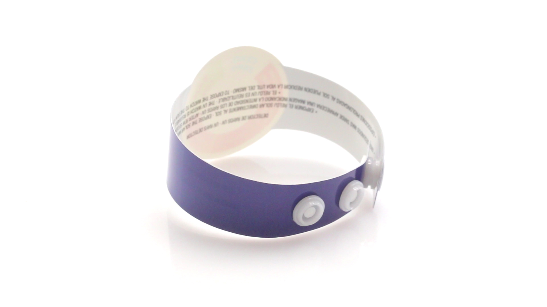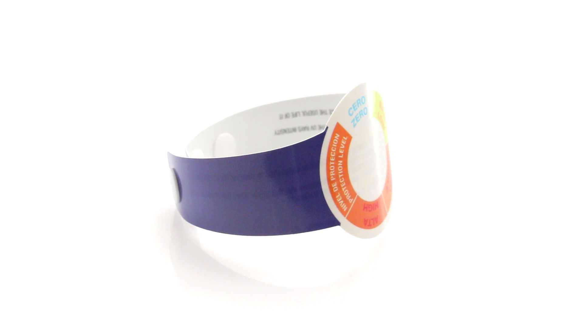 Verstellbares Armband mit UV-Strahlungsmesser in verschiedenen kräftigen Farben. Mit Druckknopfverschluss.