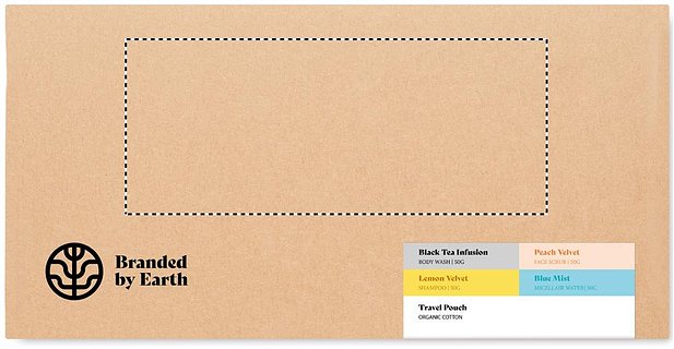 Unisex-Körperpflege-Set von Branded By Earth für die Reise. Enthält je 50 g vegane Duschseife, Shampoo, Gesichtspeeling und Mizellenwasser in fester Form. Alle Teile je in einer kleinen Dose. Inkl. Beutel aus Organic Cotton. Lieferung in einer Box aus recyceltem Papier. Hergestellt in der EU.