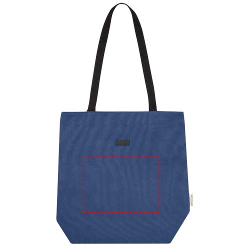 Tasche aus GRS-zertifiziertem, recyceltem Canvas und GRS-zertifiziertem RPET-Futter. Diese vielseitige Tasche verfügt über ein gepolstertes 15“-Laptopfach und zwei Innenfächer für Handy, Geldbörse oder Zubehör. Die Tasche wird mit einem einfachen Knopfverschluss geschlossen und verfügt über bequeme Tragegriffe aus Baumwollgewebe. DDie dekorative matte Metallplatte wird Ihr Logo gekonnt in Szene setzen.
