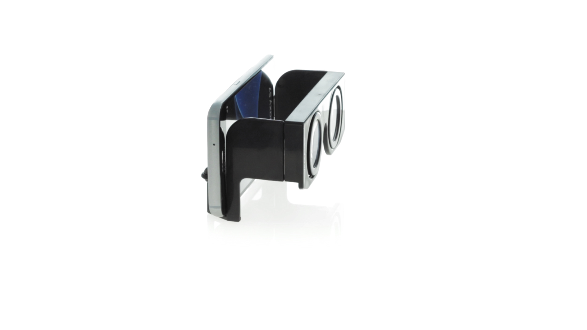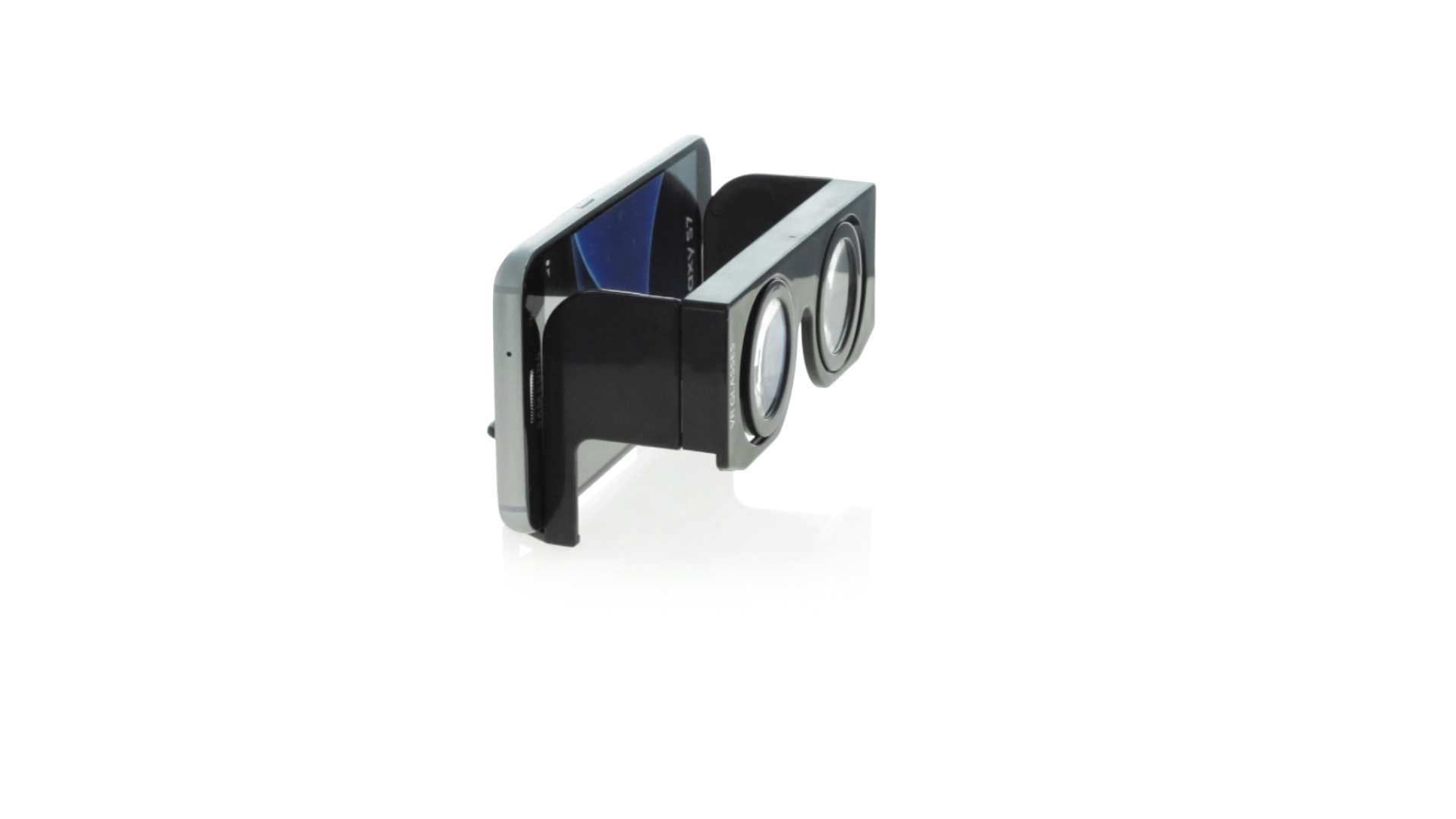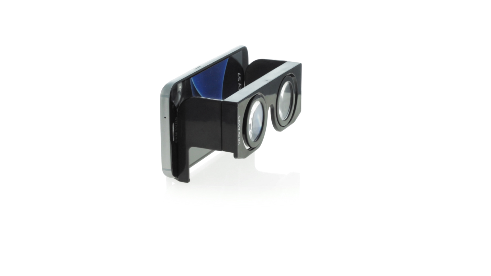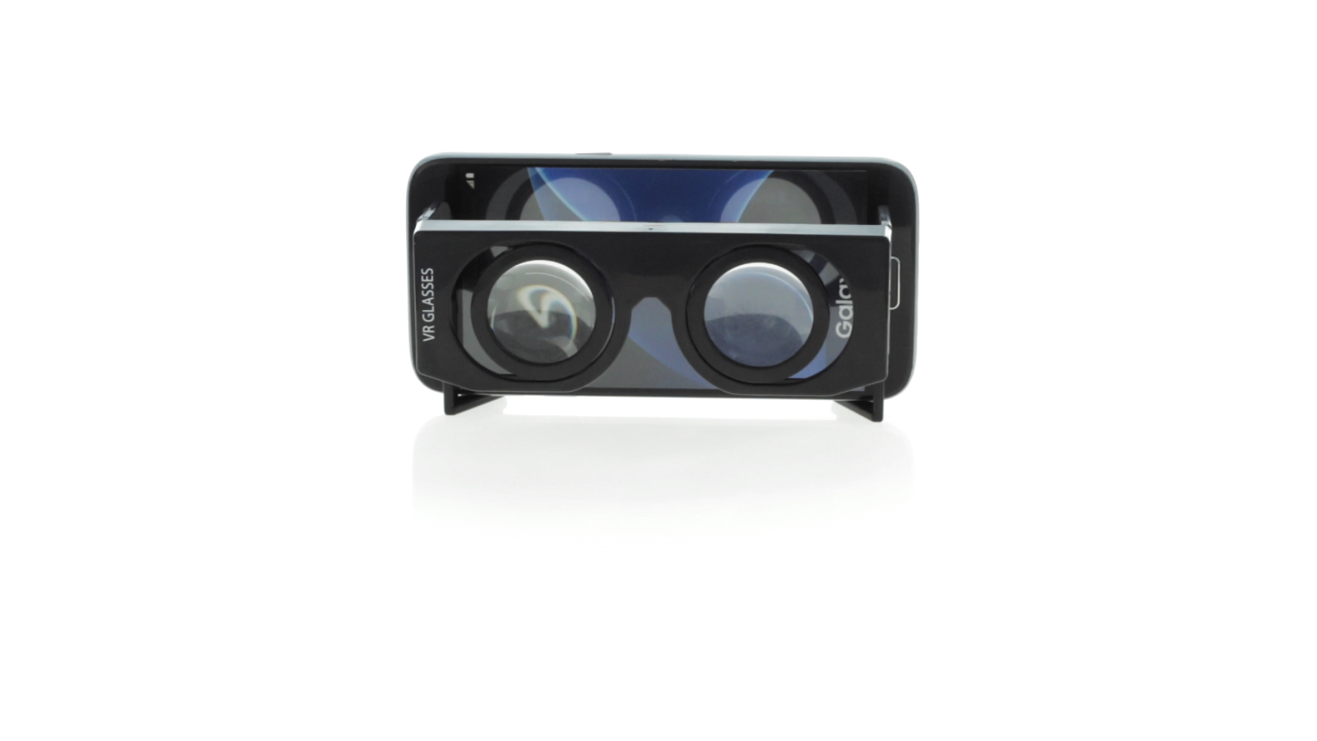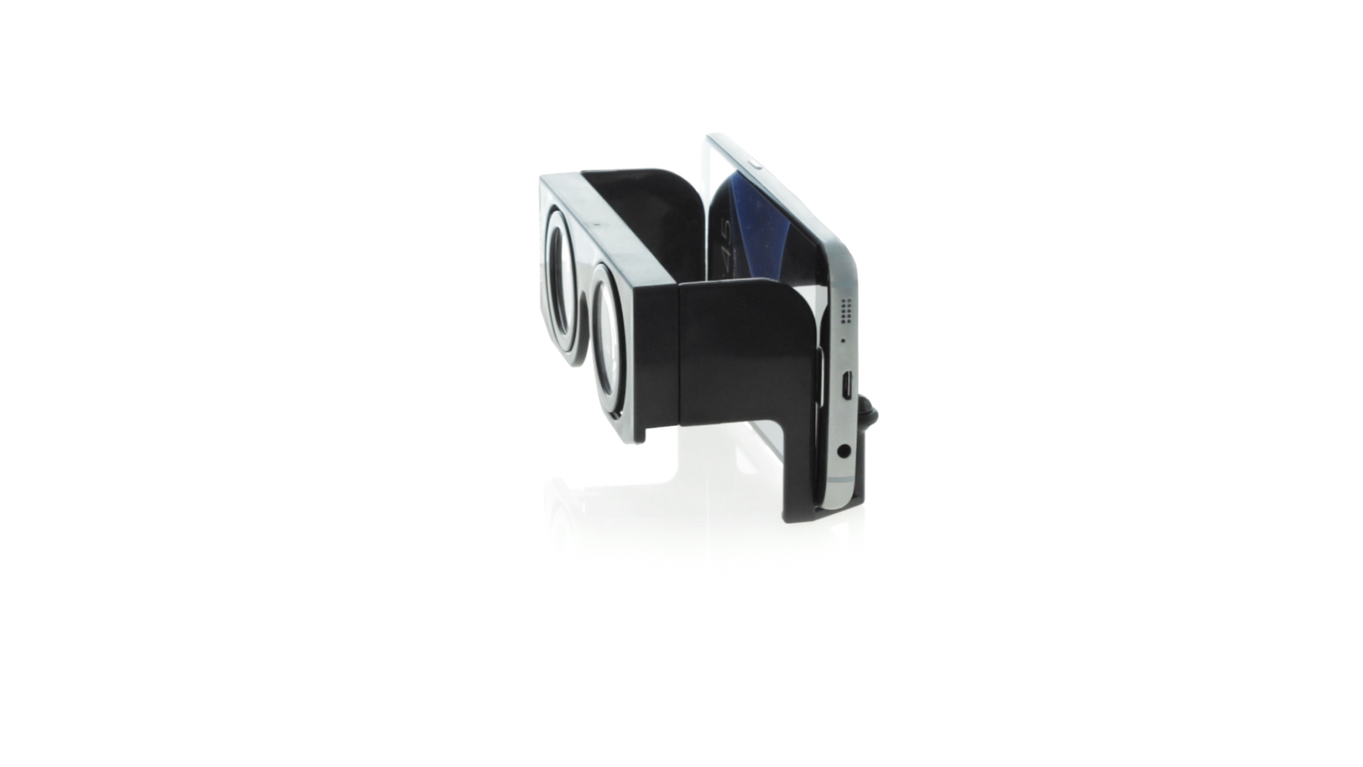 Faltbare Virtual-Reality-Brille mit verstellbaren Gläsern. Kompatibel mit allen Arten von Smartphones. Geeignet für 3D- und 360º-Videos. Präsentiert in einer individuellen Kunststoffhülle mit grosser Druckfläche.