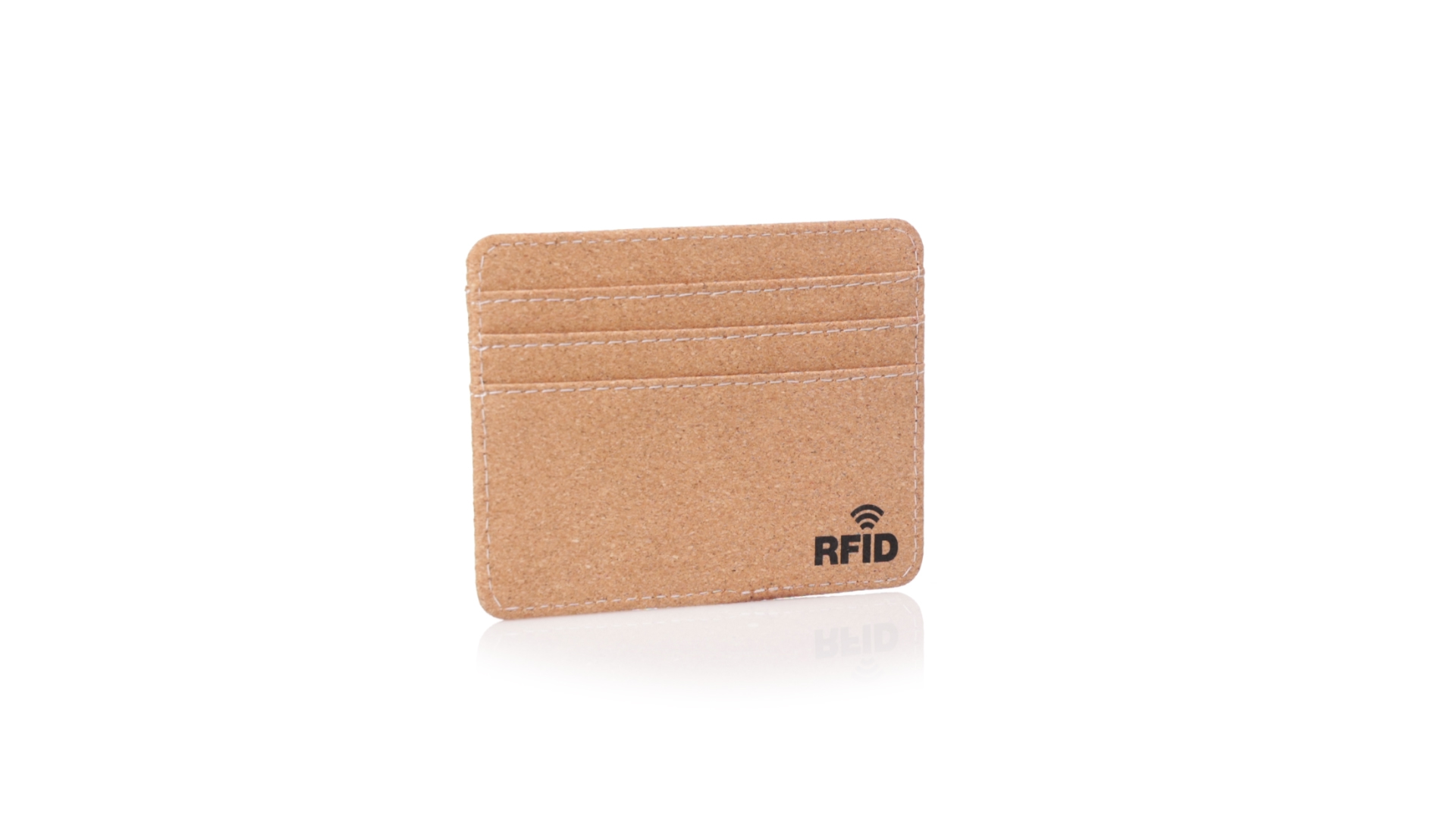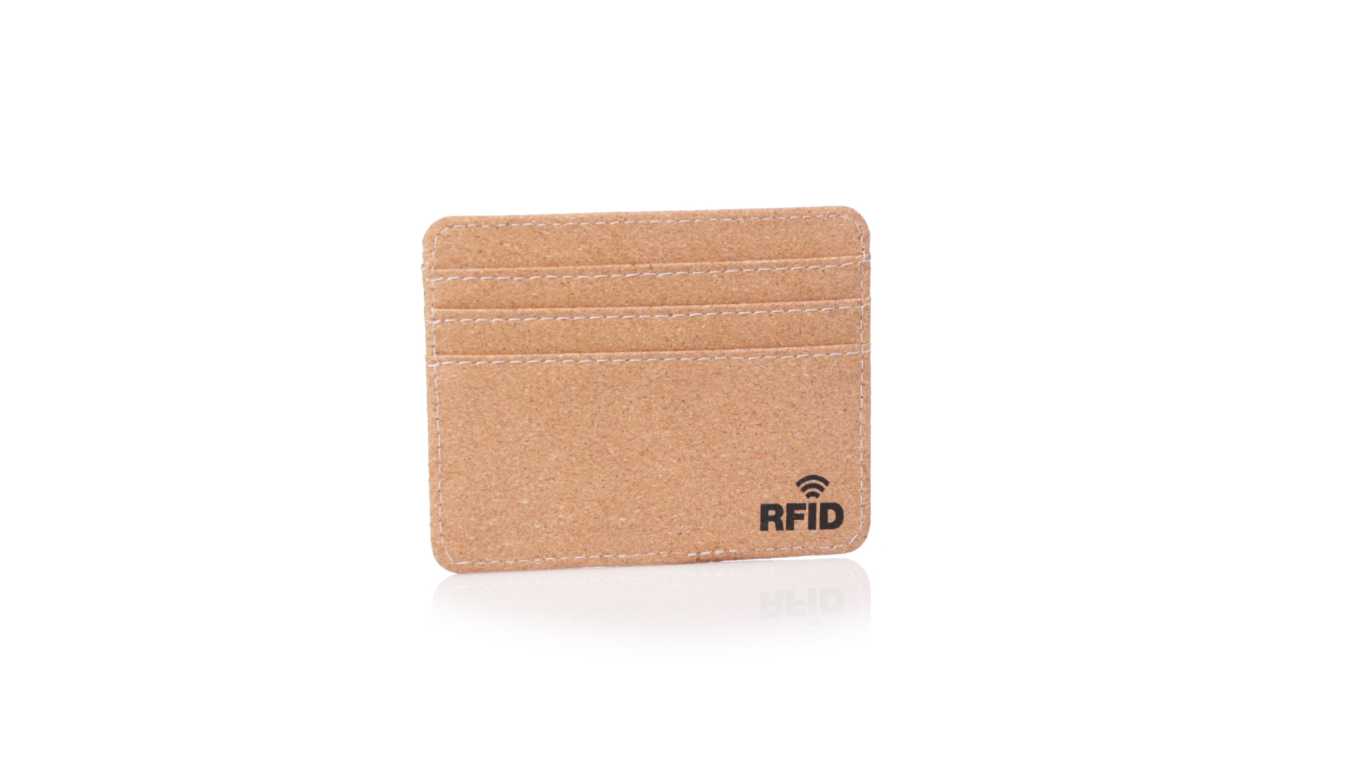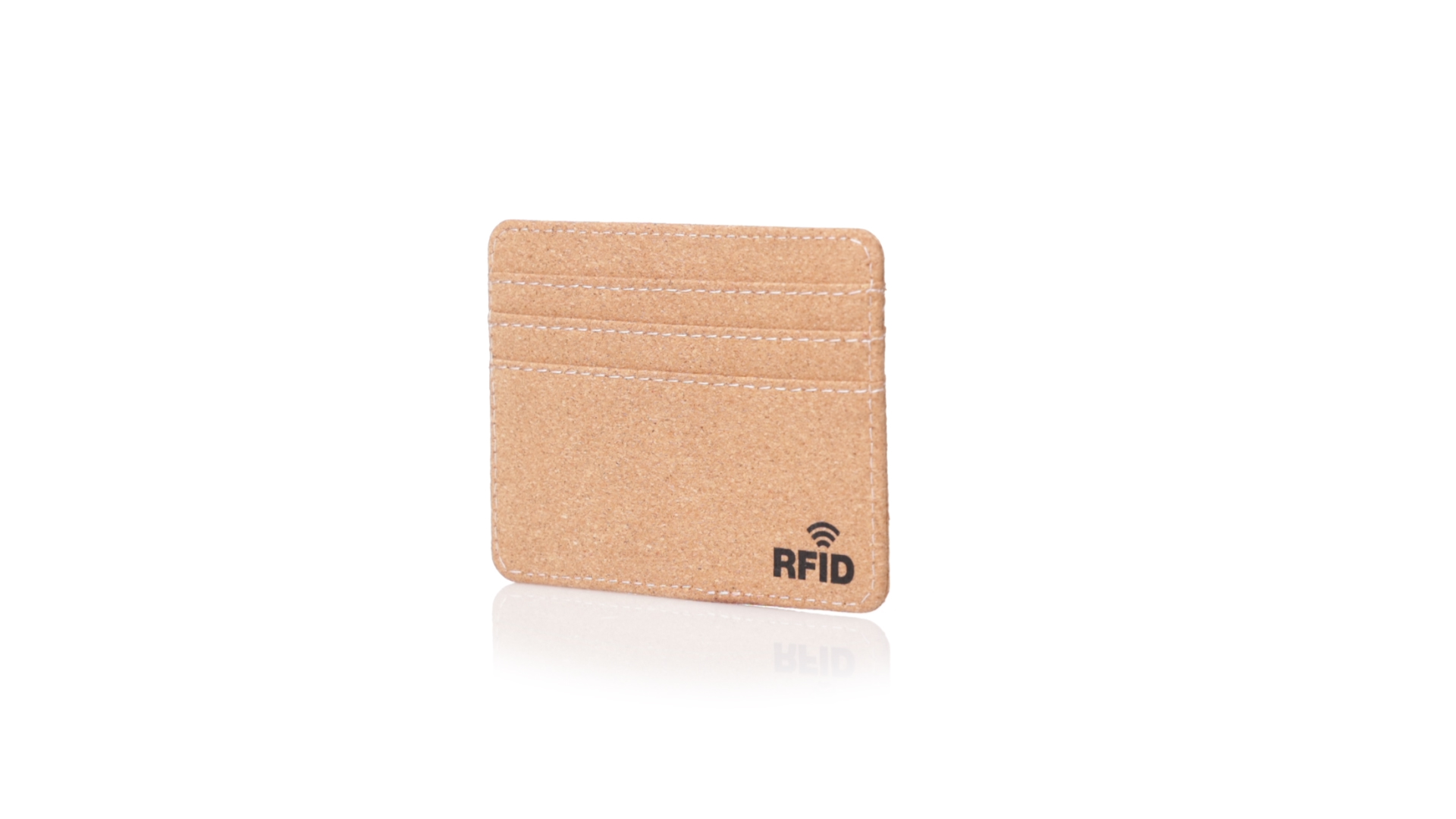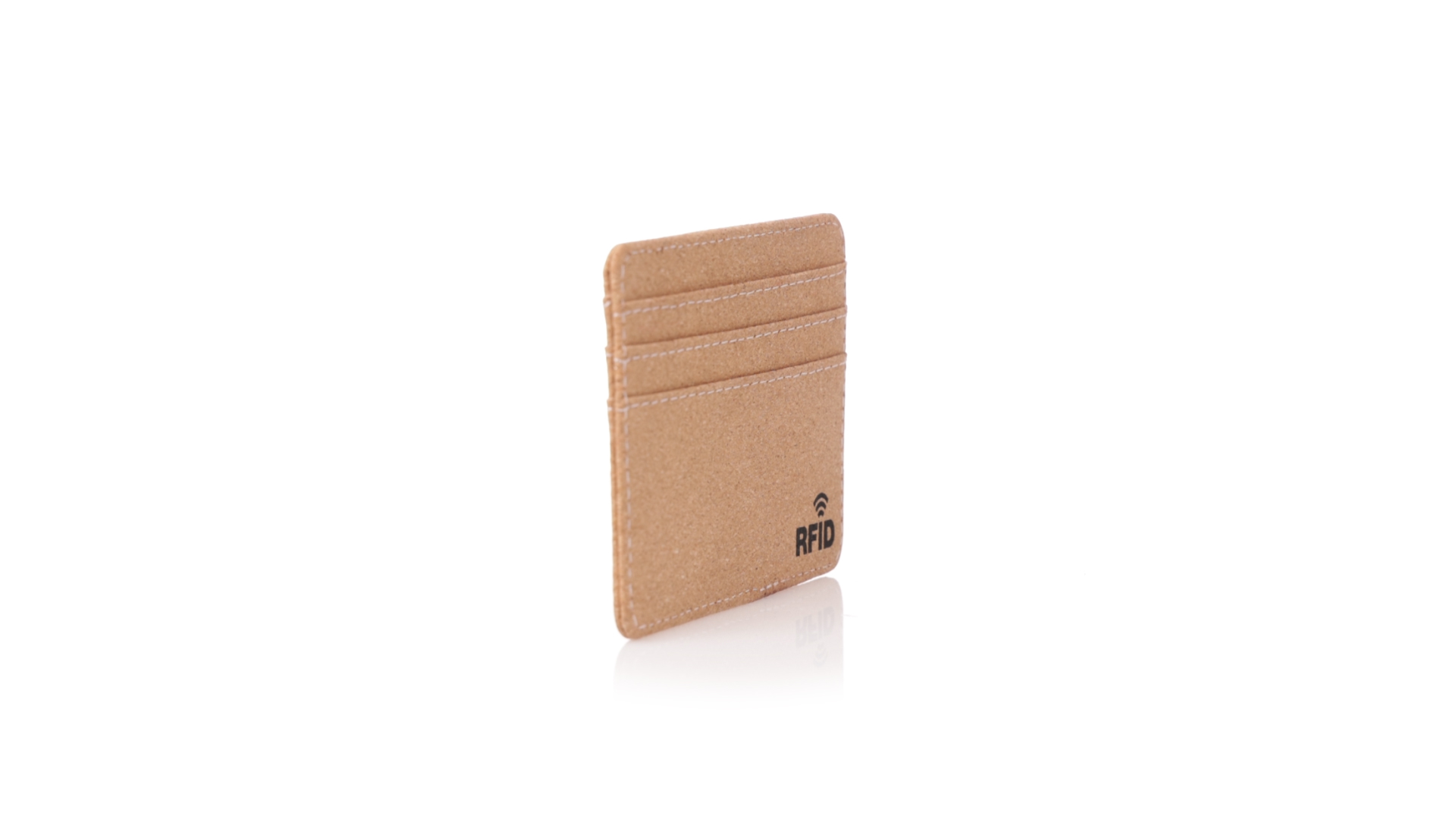 Eleganter Kartenhalter aus Naturkork. Mit 6 unabhängigen Fächern für Karten. RFID (Radio Frequency Identification) Sicherheitstechnologie, die die Kartendaten schützt. RFID unverwechselbar aussen.