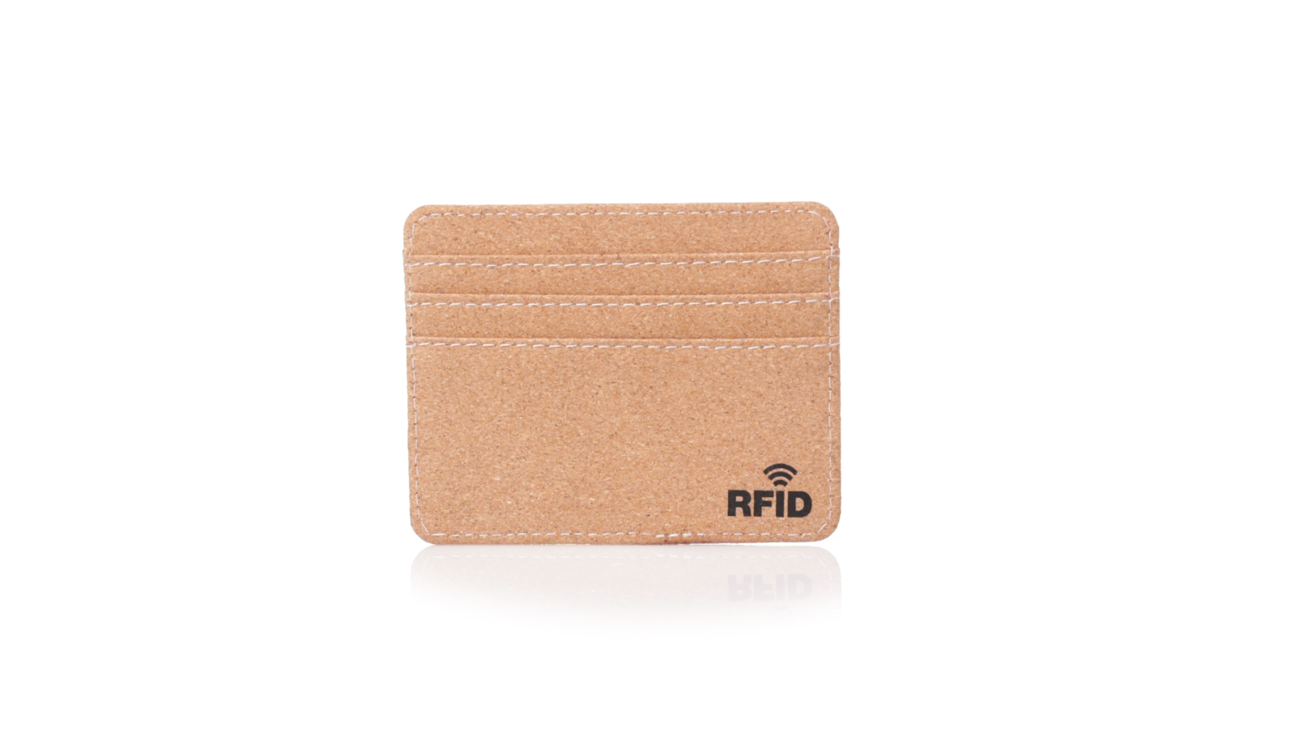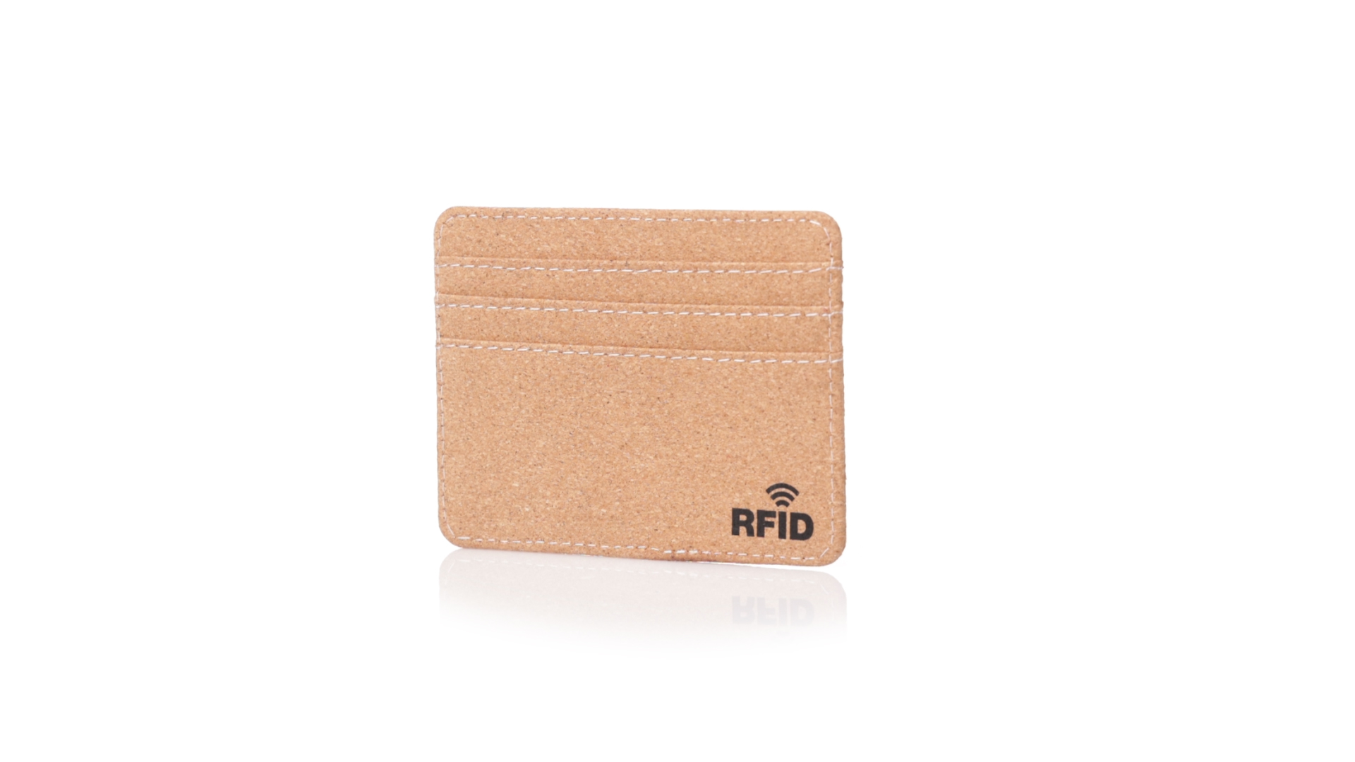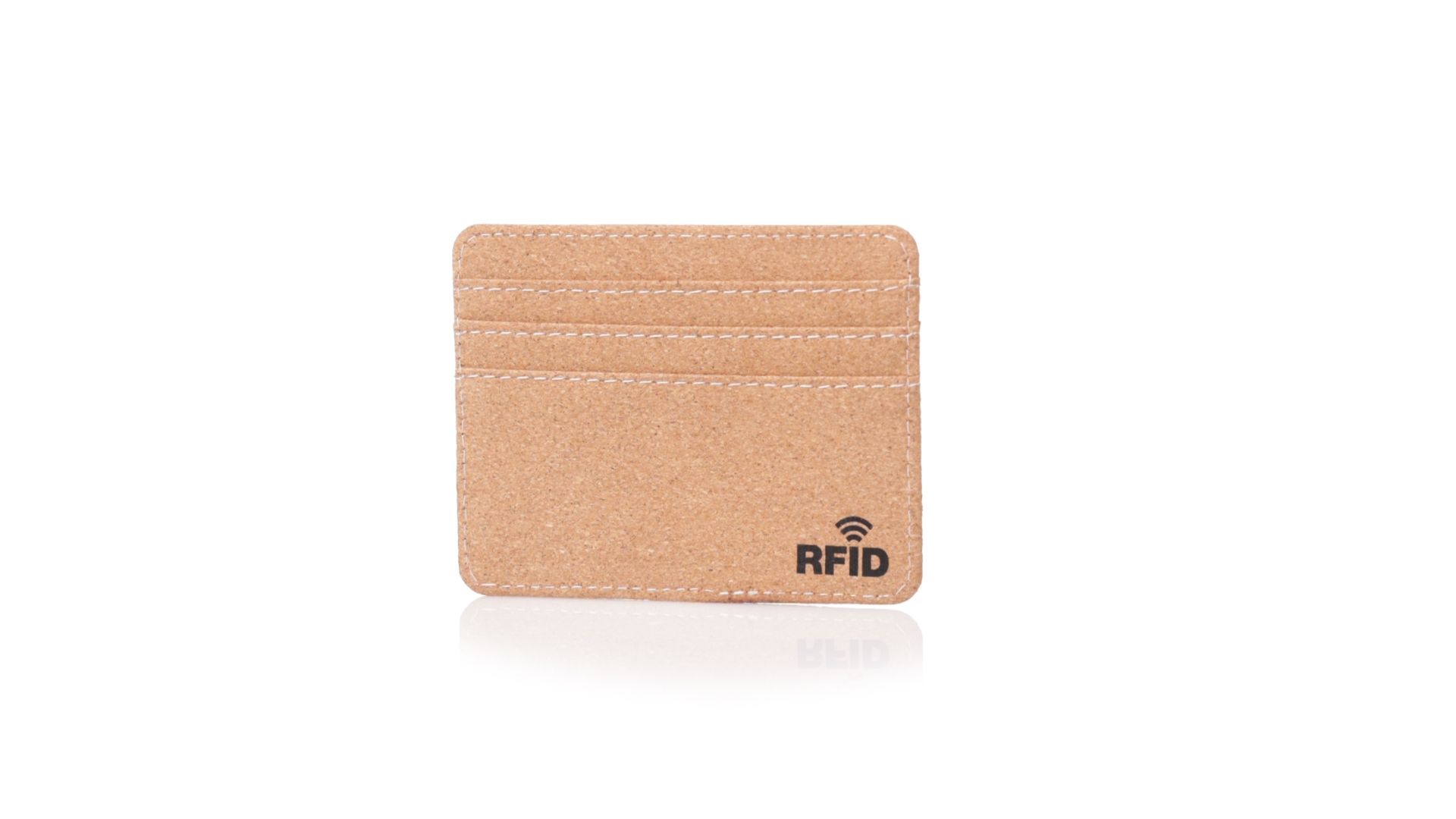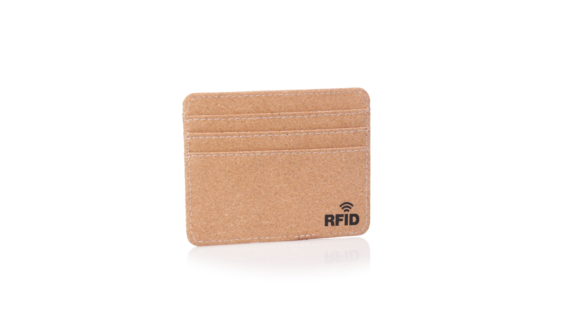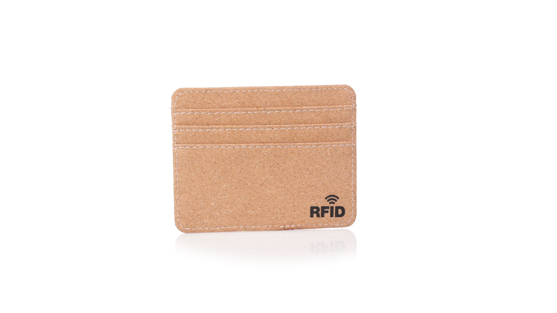 Eleganter Kartenhalter aus Naturkork. Mit 6 unabhängigen Fächern für Karten. RFID (Radio Frequency Identification) Sicherheitstechnologie, die die Kartendaten schützt. RFID unverwechselbar aussen.