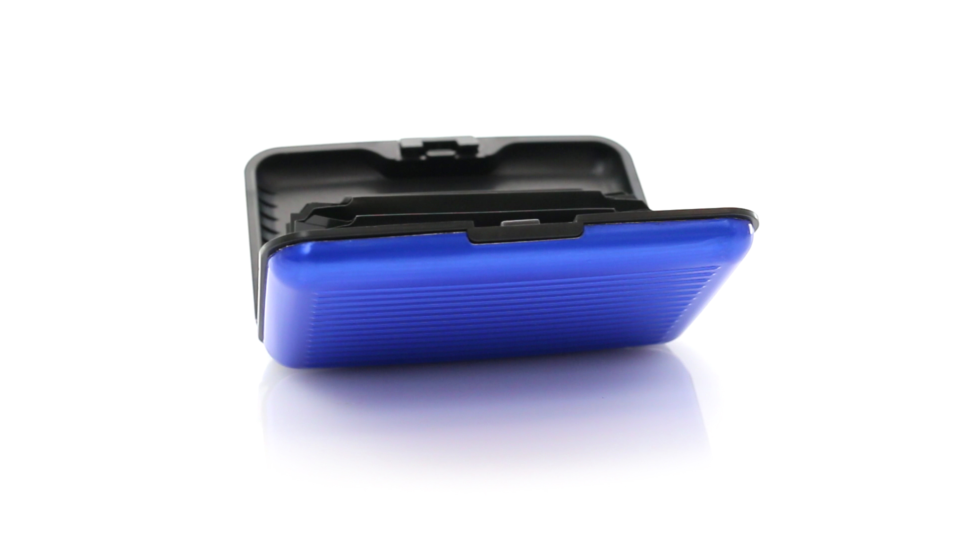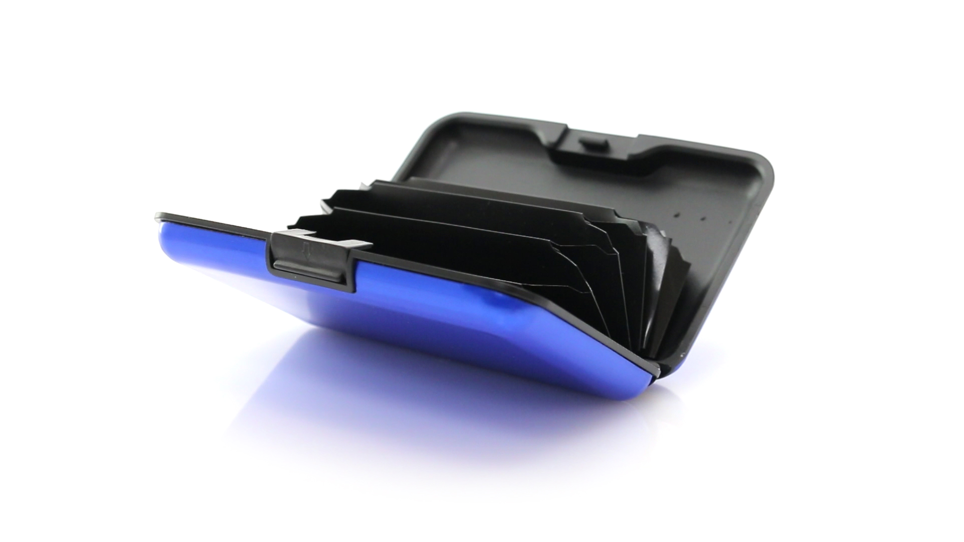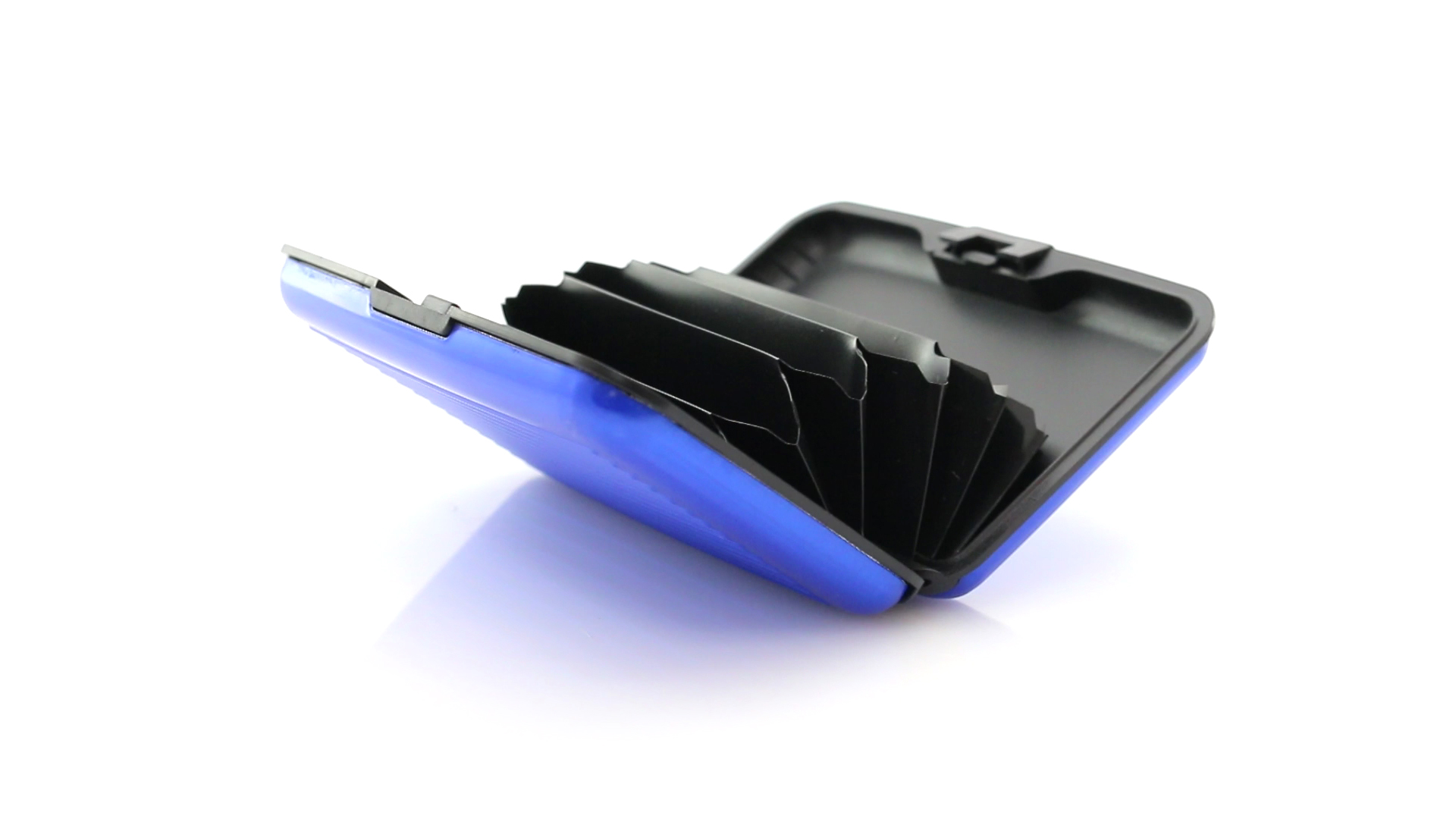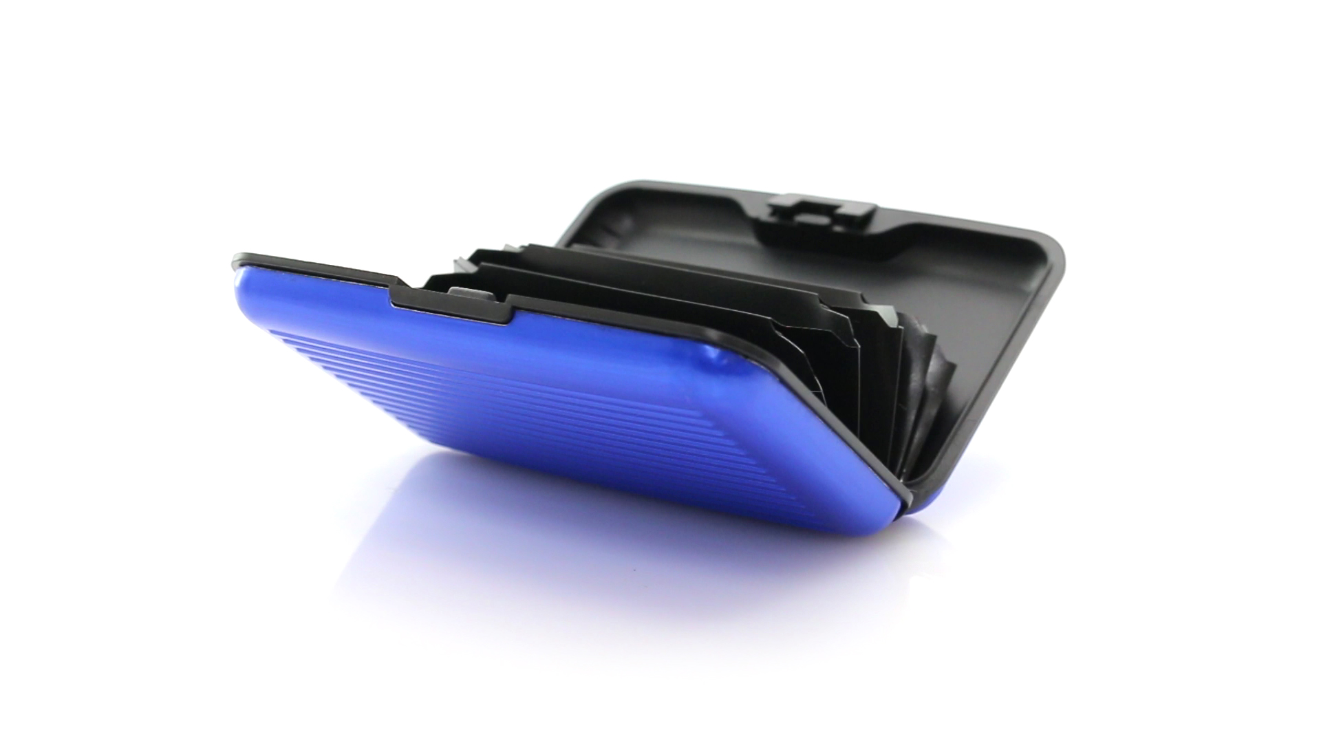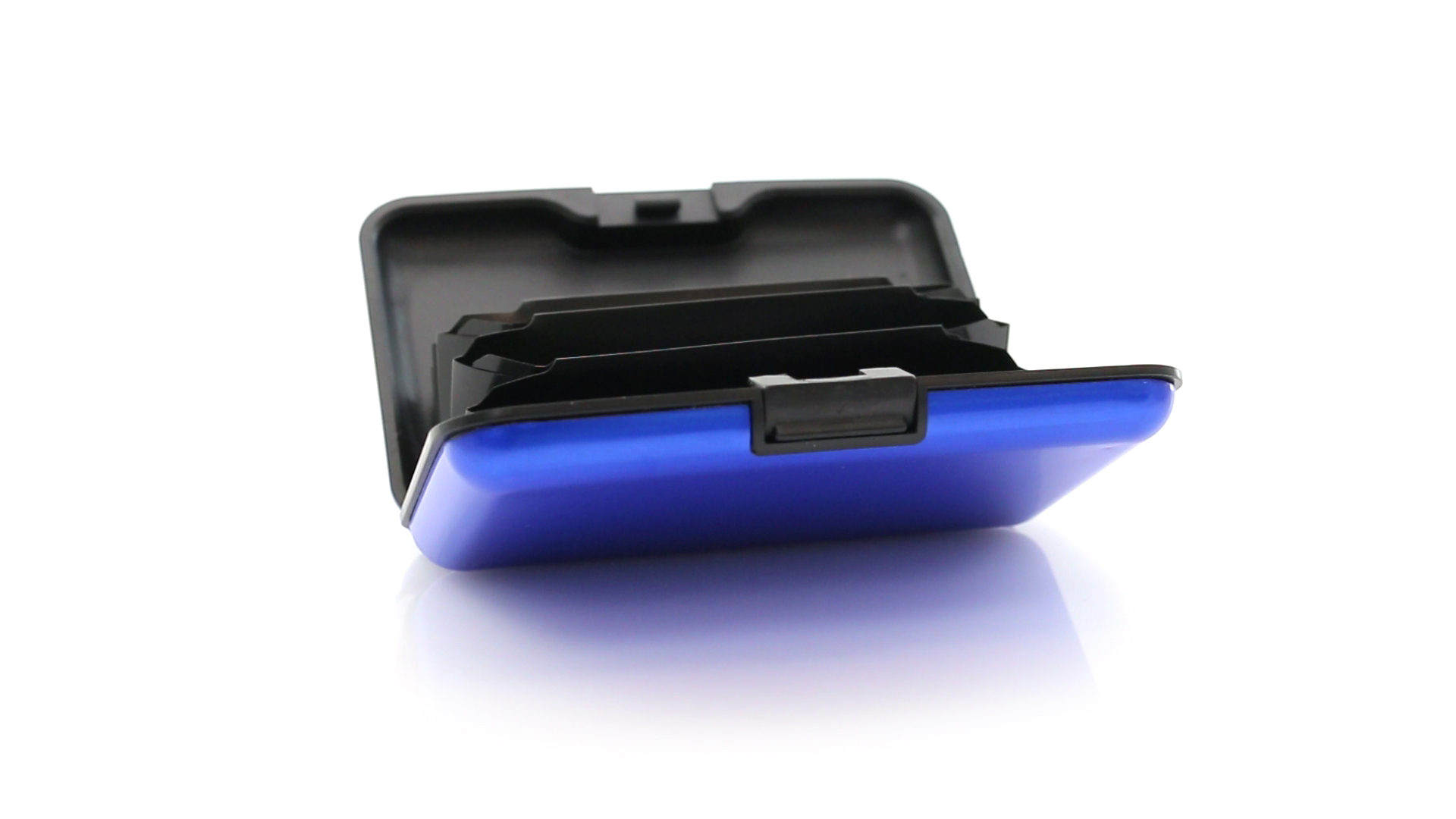 Elegantes Kartenetui in Aluminium-Ausführung in eleganten Farben. Mit 6 Innenfächern im Akkordeon-Stil, Klickverschluss und glatter Druckfläche an der Aussenseite - geeignet für die Personalisierung mittels Laserdruck. Präsentiert in einer individuellen Box in Silber.