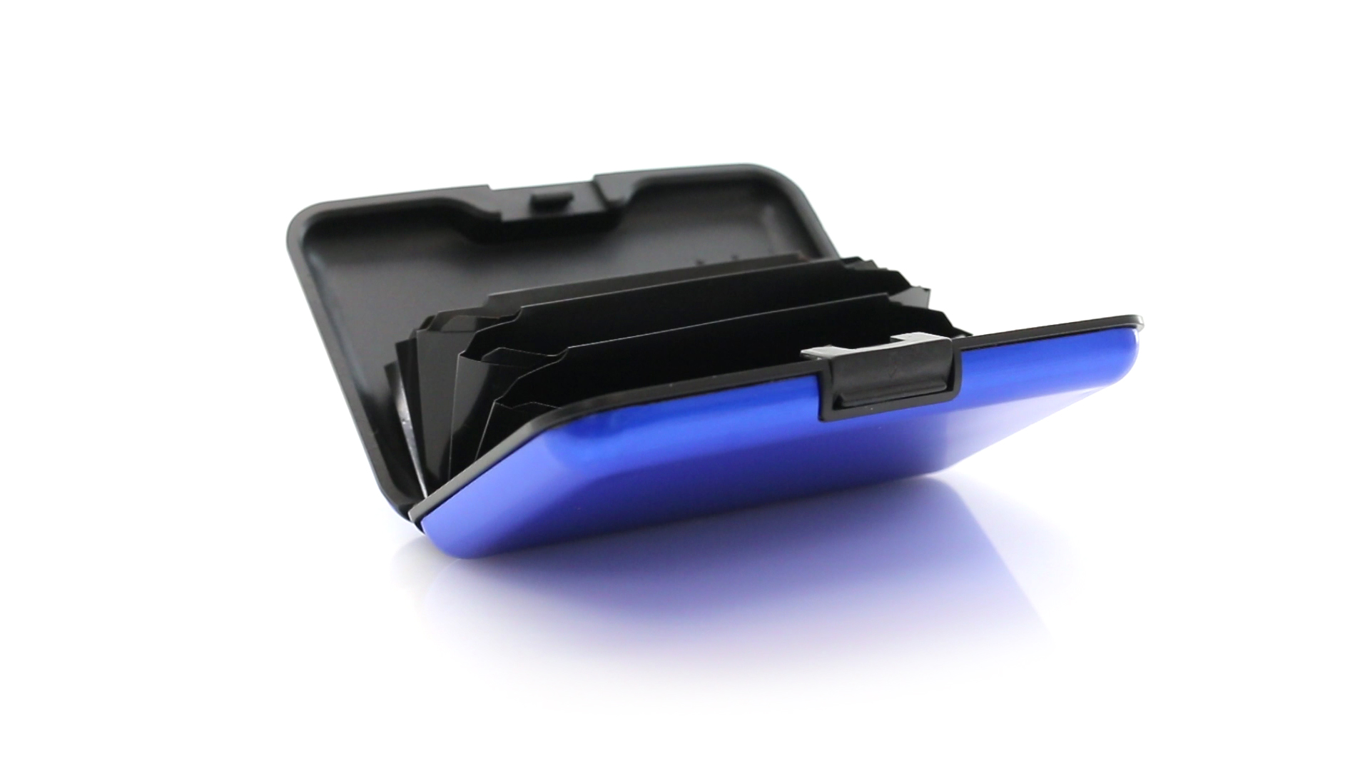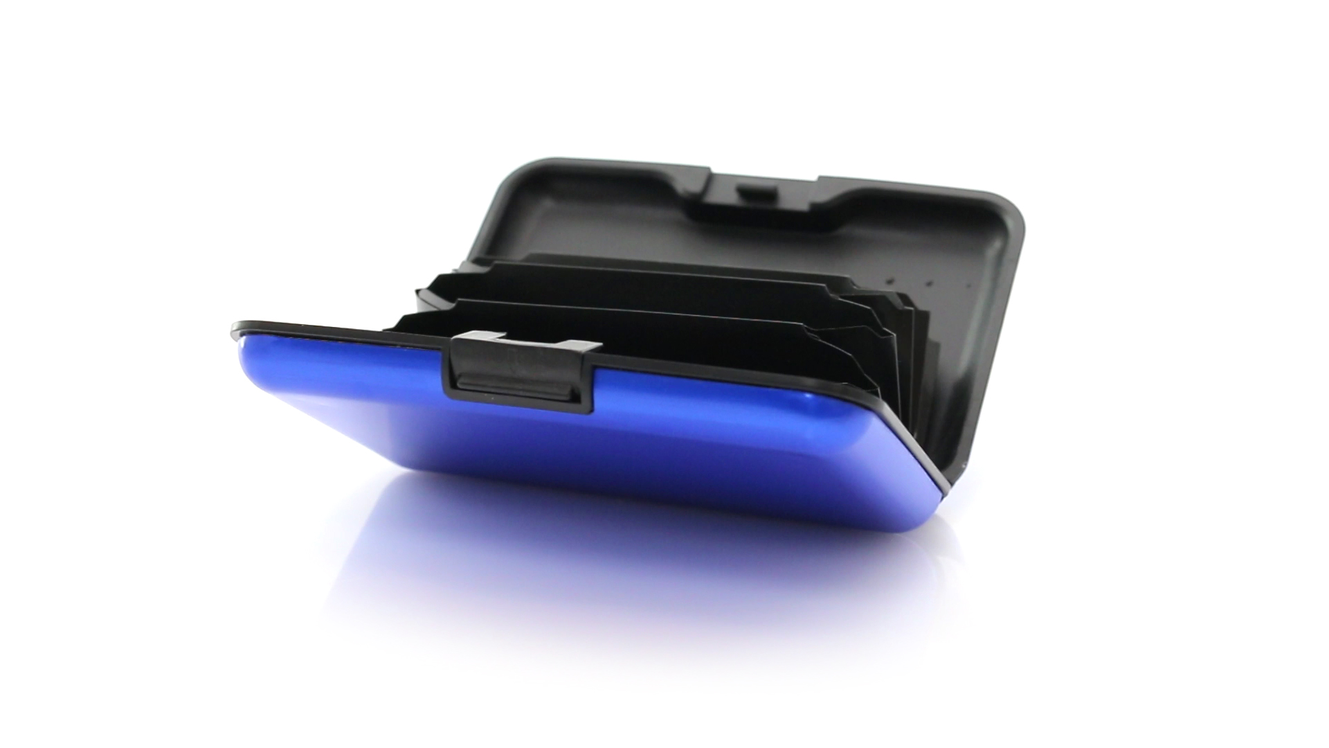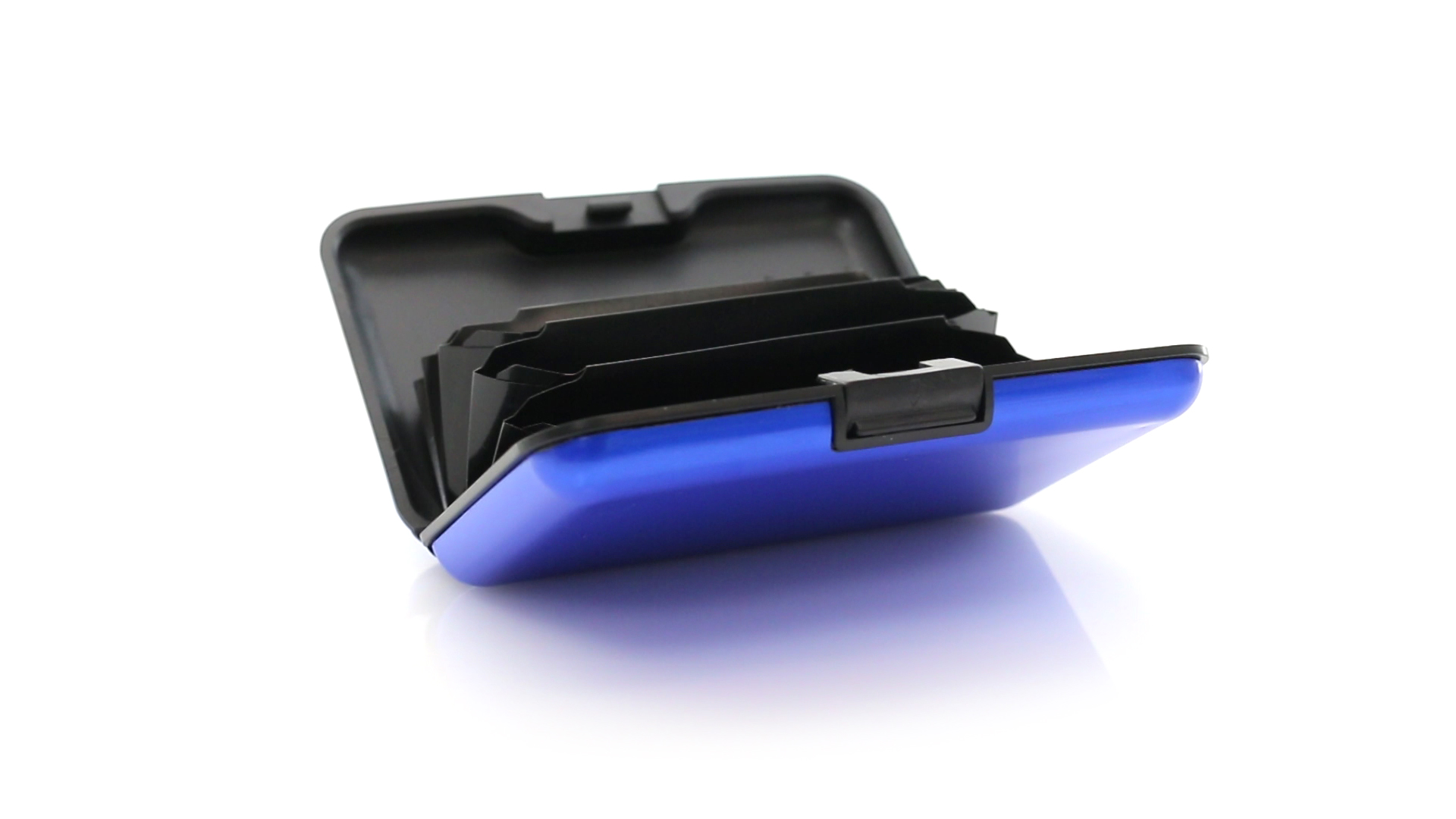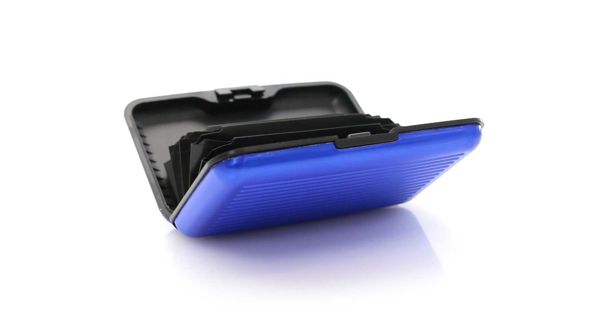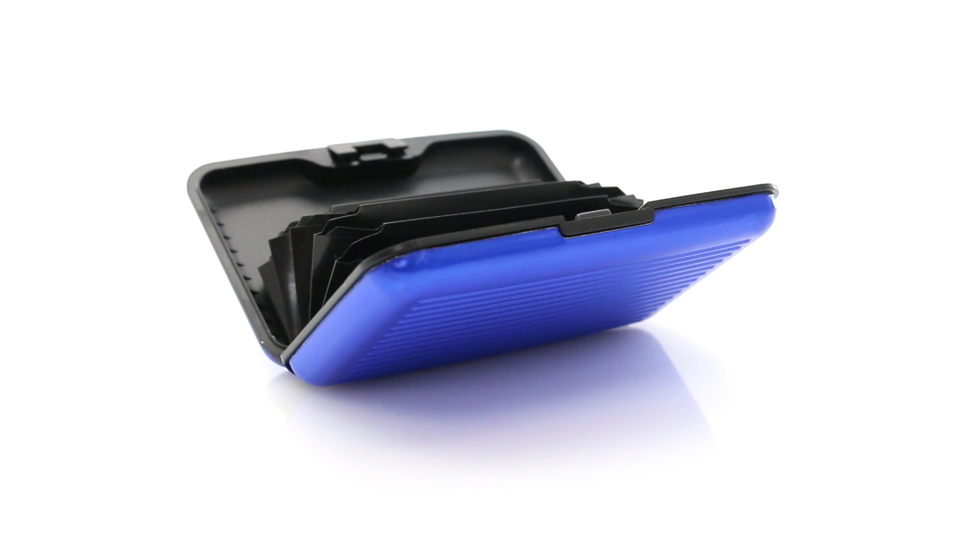 Elegantes Kartenetui in Aluminium-Ausführung in eleganten Farben. Mit 6 Innenfächern im Akkordeon-Stil, Klickverschluss und glatter Druckfläche an der Aussenseite - geeignet für die Personalisierung mittels Laserdruck. Präsentiert in einer individuellen Box in Silber.