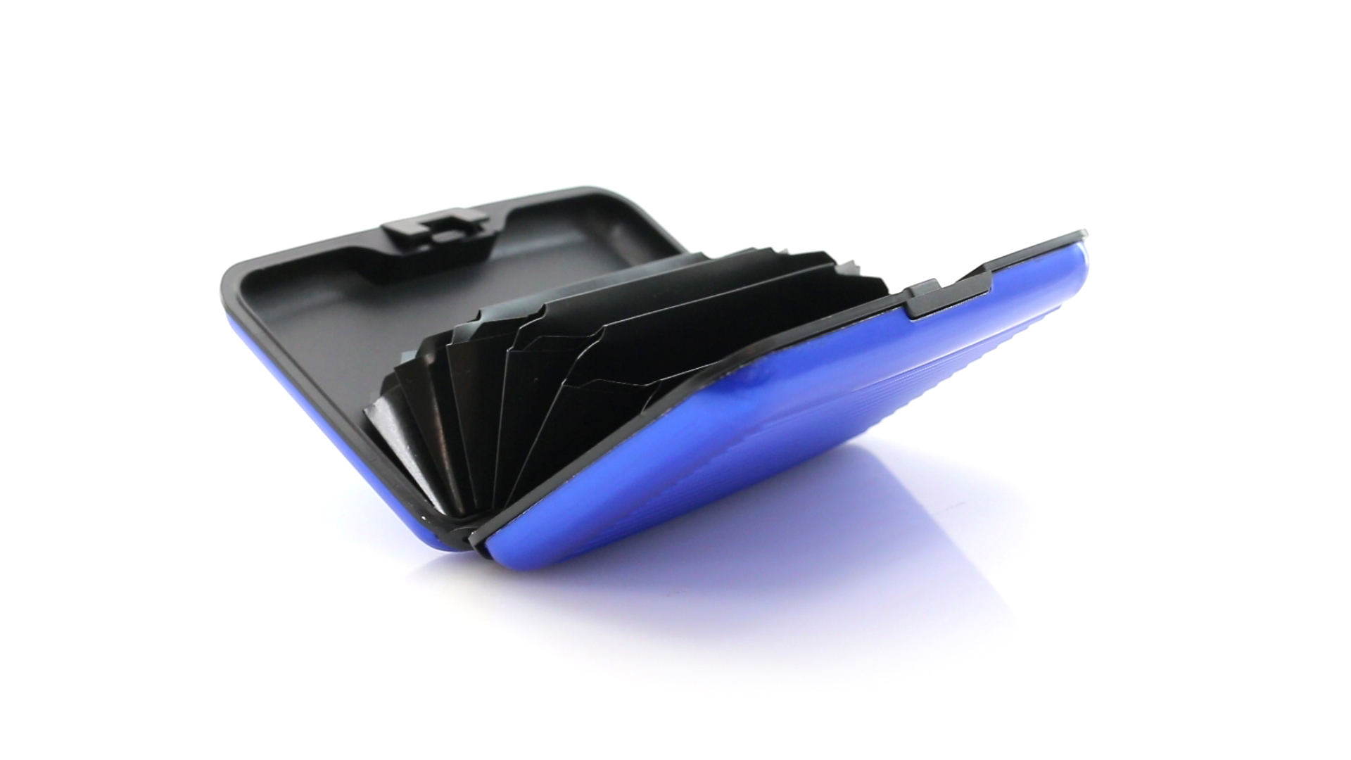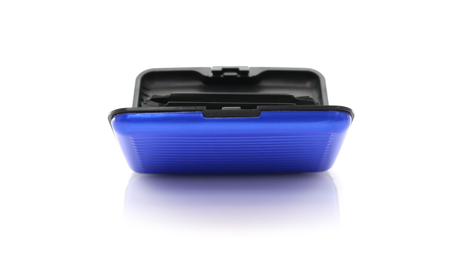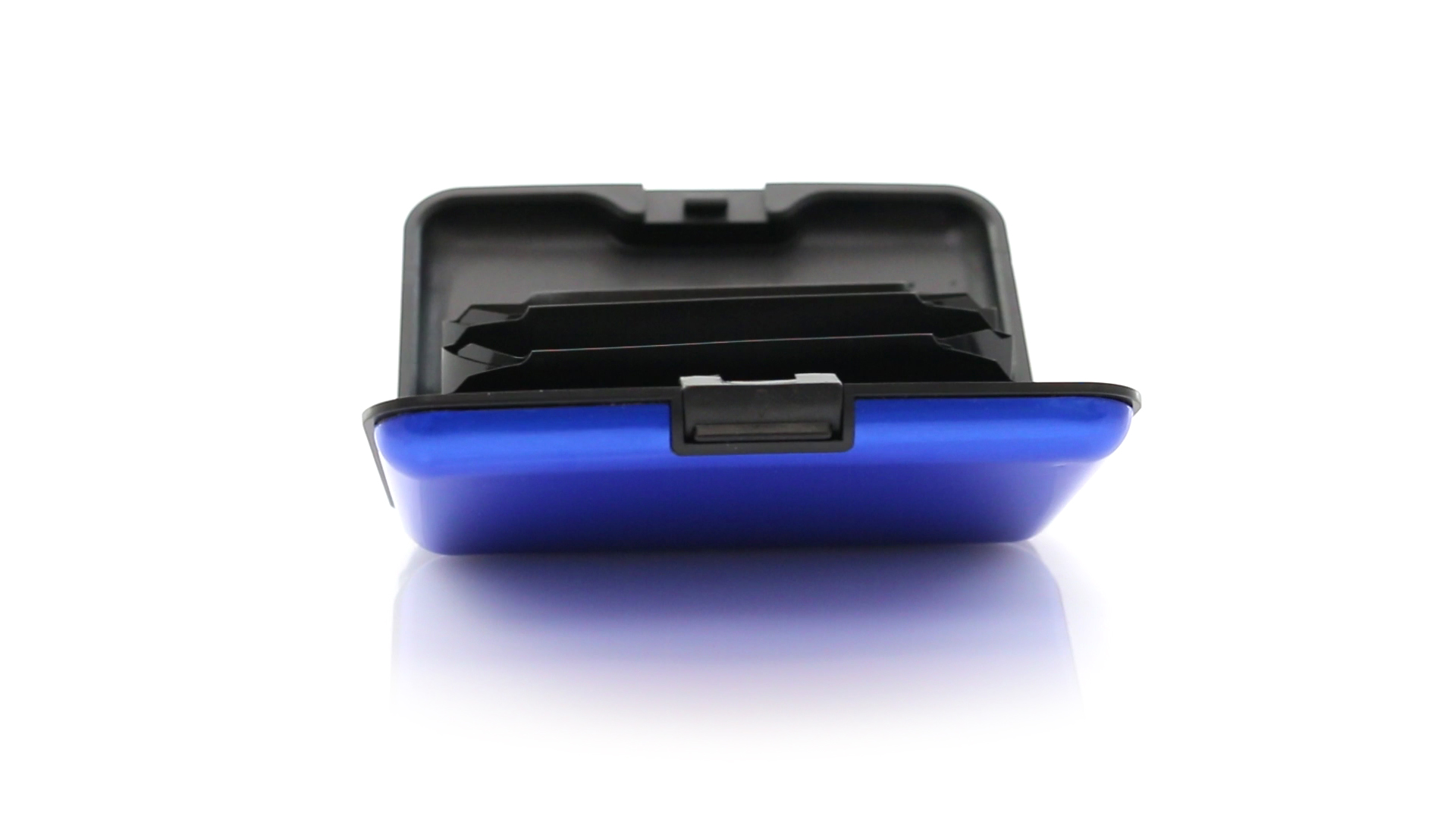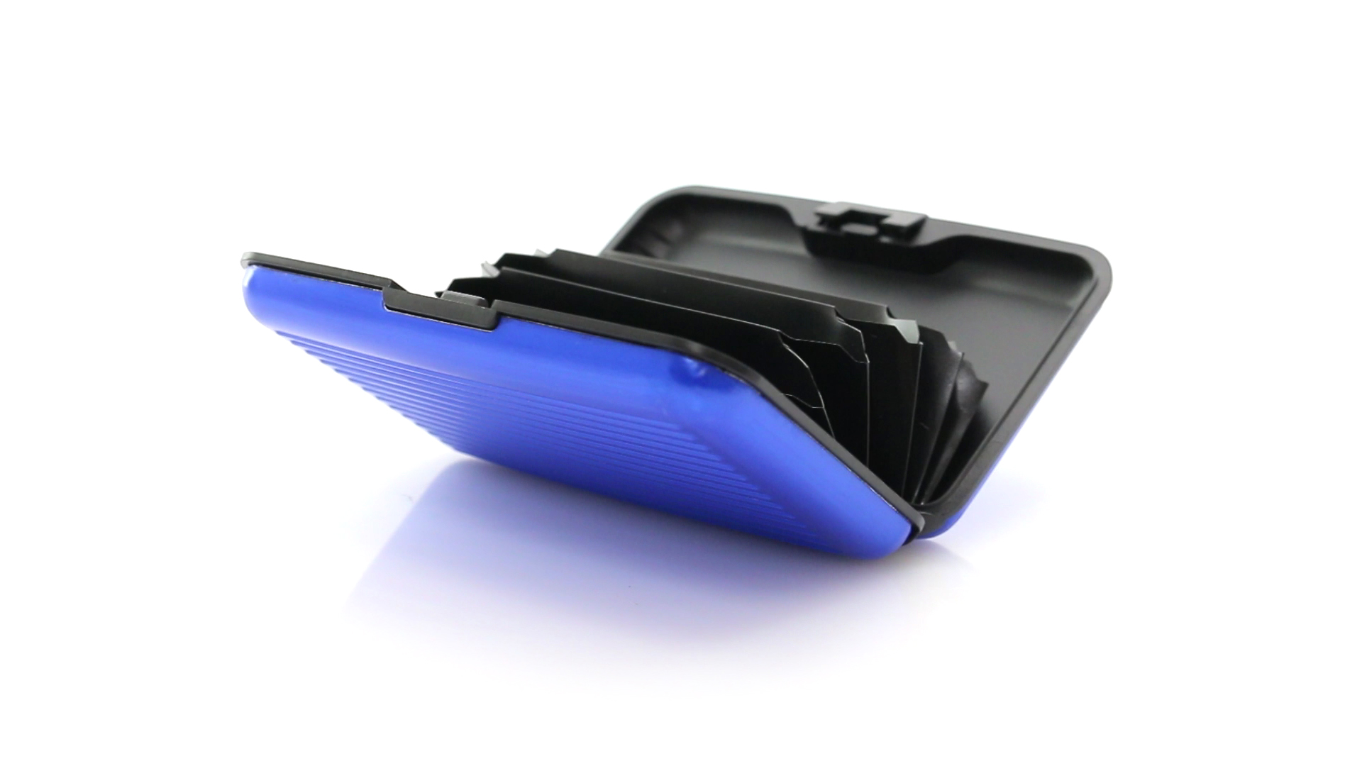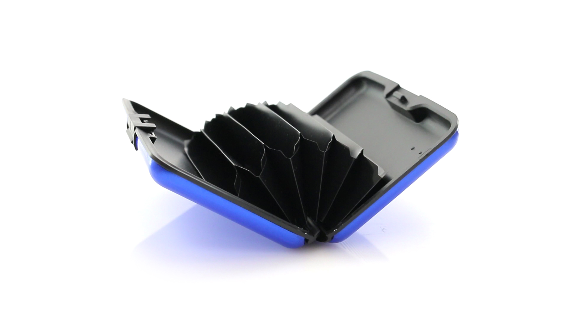 Elegantes Kartenetui in Aluminium-Ausführung in eleganten Farben. Mit 6 Innenfächern im Akkordeon-Stil, Klickverschluss und glatter Druckfläche an der Aussenseite - geeignet für die Personalisierung mittels Laserdruck. Präsentiert in einer individuellen Box in Silber.