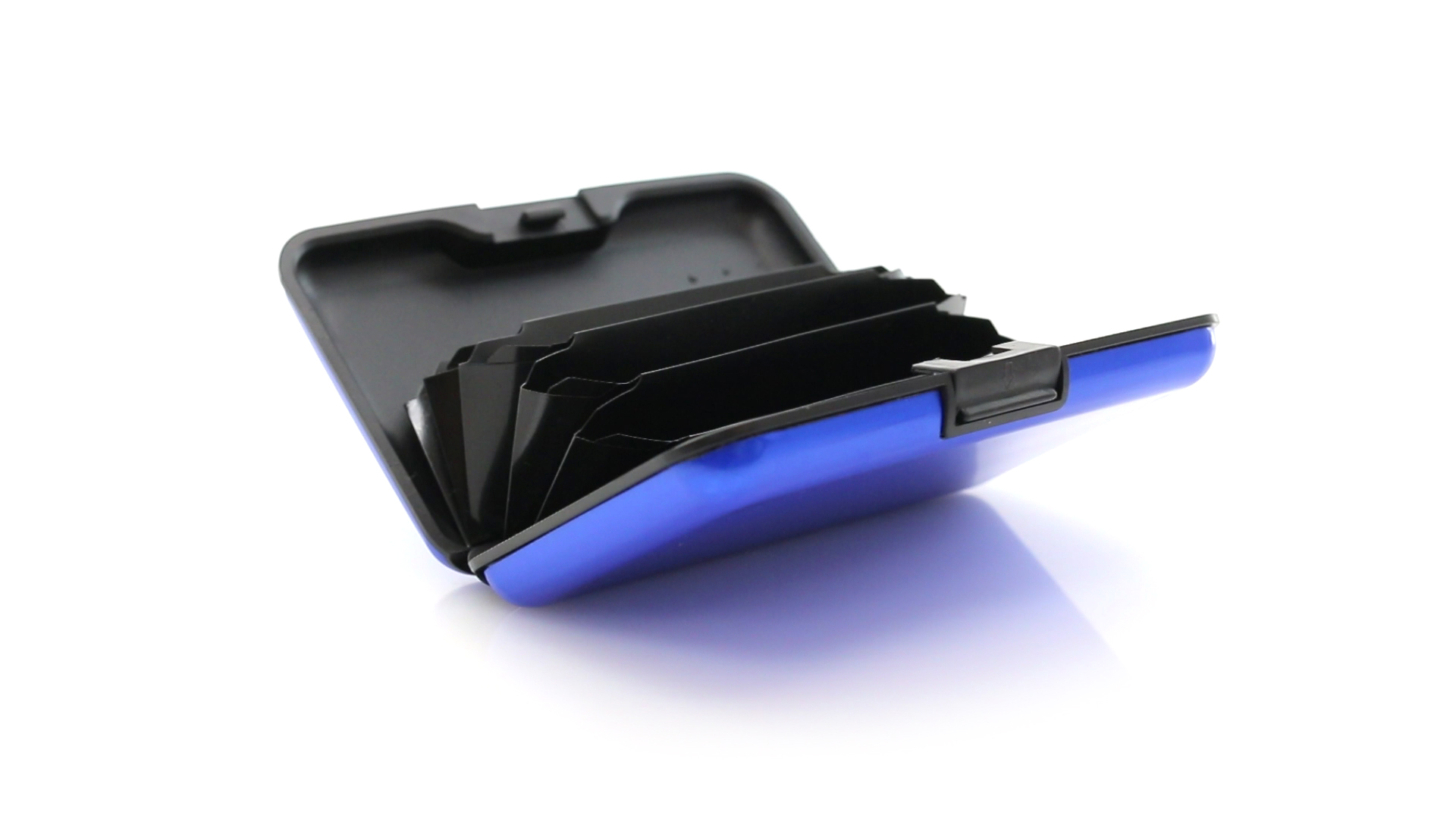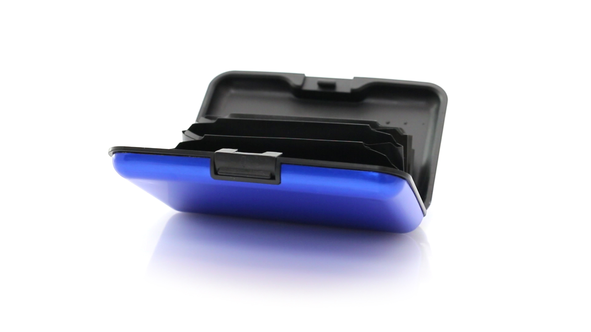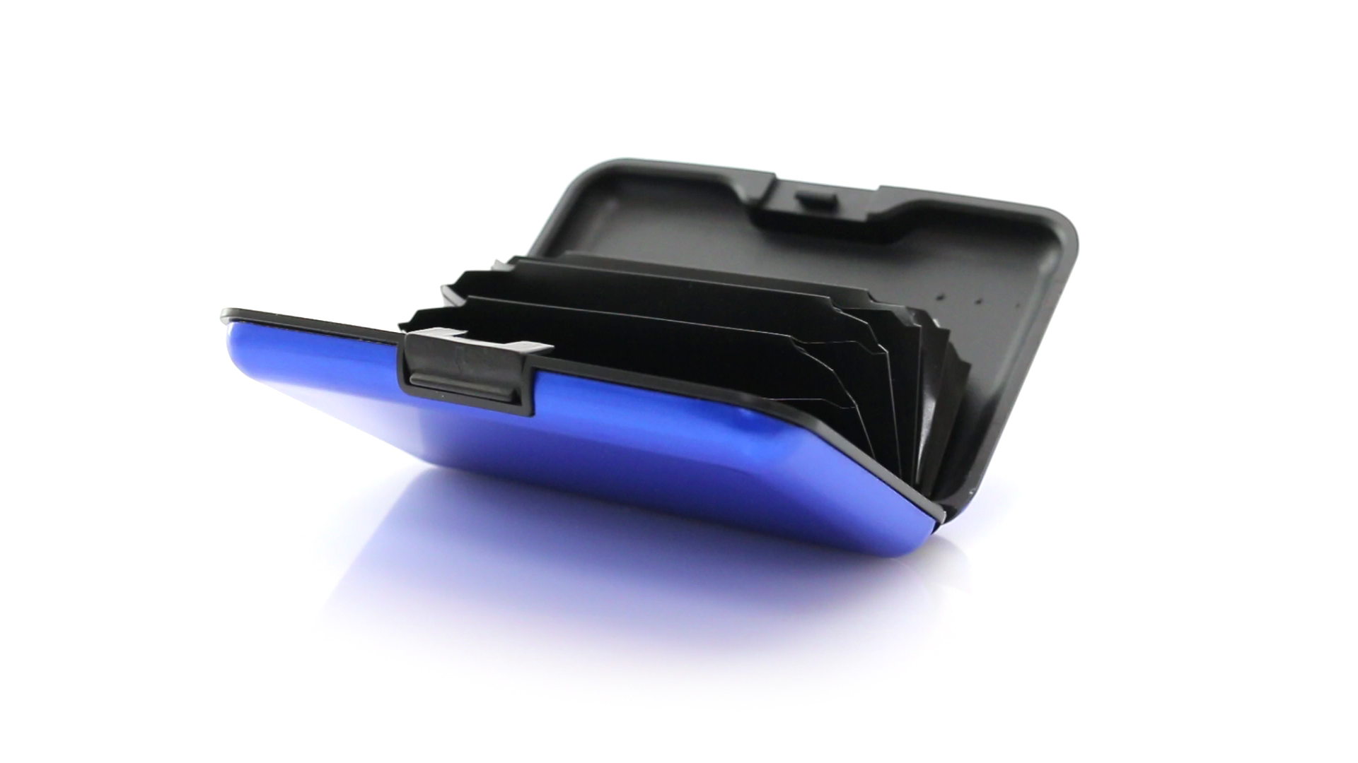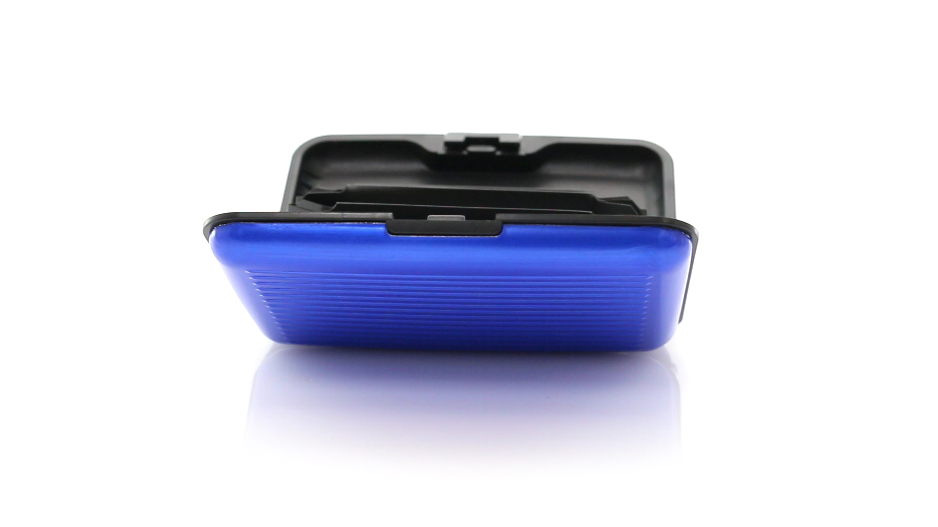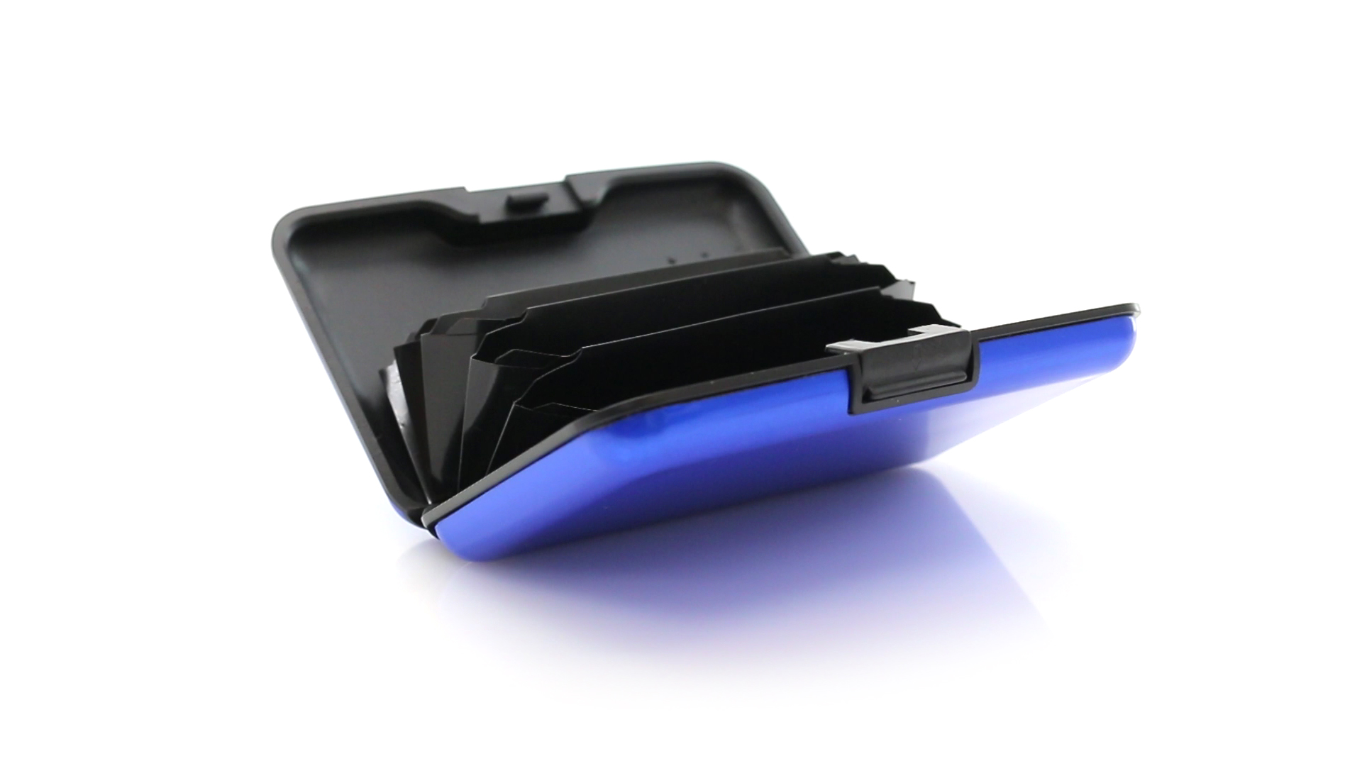 Elegantes Kartenetui in Aluminium-Ausführung in eleganten Farben. Mit 6 Innenfächern im Akkordeon-Stil, Klickverschluss und glatter Druckfläche an der Aussenseite - geeignet für die Personalisierung mittels Laserdruck. Präsentiert in einer individuellen Box in Silber.