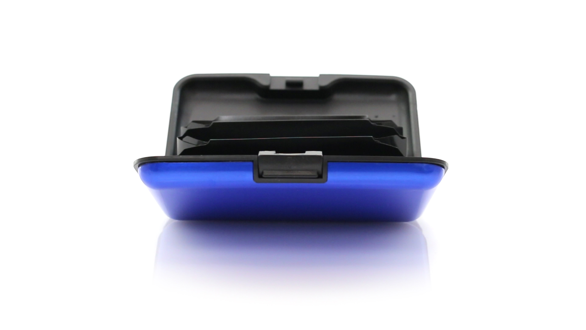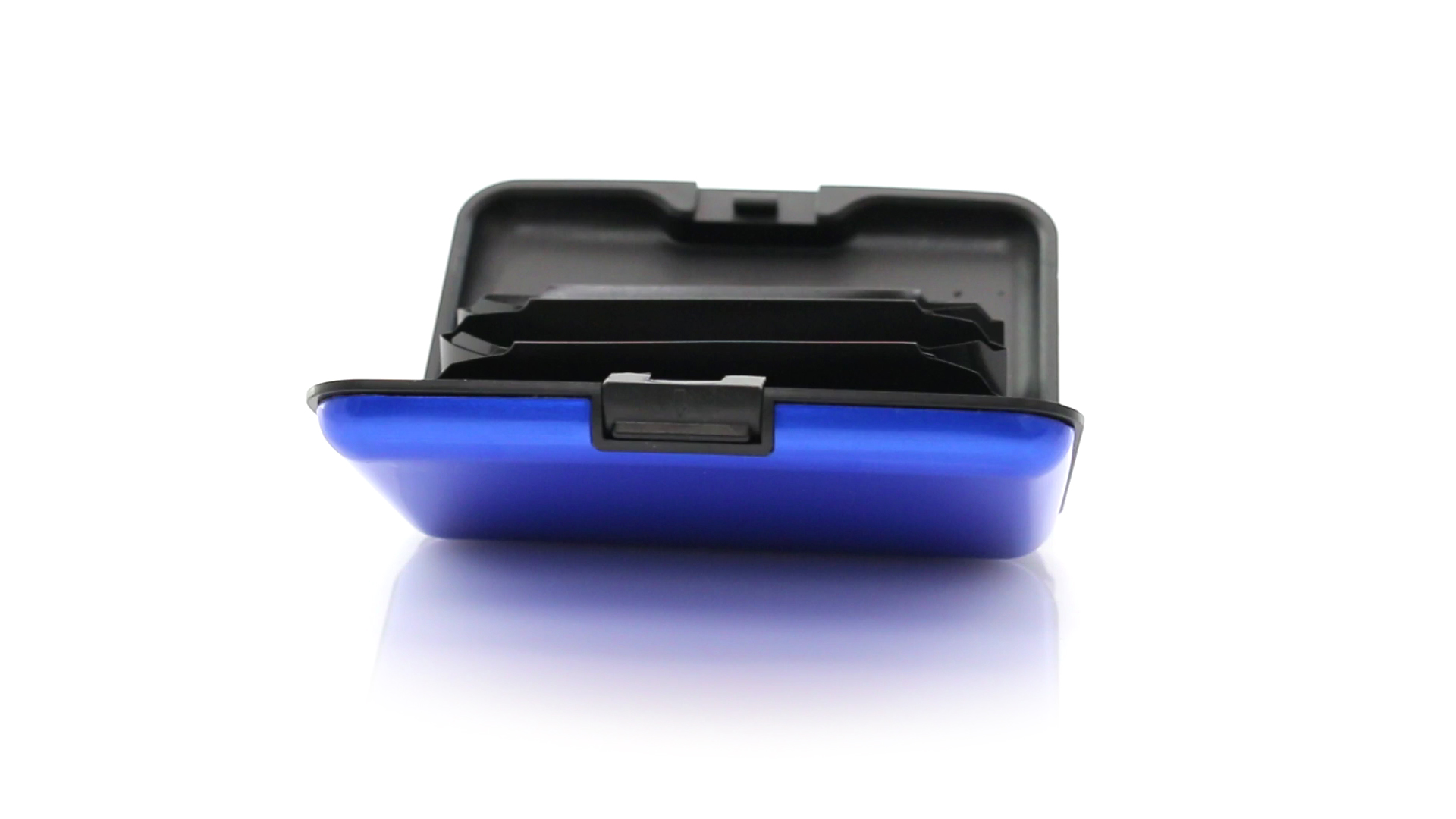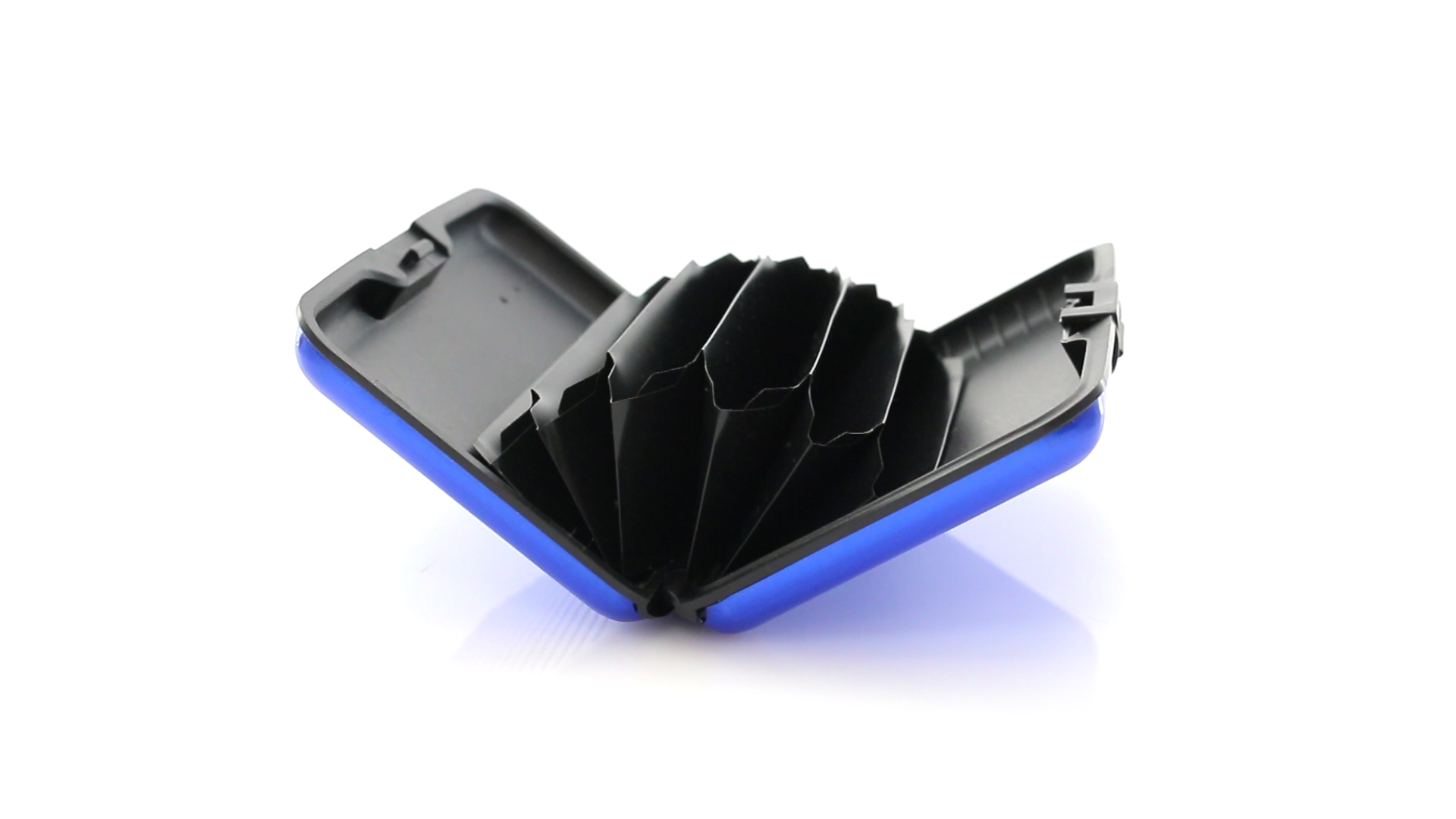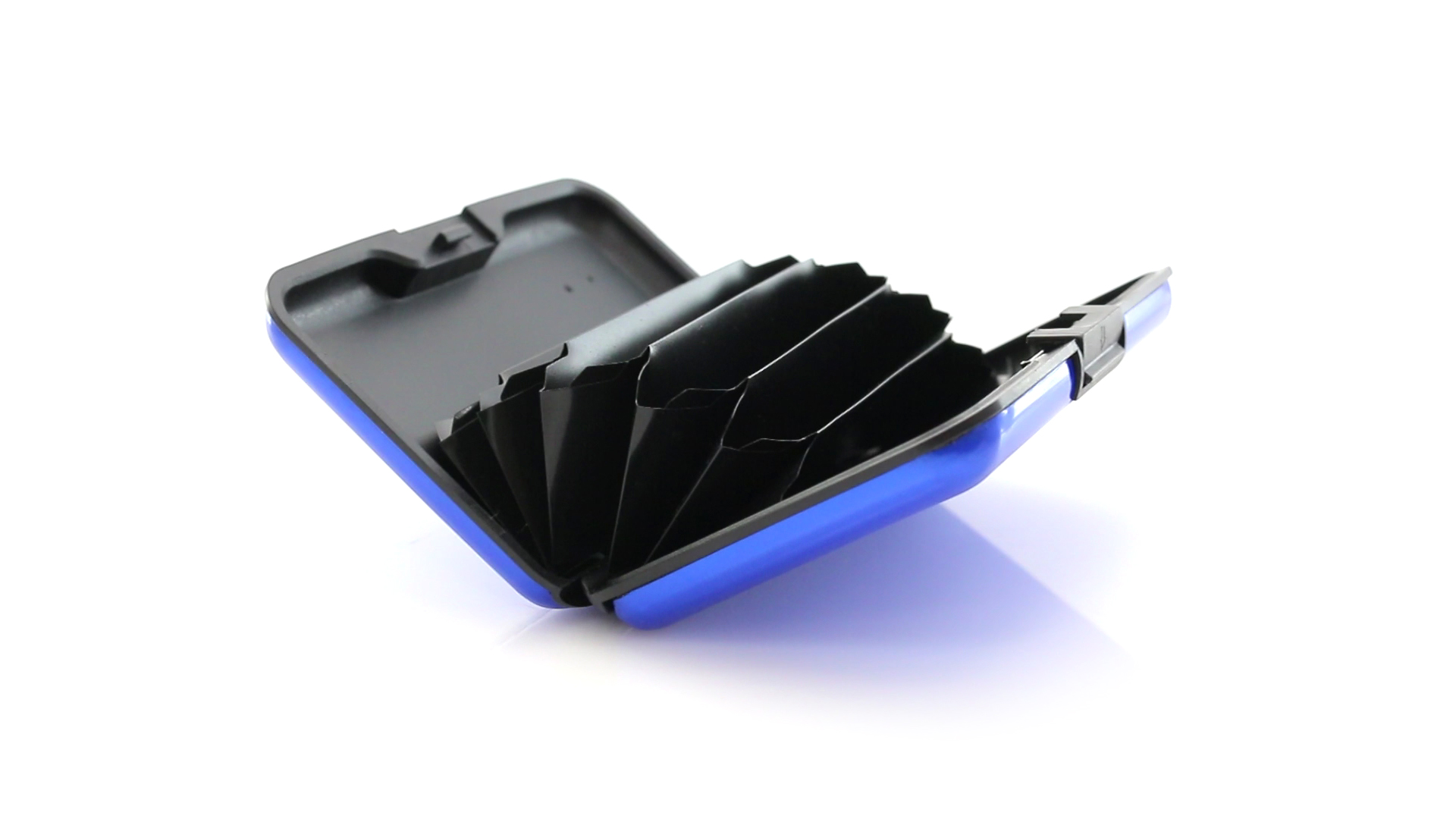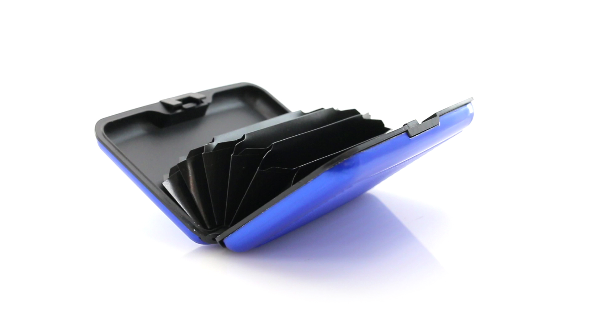 Elegantes Kartenetui in Aluminium-Ausführung in eleganten Farben. Mit 6 Innenfächern im Akkordeon-Stil, Klickverschluss und glatter Druckfläche an der Aussenseite - geeignet für die Personalisierung mittels Laserdruck. Präsentiert in einer individuellen Box in Silber.