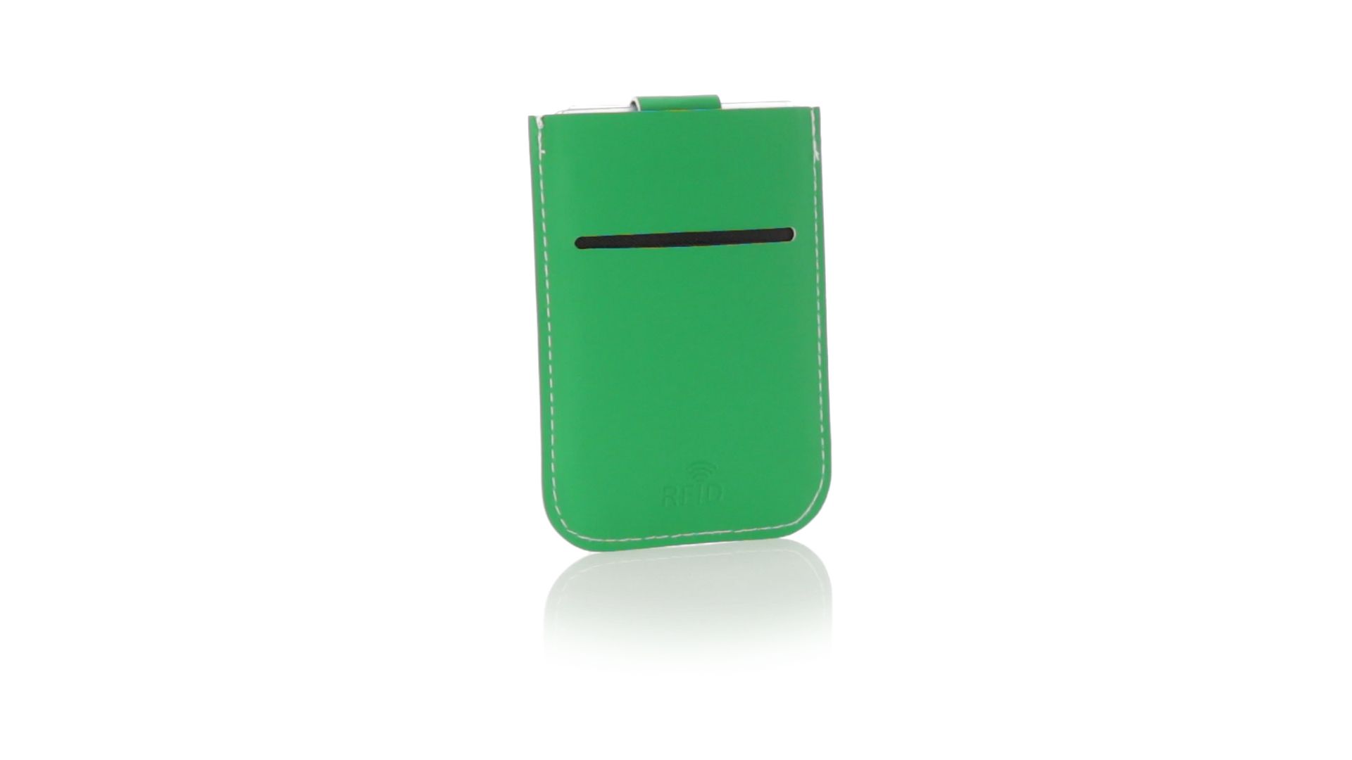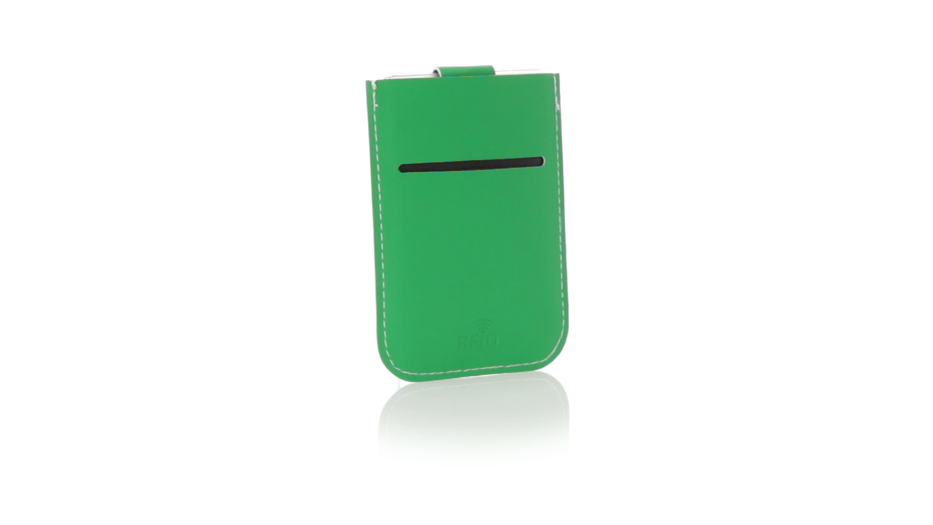 Kartenhalter mit RFID-Sicherheitstechnologie (Radio Frequency Identification), durch die die Kartendaten stets geschützt sind. Robustes Gehäuse aus weichem Kunstleder in coolen Farben. Mit Magnetverschluss und speziellem Mechanismus für leichten Zugang zum Innenfach.