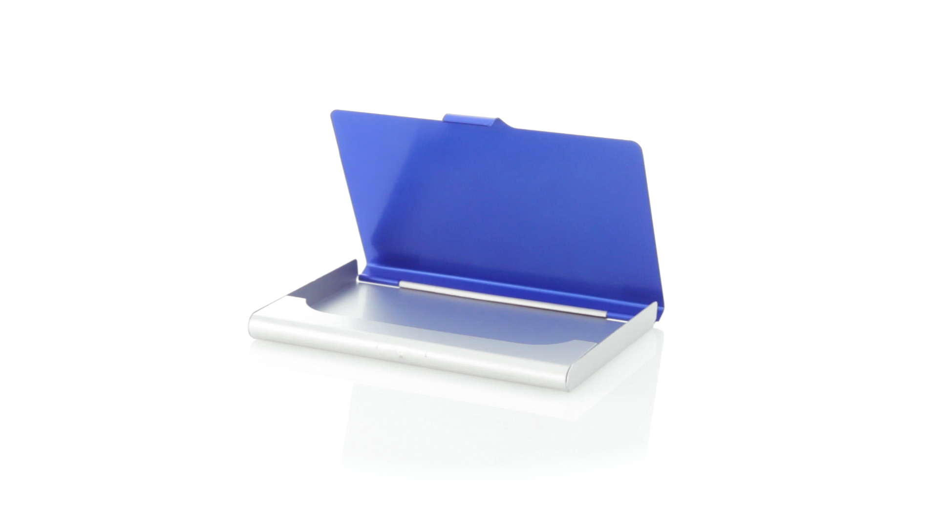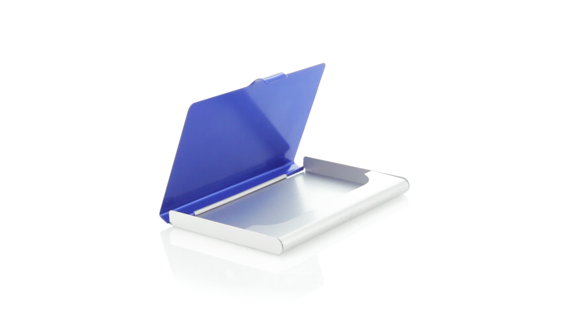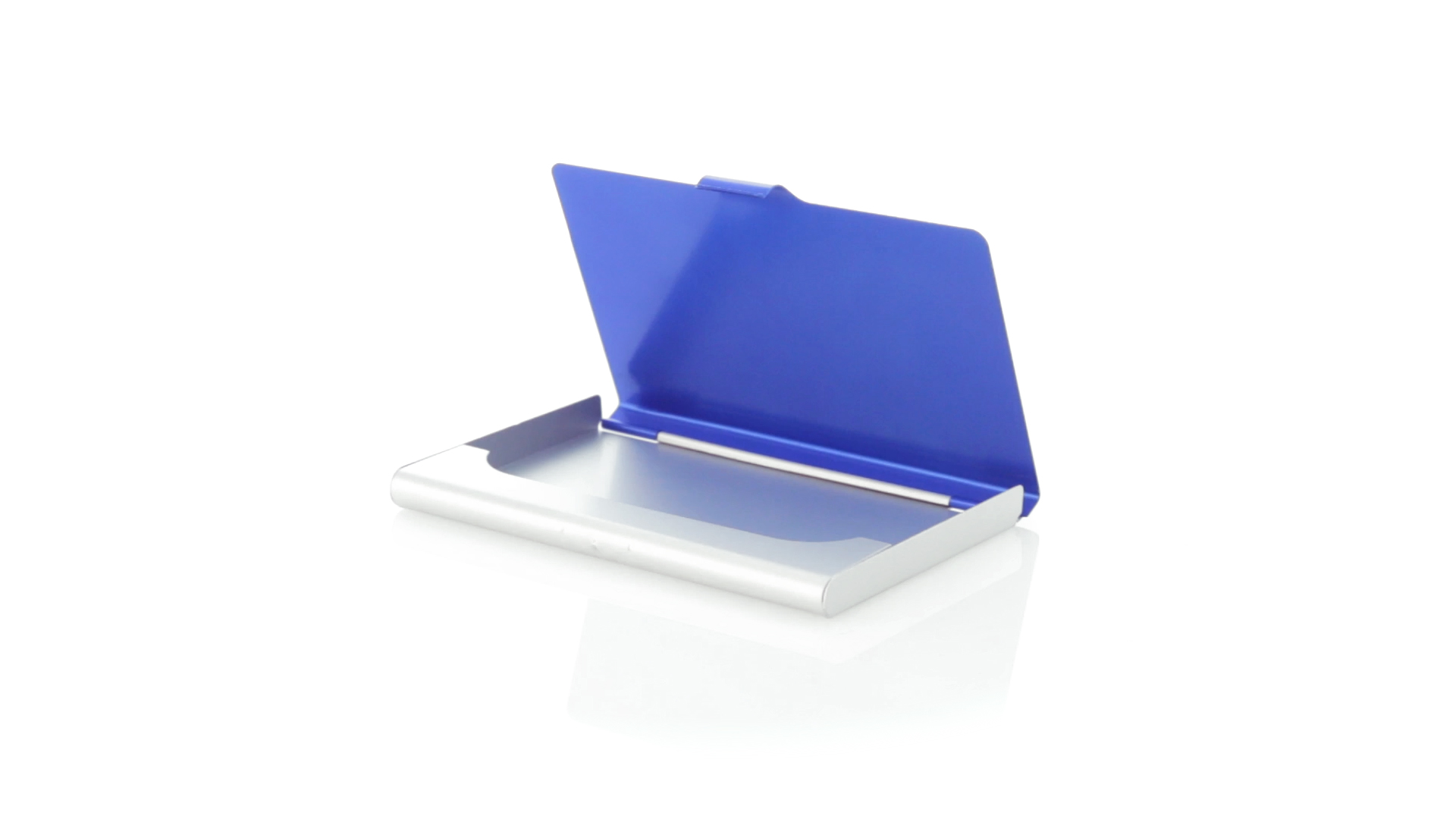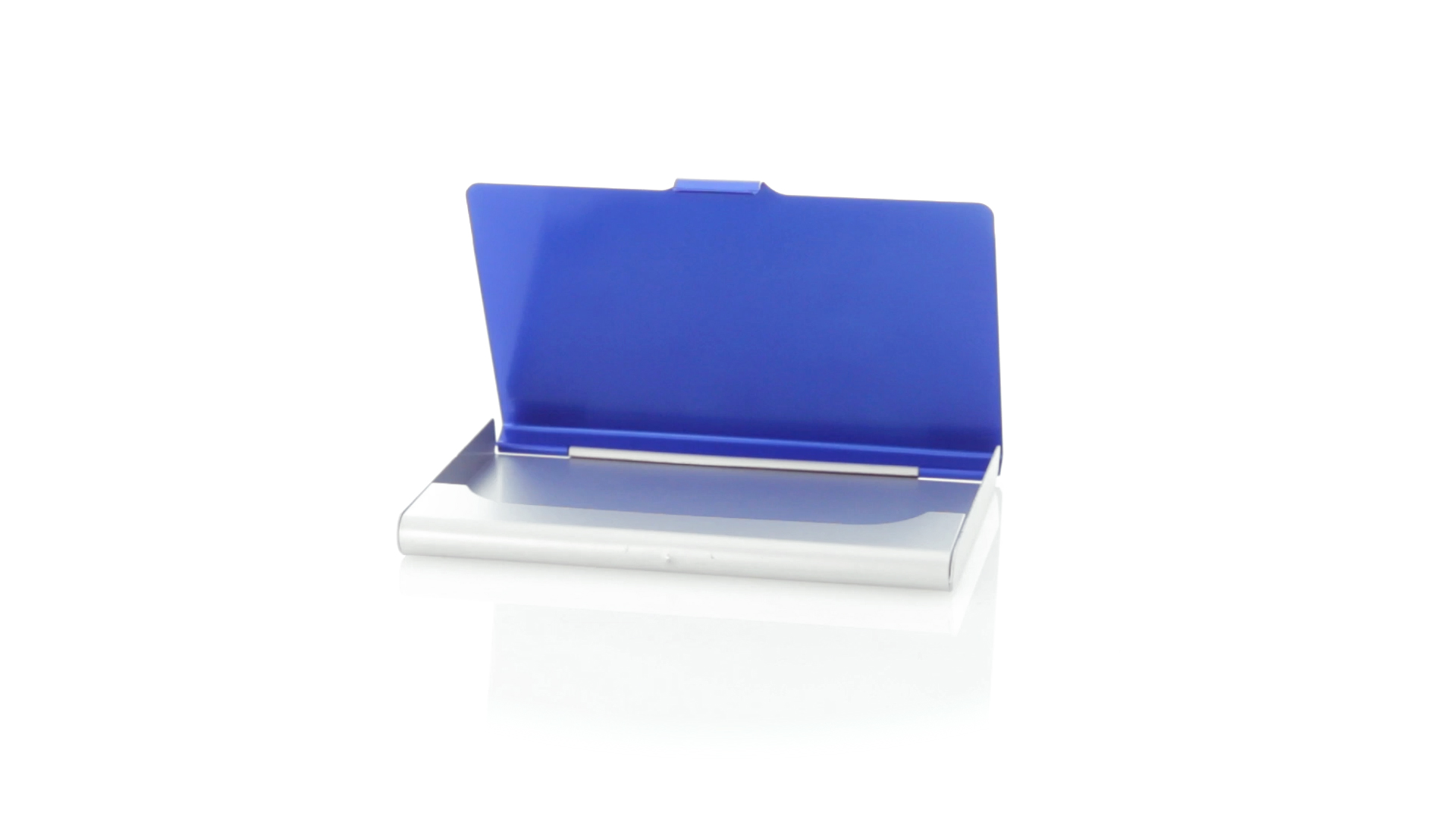 Eleganter Kartenhalter mit zweifarbigem Aluminiumgehäuse in eleganten Farben mit Druckverschluss. Präsentiert in einer eleganten, individuellen Box in Silber.