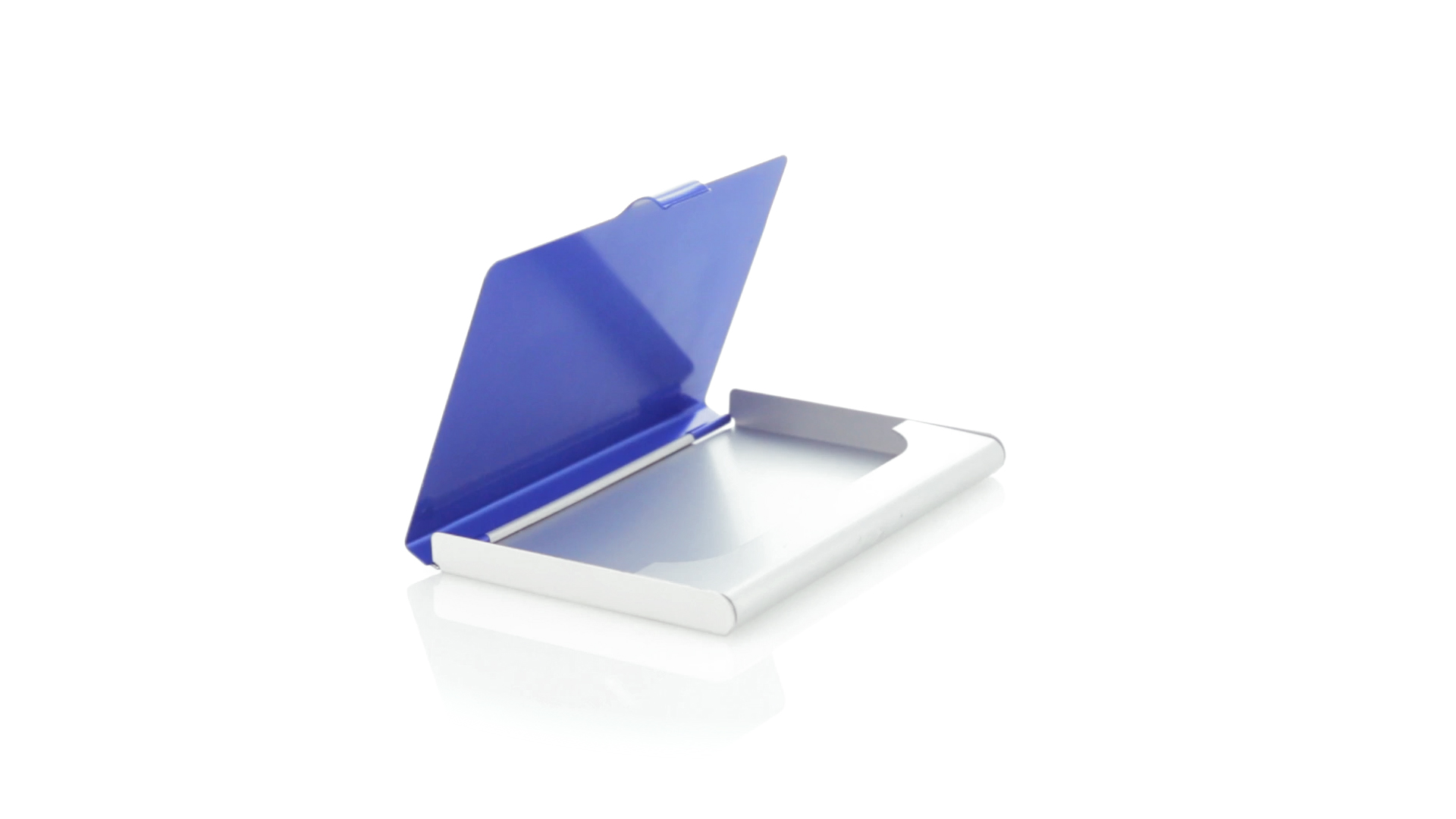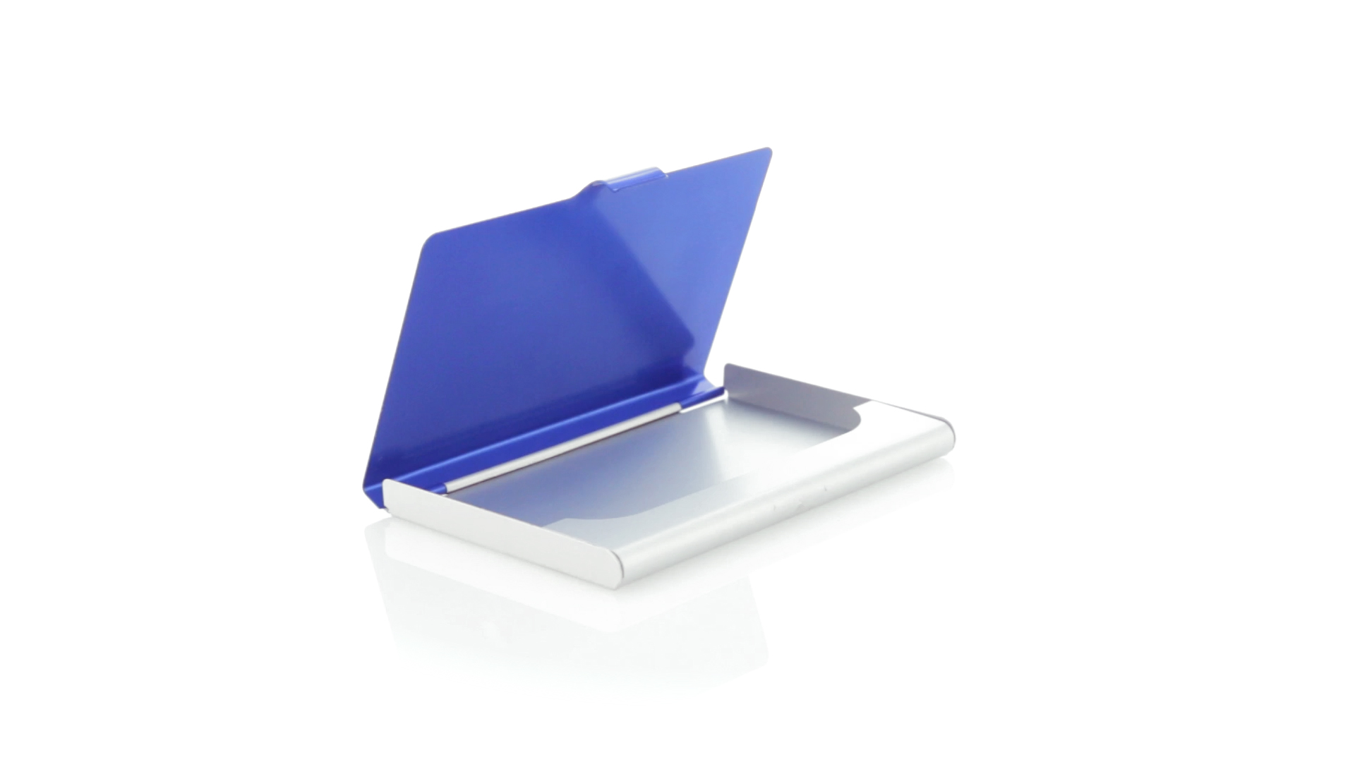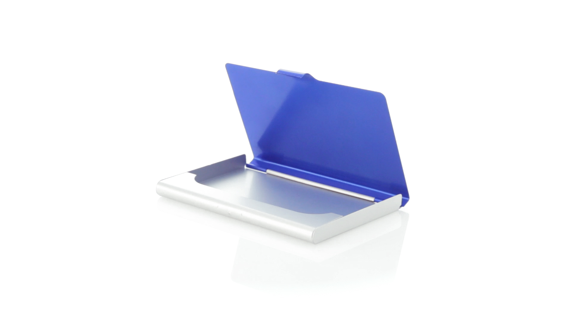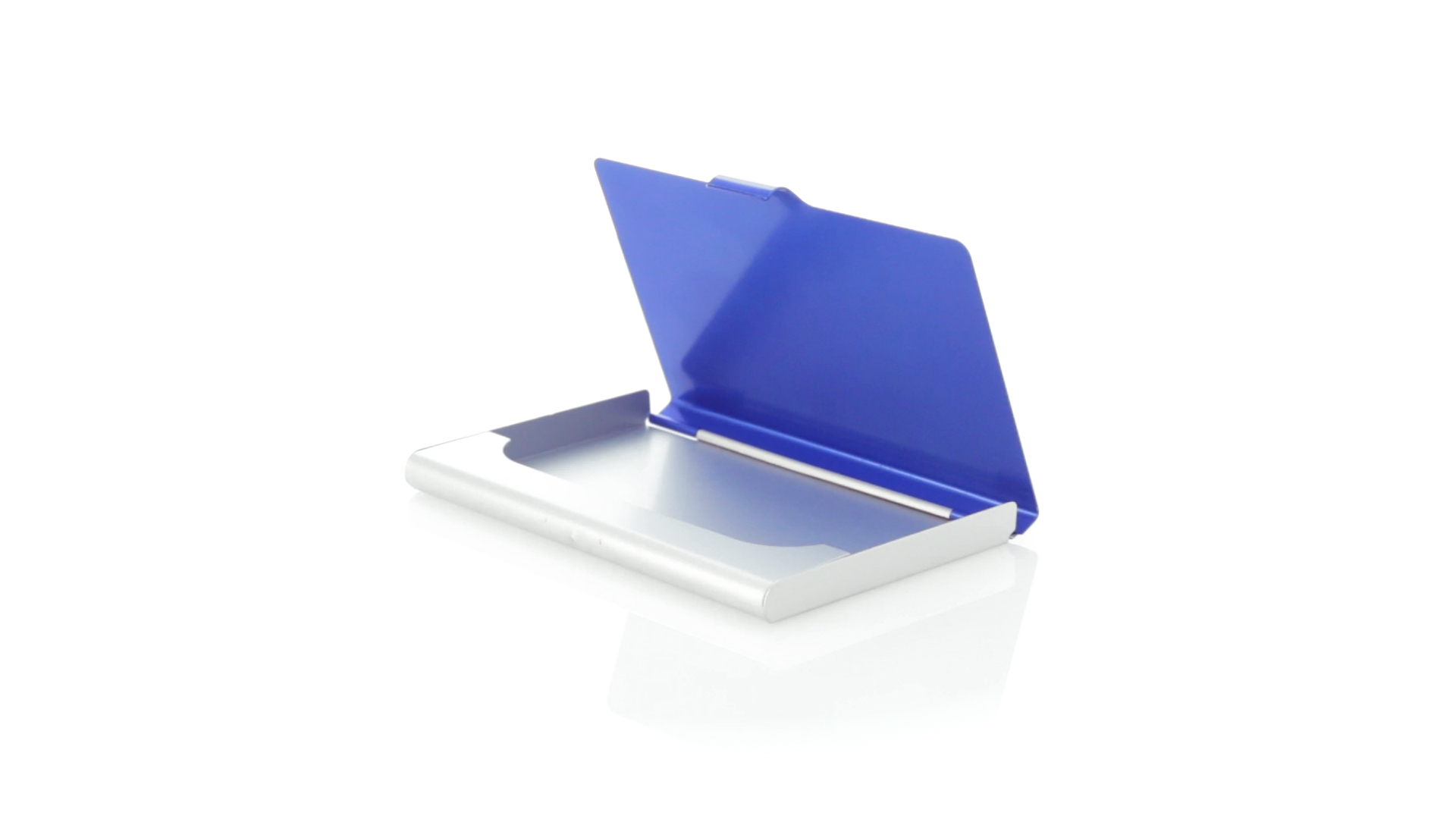 Eleganter Kartenhalter mit zweifarbigem Aluminiumgehäuse in eleganten Farben mit Druckverschluss. Präsentiert in einer eleganten, individuellen Box in Silber.