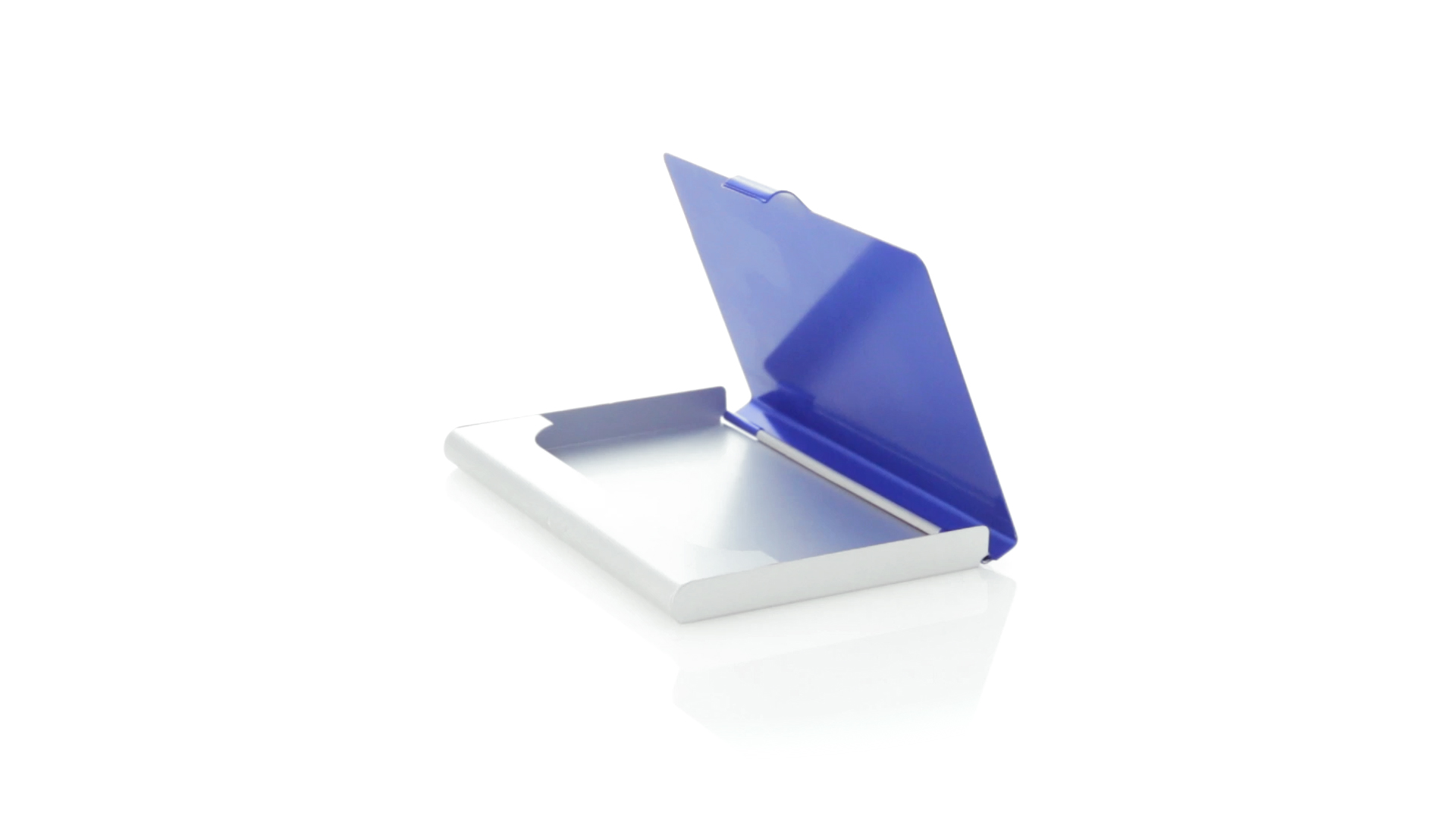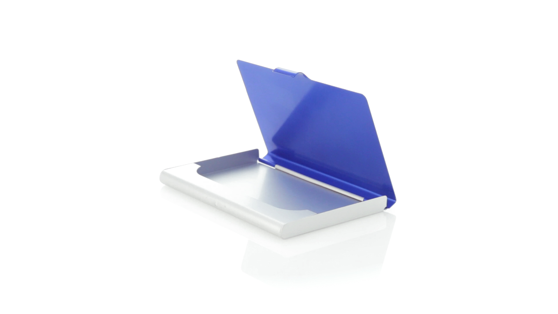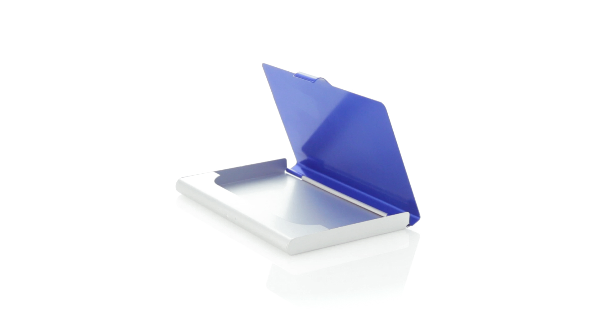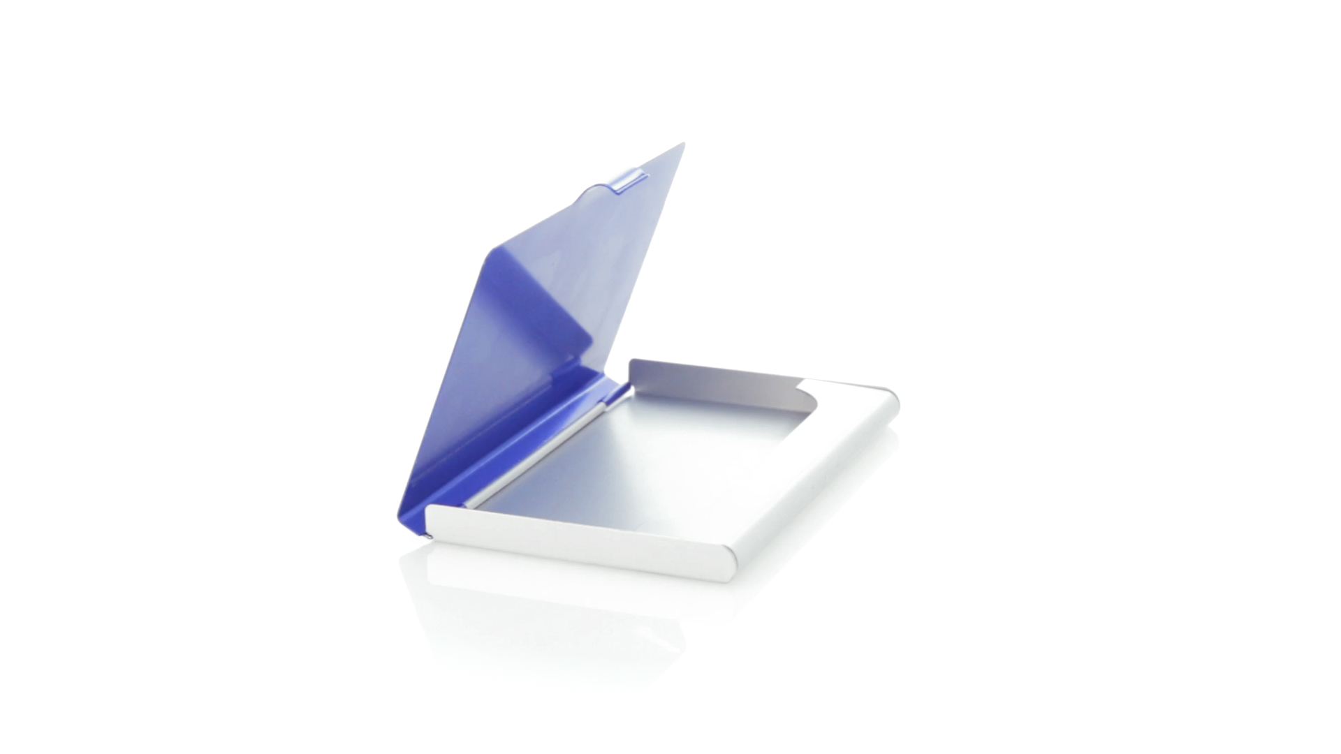 Eleganter Kartenhalter mit zweifarbigem Aluminiumgehäuse in eleganten Farben mit Druckverschluss. Präsentiert in einer eleganten, individuellen Box in Silber.