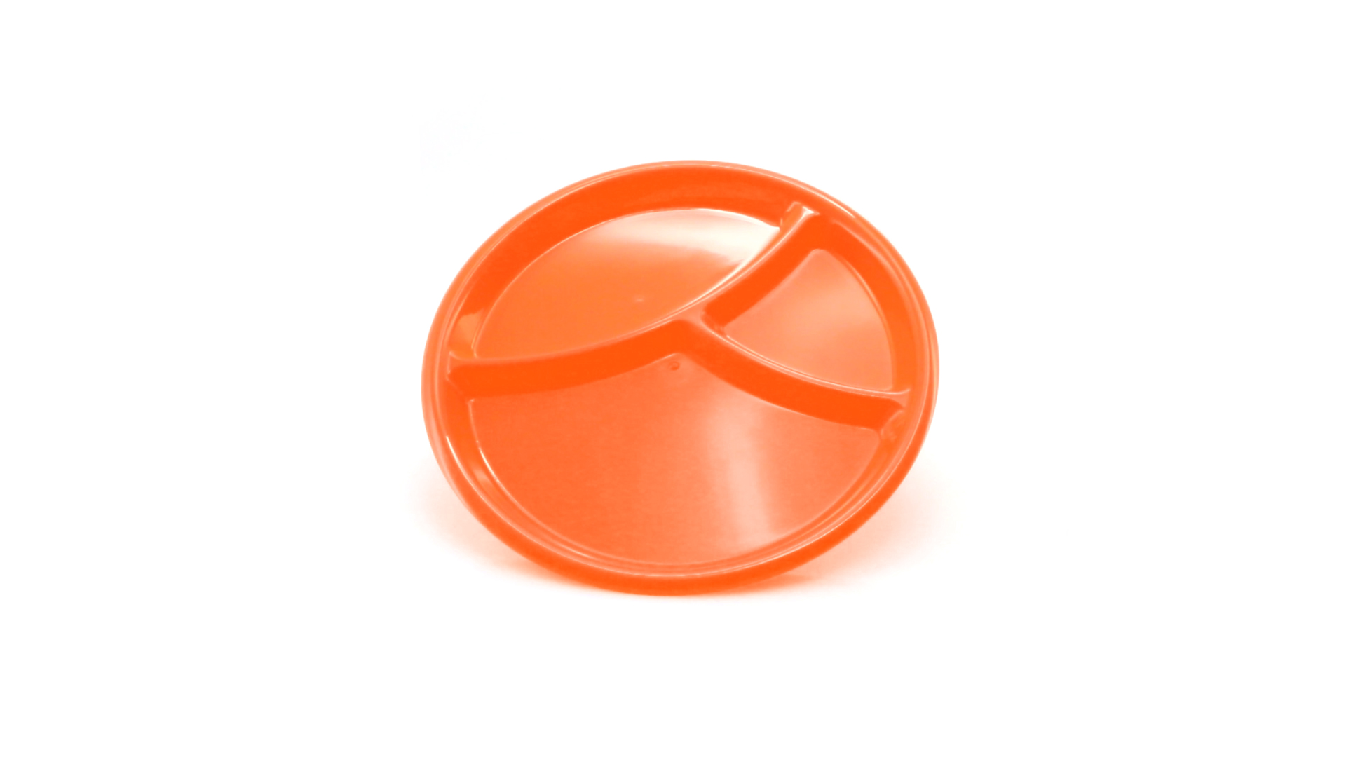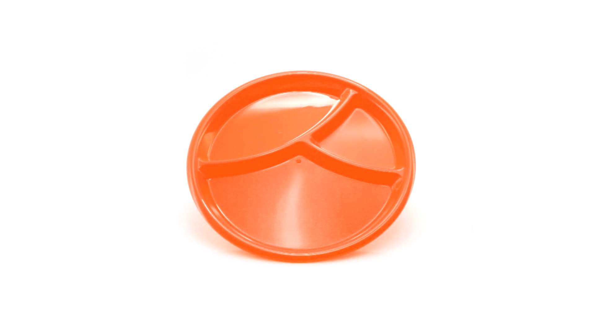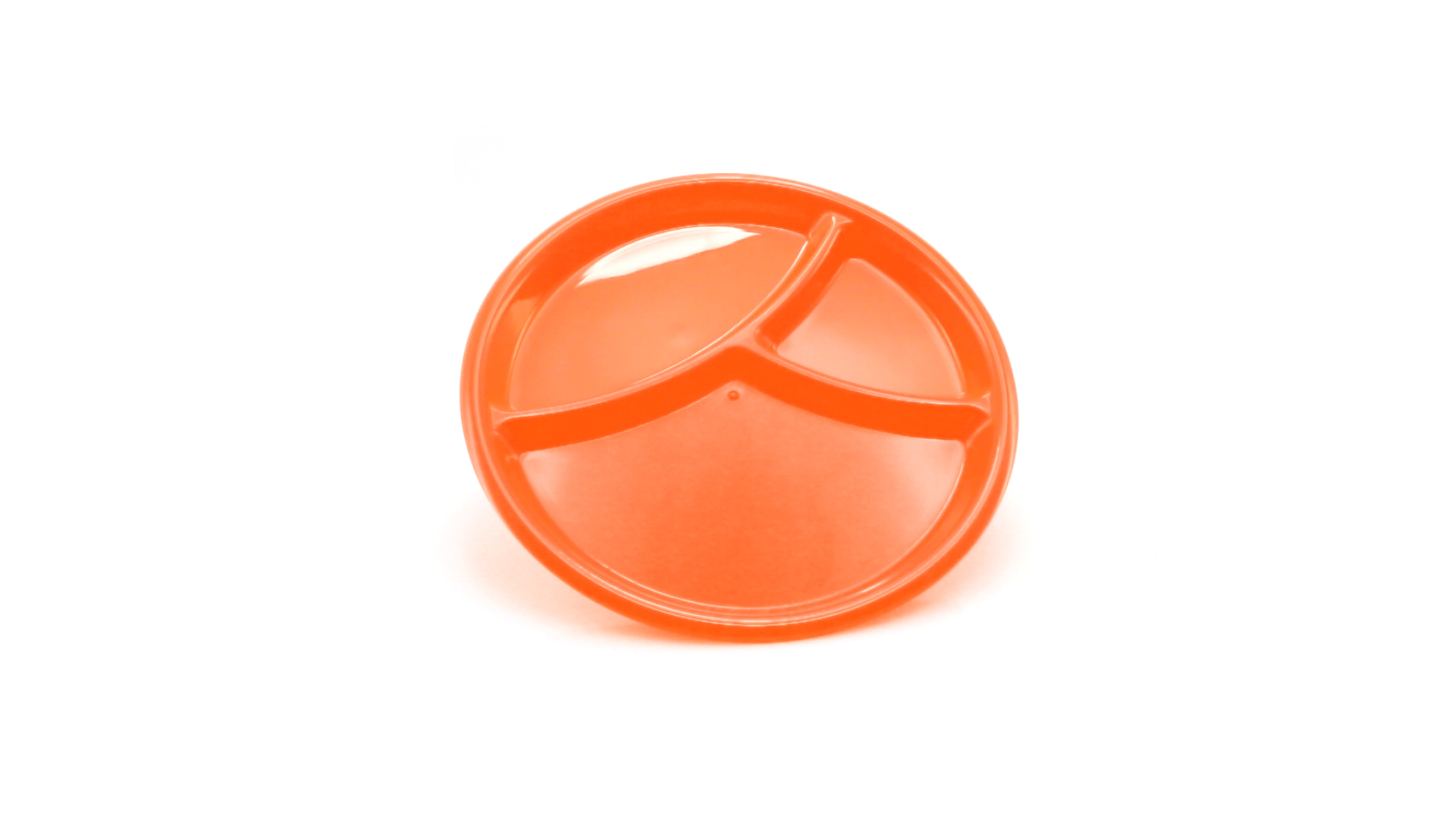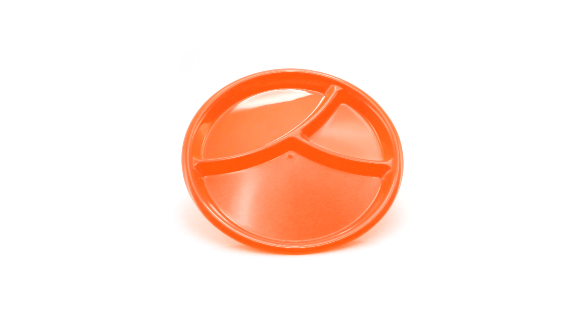 Aperitif-Teller aus widerstandsfähigem Polypropylen (PP) in verschiedenen Farben. Mit Unterteilung in drei Bereiche.
