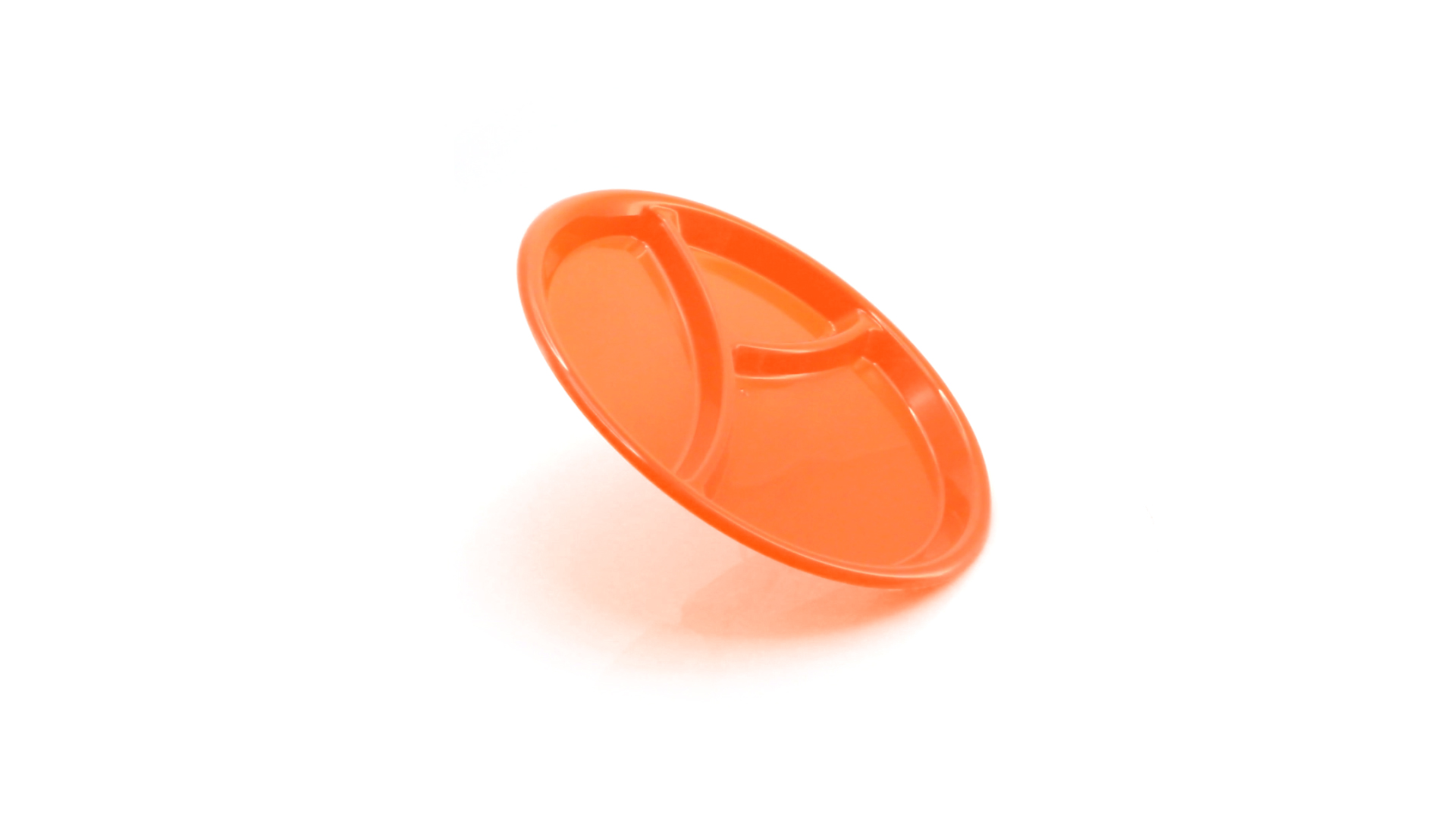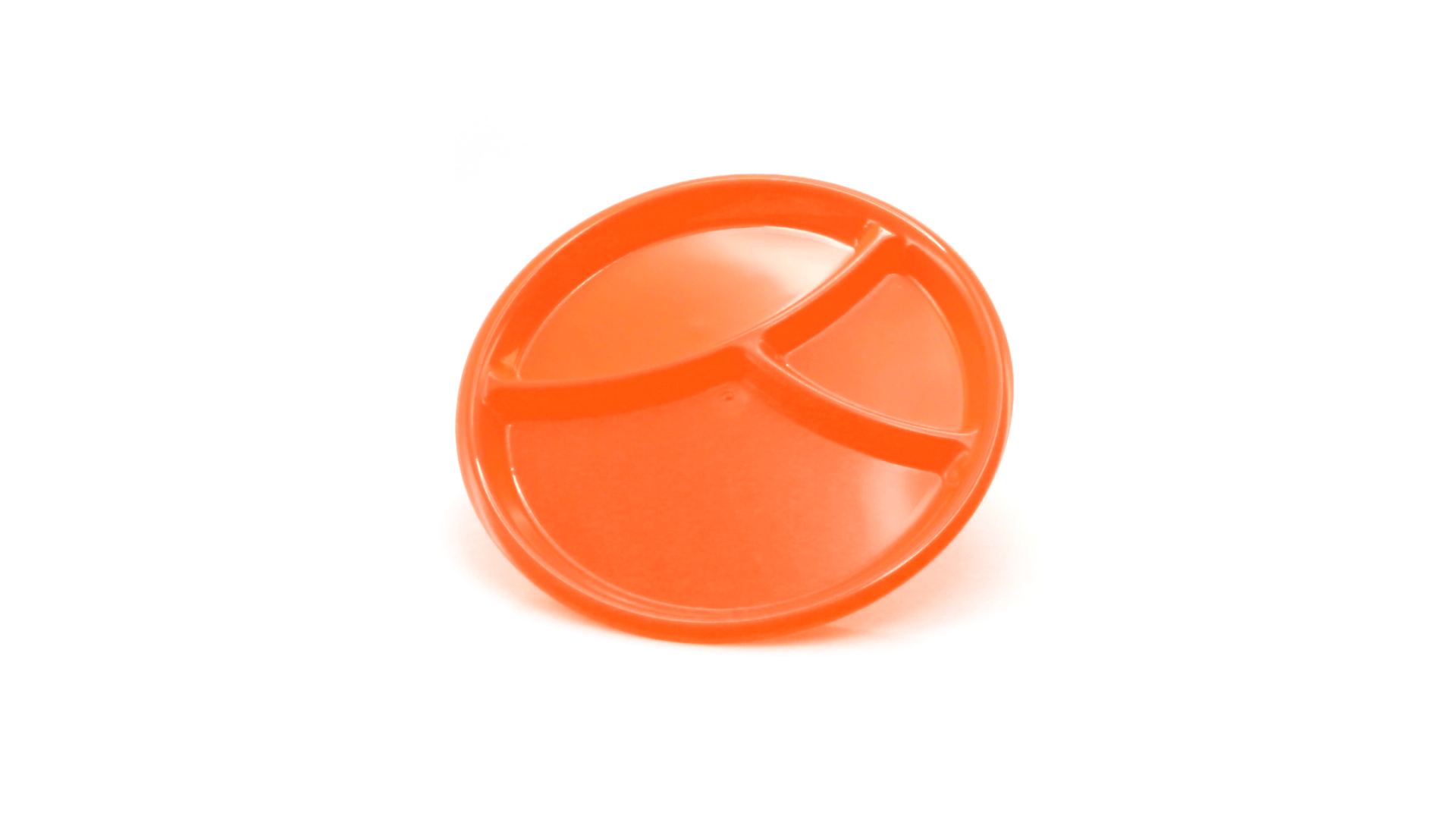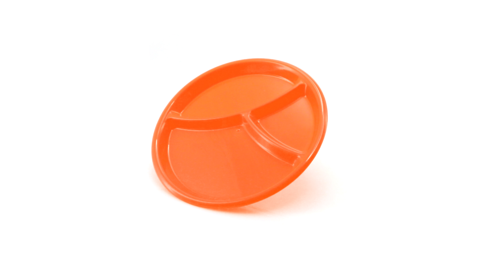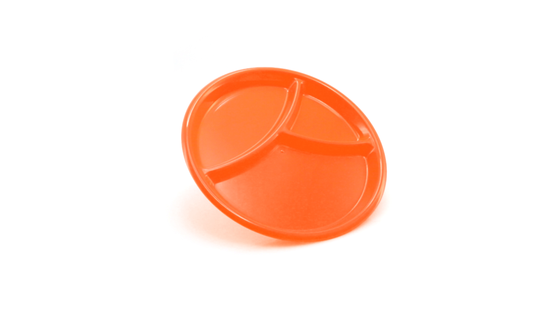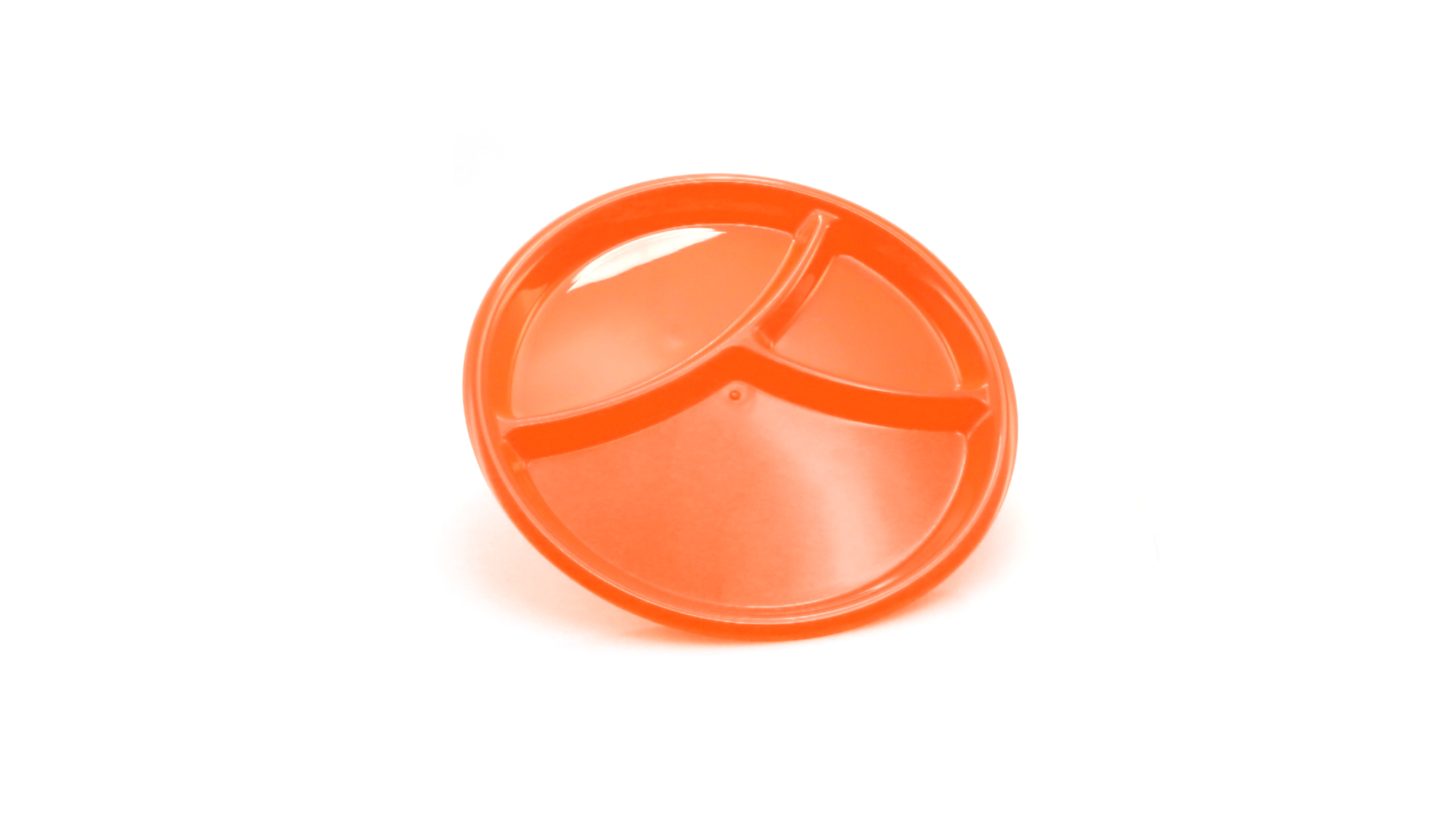 Aperitif-Teller aus widerstandsfähigem Polypropylen (PP) in verschiedenen Farben. Mit Unterteilung in drei Bereiche.