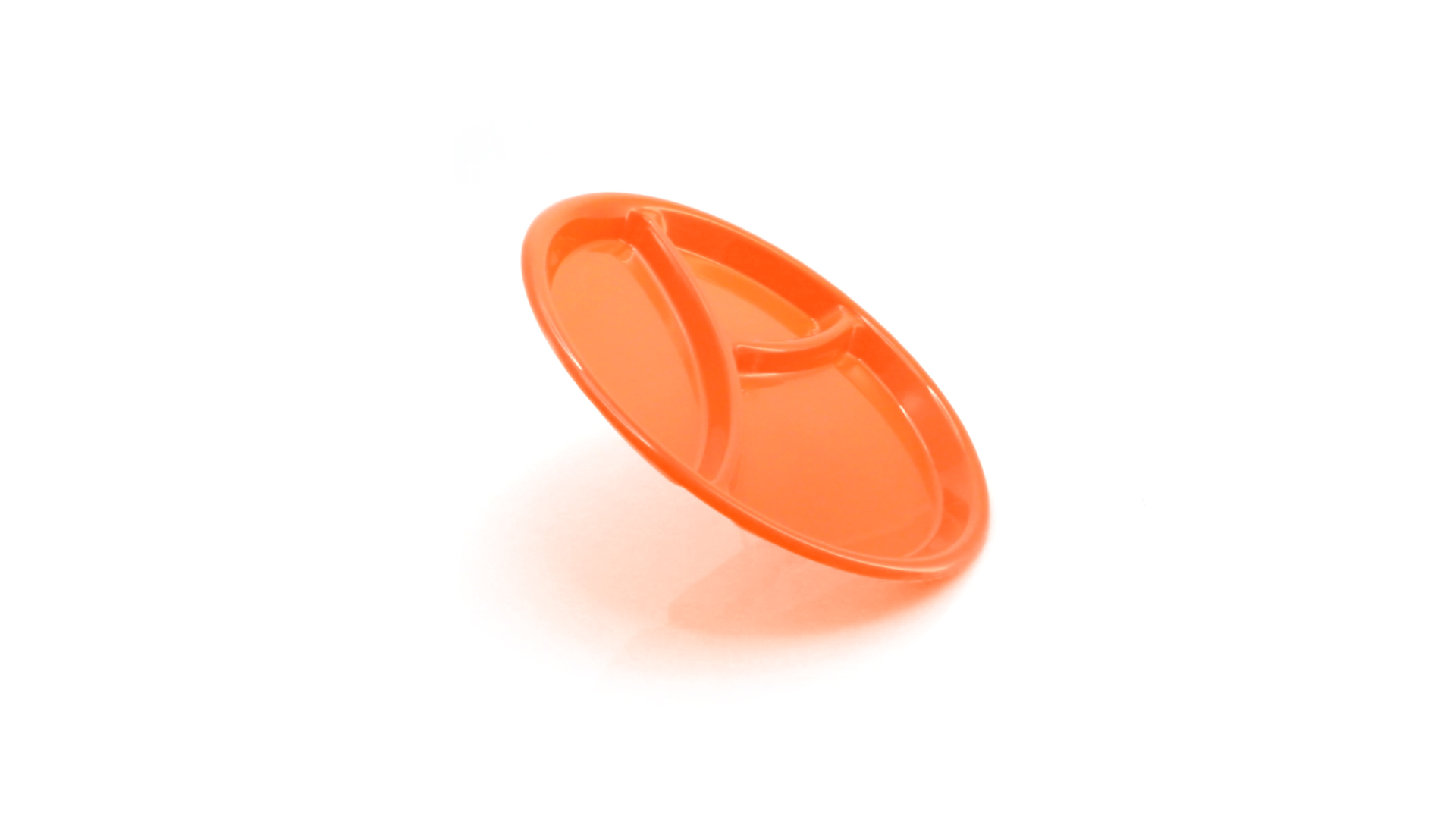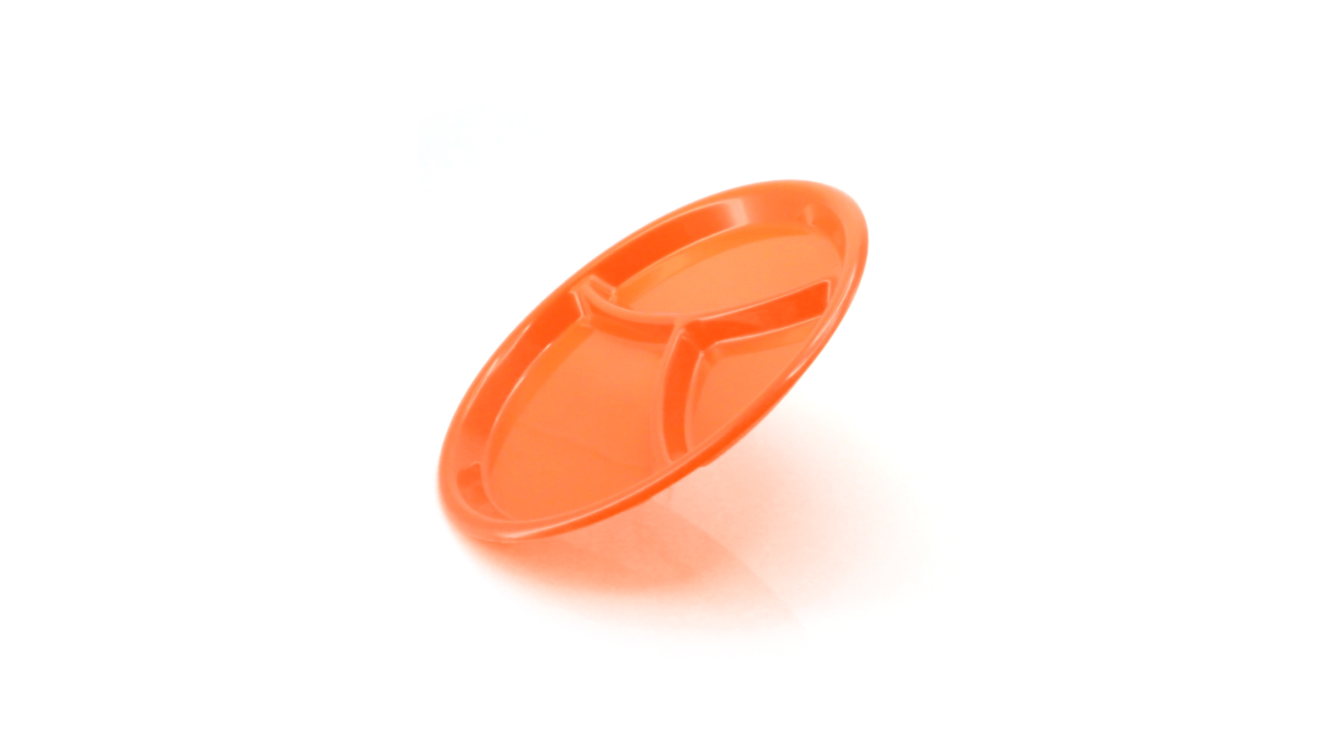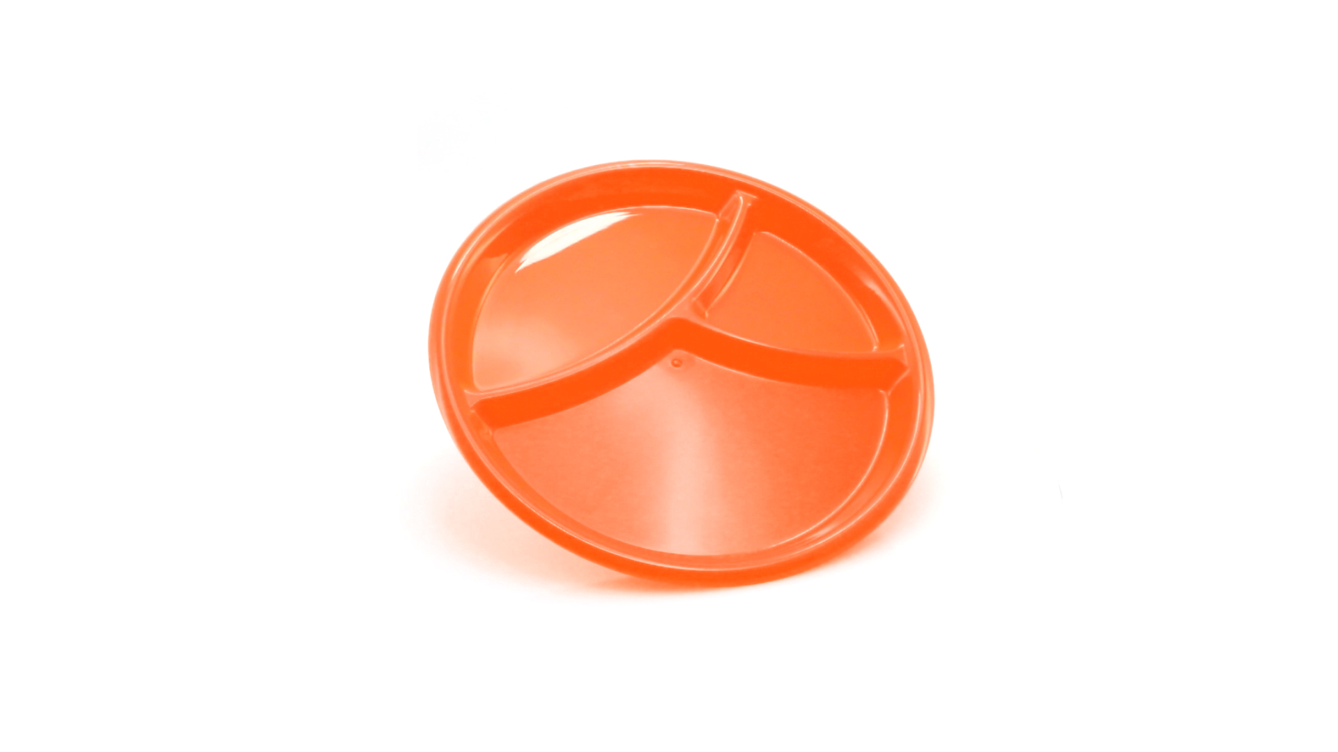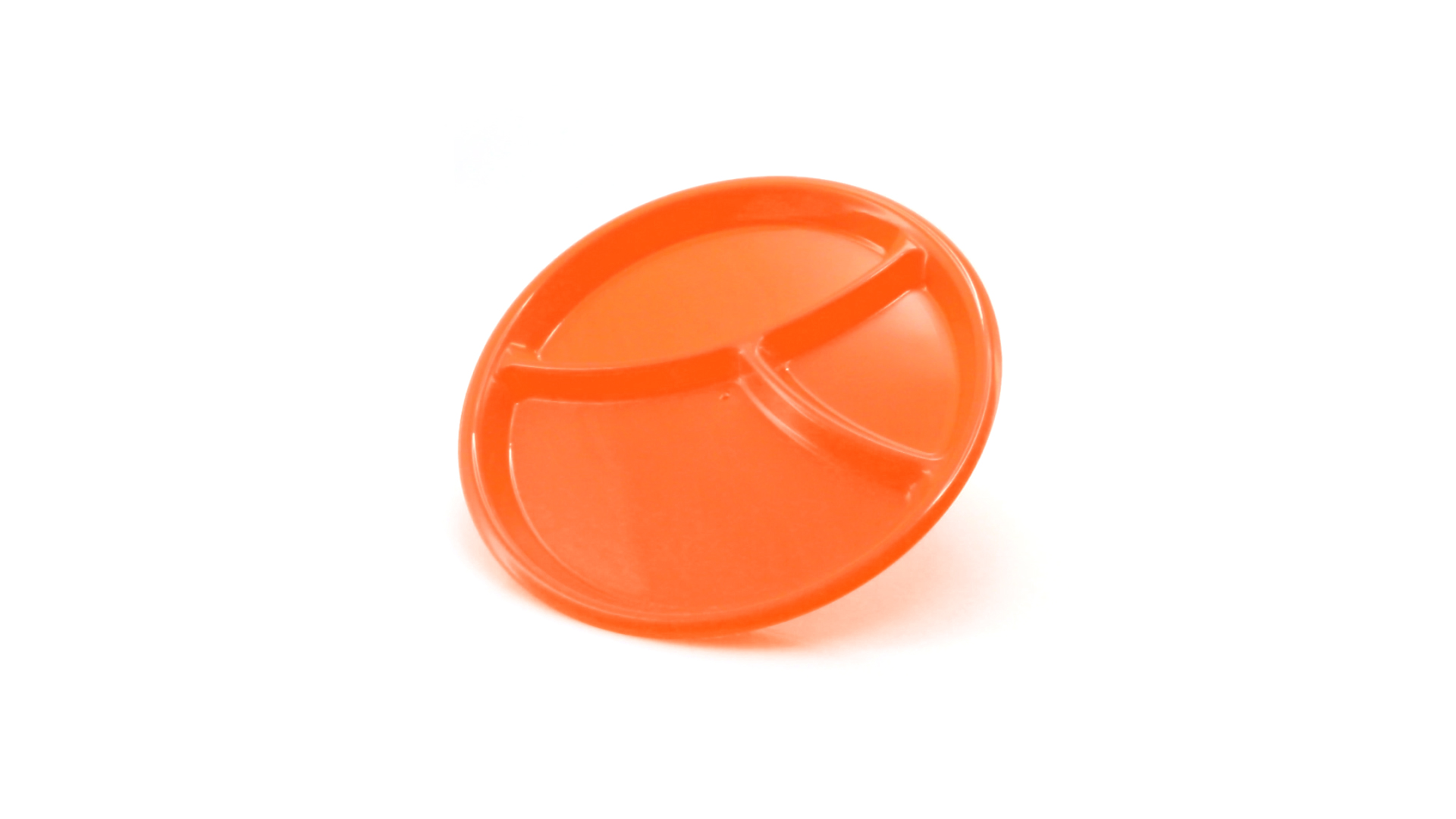 Aperitif-Teller aus widerstandsfähigem Polypropylen (PP) in verschiedenen Farben. Mit Unterteilung in drei Bereiche.