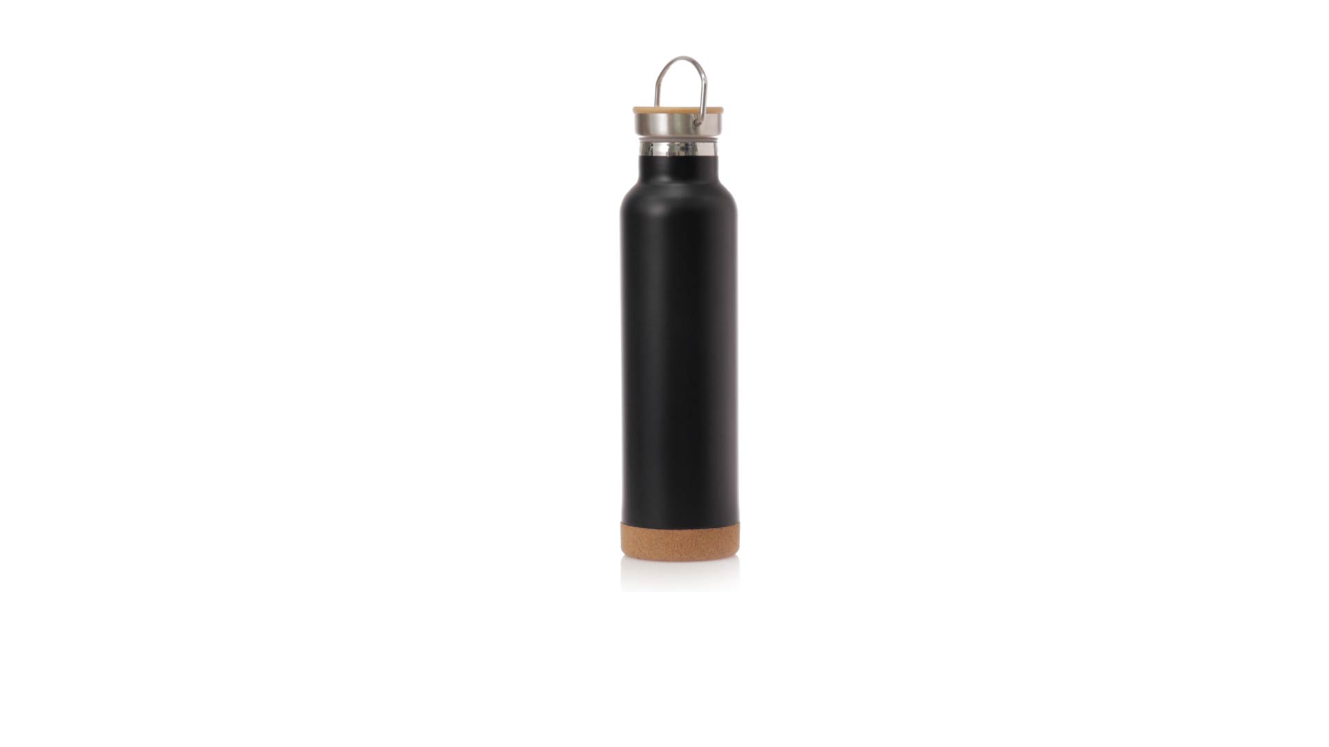 Thermoskanne mit 650 ml Fassungsvermögen, aus Edelstahl mit Doppelwand. Inklusive originalem Schraubverschluss aus Edelstahl mit Bambusdetail, integriertem Griff und originalem Korkboden. Erhältlich in einer breiten Farbpalette und präsentiert in einer individuellen Kraft-Designbox.