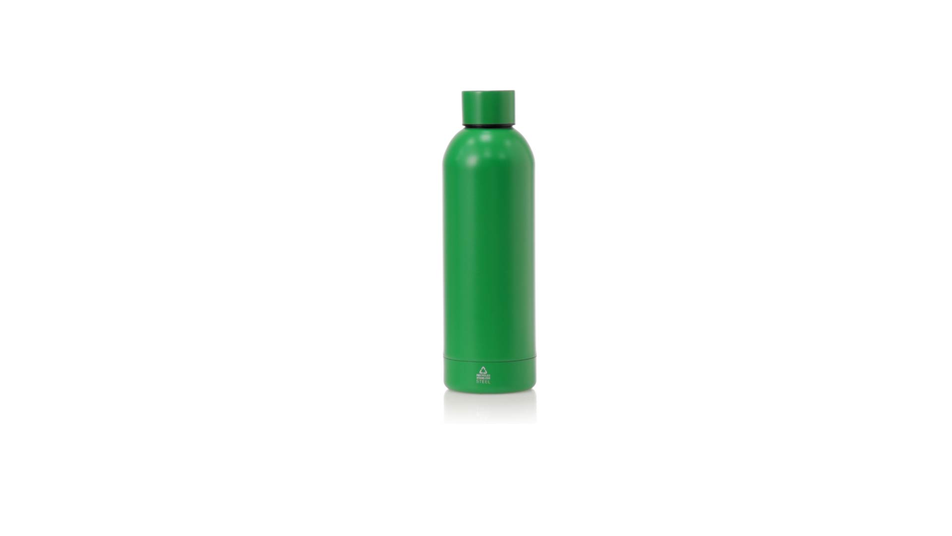 Thermoflasche aus recyceltem Edelstahl mit Doppelwand. 550 ml Fassungsvermögen und in einer breiten Palette von Metallic-Farben mit mattem Finish erhältlich. Mit recyceltem Edelstahl-Logo und präsentiert in einer attraktiven Kraft-Design-Box.Stahl ist eines der am meisten nachgefragten Materialien und ist fast überall zu finden, von alltäglichen Produkten bis hin zu grossen Konstruktionen. Mit unzähligen Eigenschaften, darunter Langlebigkeit und ein hohes Mass an Wiederverwendbarkeit, ist es eine geschätzte Alternative für nachhaltige Lösungen. Richtig behandelt, können neue Ressourcen von unendlicher Nutzung erhalten werden.