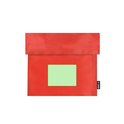 Thermosnackbeutel aus RPET 210T Polyester. Isoliertes Inneres aus PEVA, mit Klettverschluss und Aussenschild mit RPET-Merkmal.RPET-Material wird aus recyceltem Kunststoff hergestellt, um die Wiederverwendung von Kunststoffabfällen zu fördern und zur Nachhaltigkeit des Planeten beizutragen.
